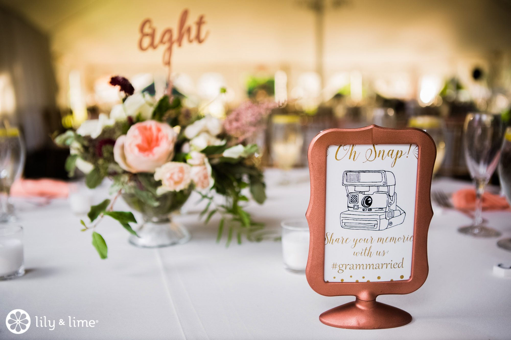 Once you’ve created the perfect hashtag, the next step is getting your guests to use it. One of the biggest reasons that guests won’t use a hashtag? Because they don’t know about it. It’s that simple. So, make sure to spread the word about your hashtag. You can put it on your wedding website, include the information as part of the invitation, and last but not least, you can include it in your ceremony and reception decor.