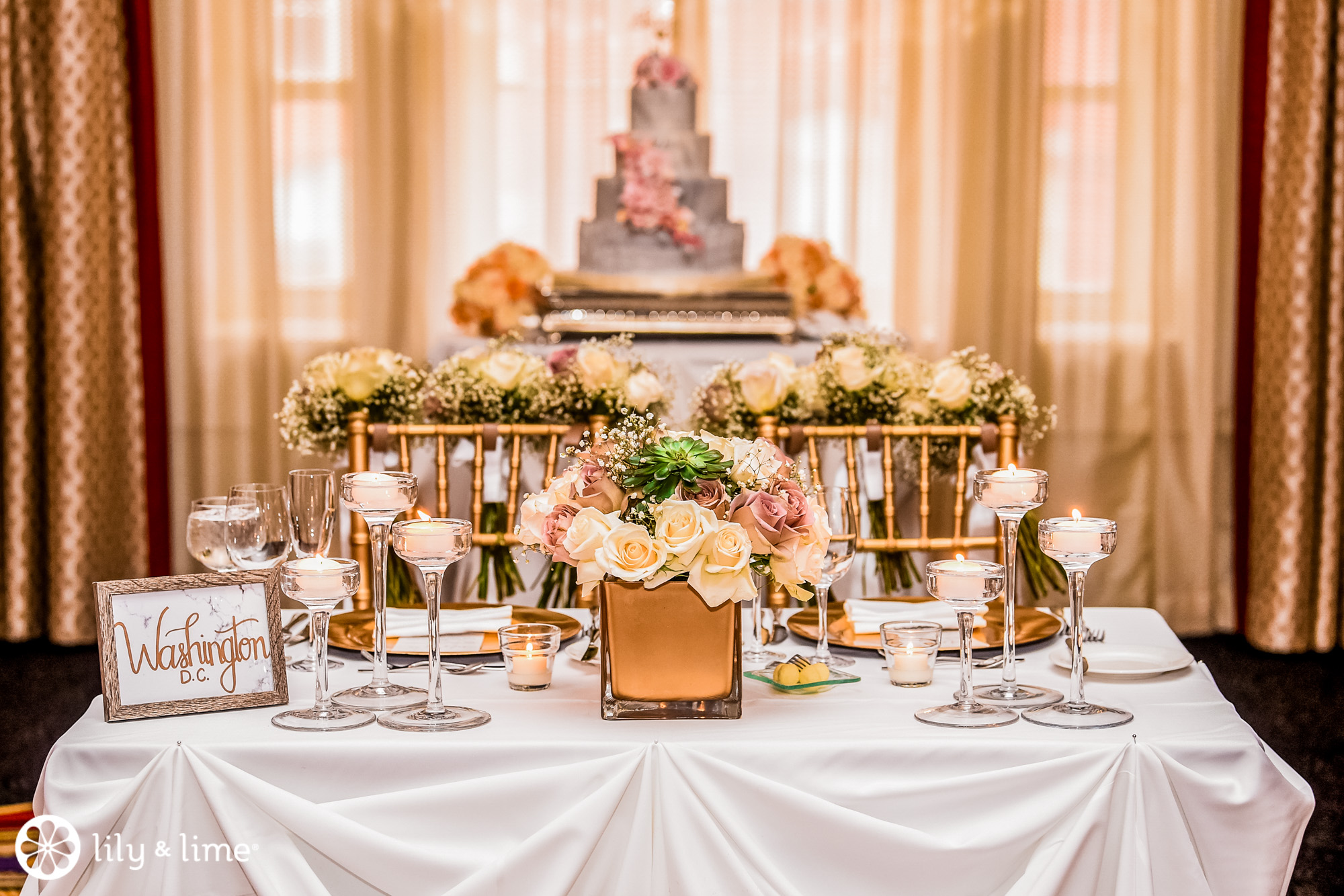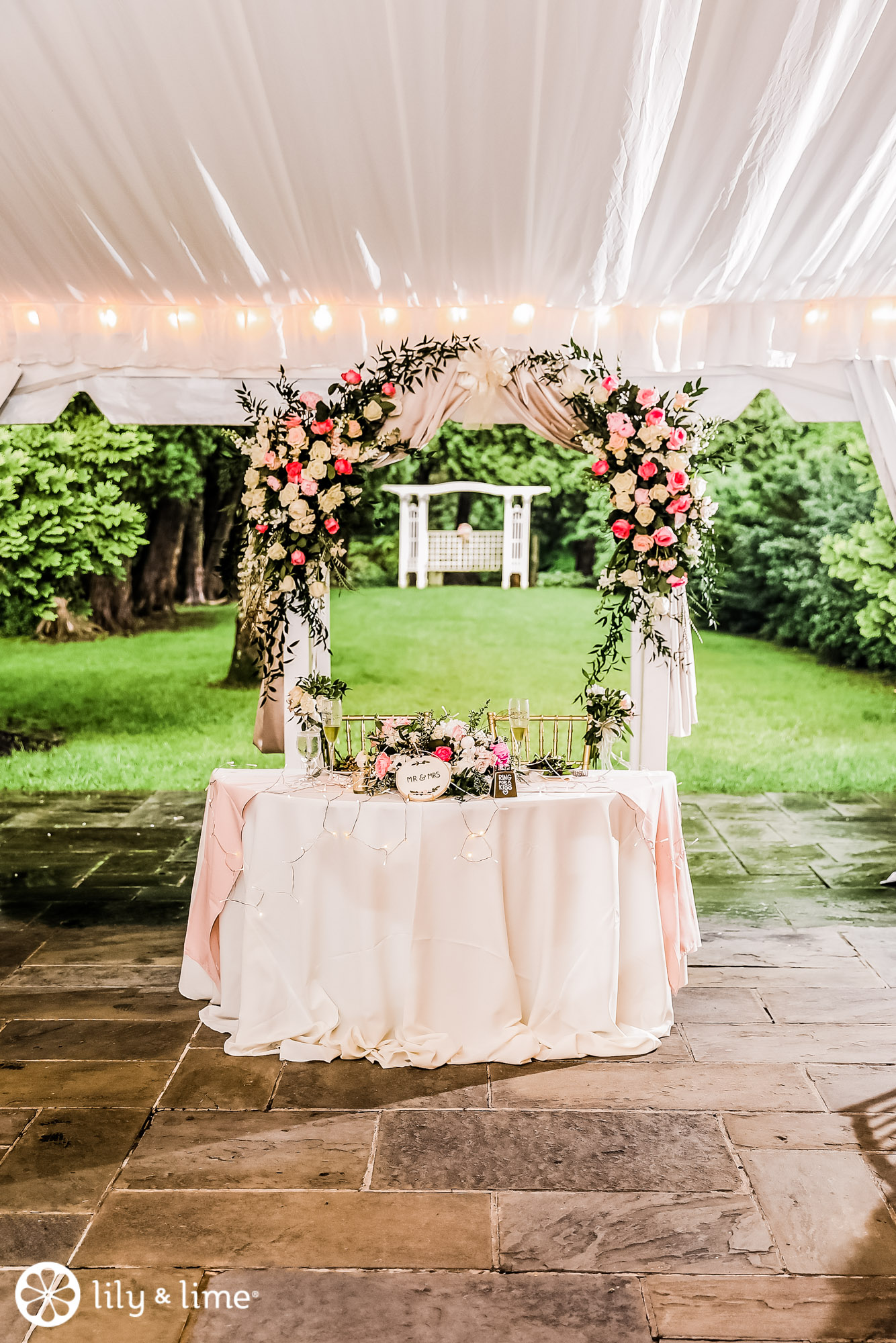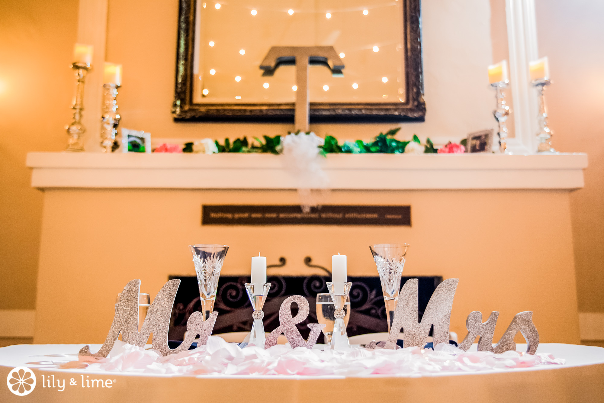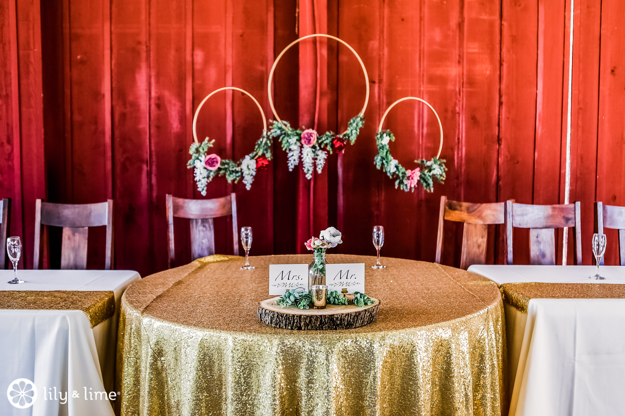 A sweetheart table is a simple way to amp the decor of the reception space without adding too much more to the budget (a rare and appreciated occurrence in wedding planning).