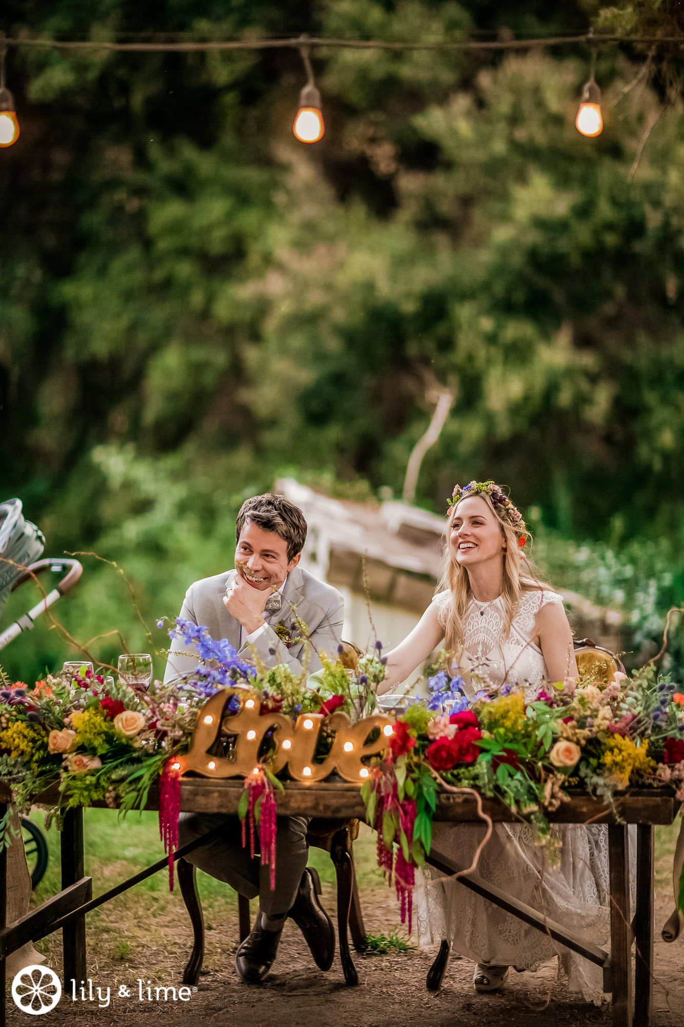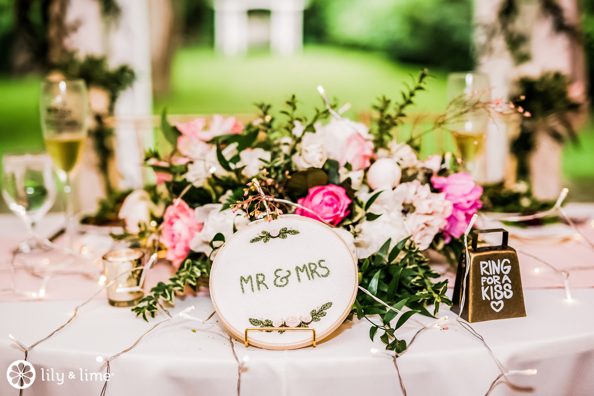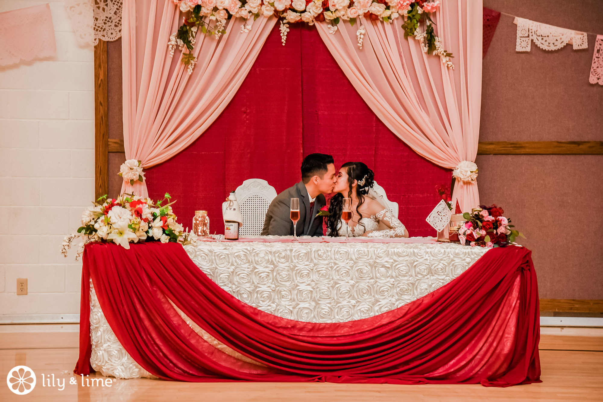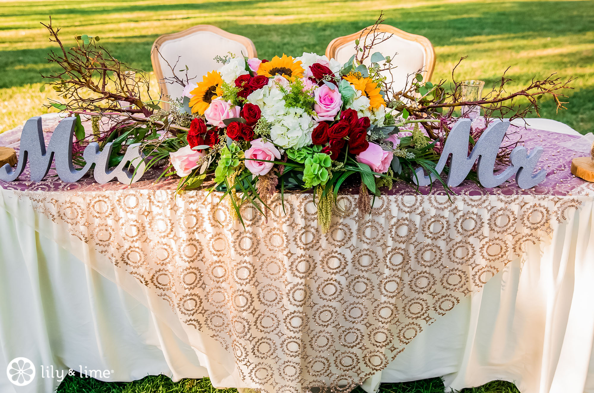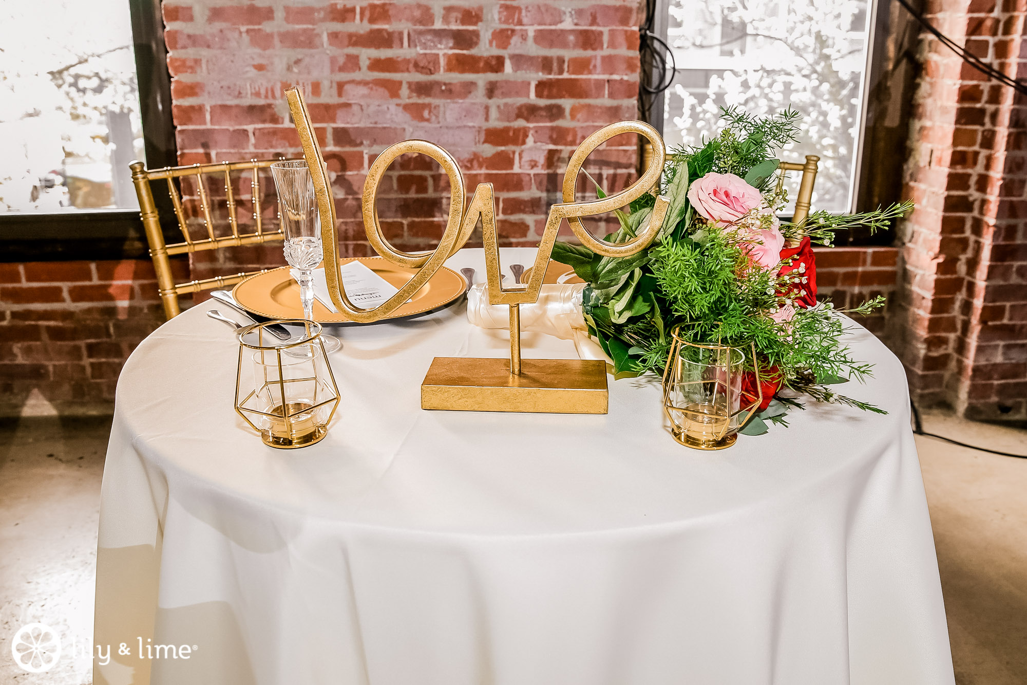 A sweetheart table is a simple way to amp the decor of the reception space without adding too much more to the budget (a rare and appreciated occurrence in wedding planning).