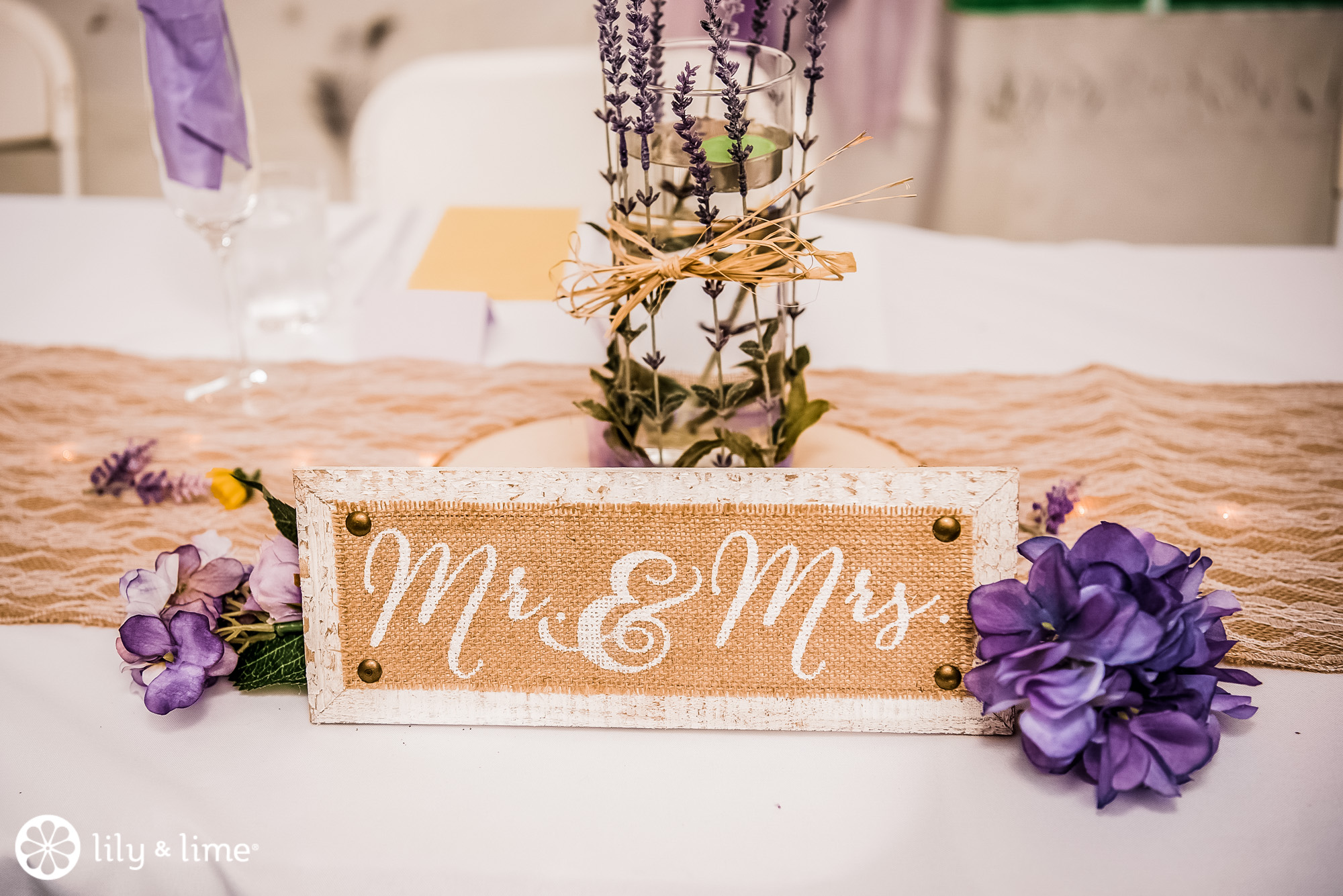 Remember that your sweetheart table will appear in many of your reception photos, so take that into consideration as you set up the decor. You can never have too many flowers or too much greenery! You can keep it sweet and simple with discreet “Mr. & Mrs.” ”Mr. & Mr.”, or “Mrs. & Mrs.” signs. For a splashy display, go with drapes of fabrics in your wedding colors.