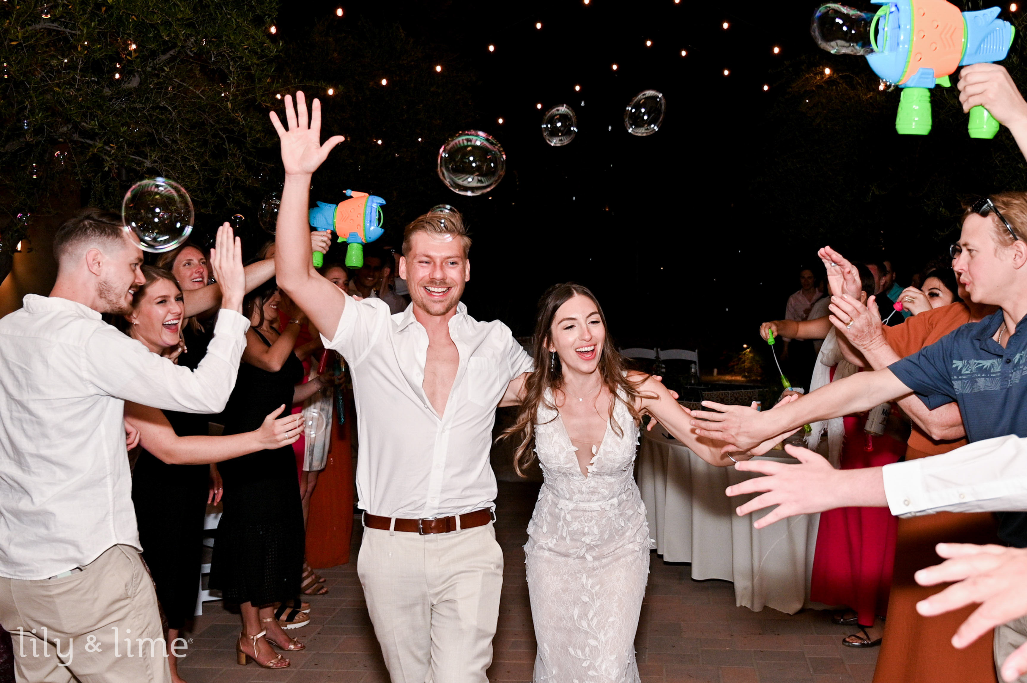 Transport your celebration back to the carefree days of childhood with a whimsical bubble wedding send-off idea. Crafted from non-toxic solutions, these bubbles symbolize the playful and pollution-free nature of your love. As your guests joyfully blow bubbles to accompany your exit, they create a captivating, magical atmosphere, leaving behind not just fleeting shimmering orbs but lasting memories of joy and love.