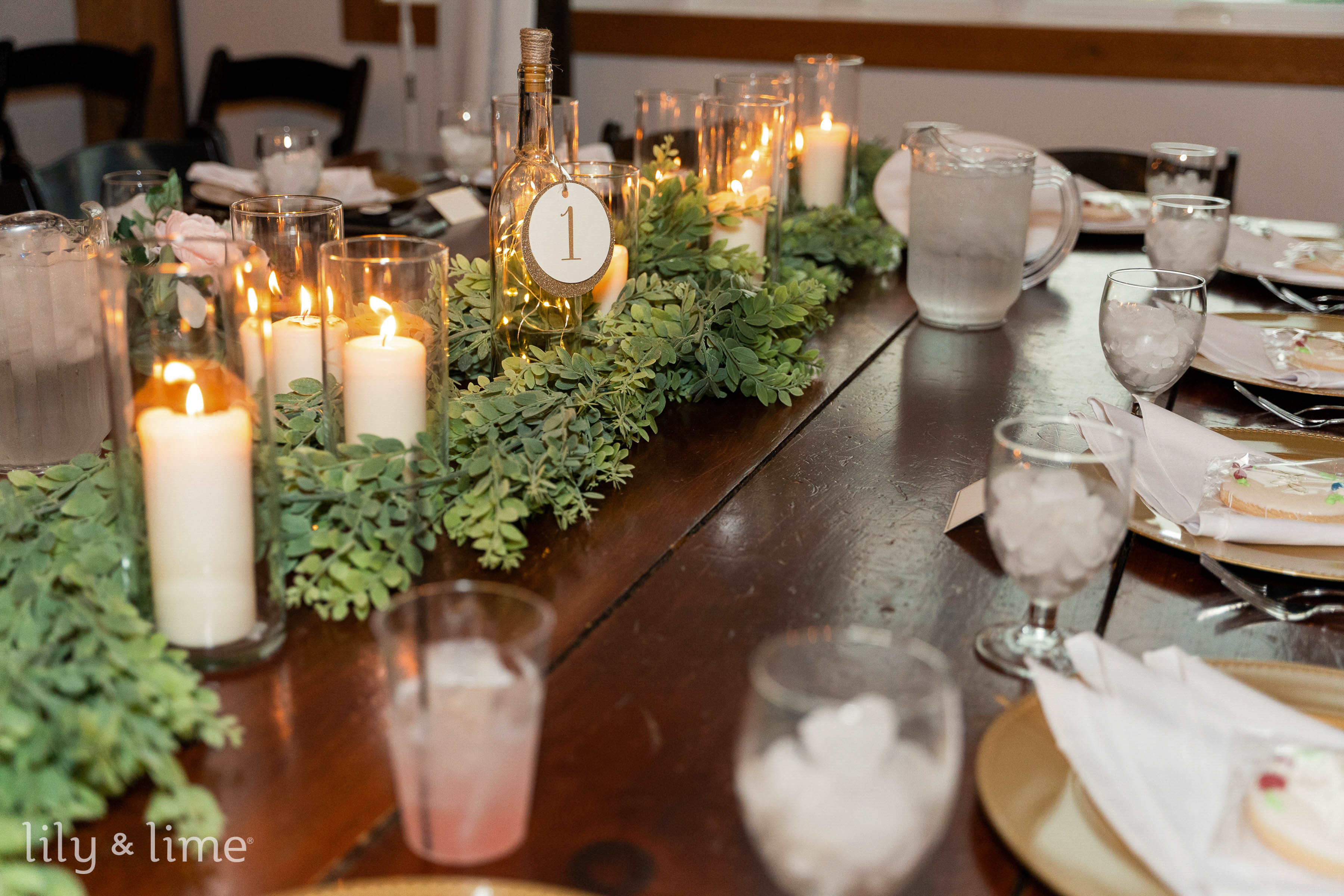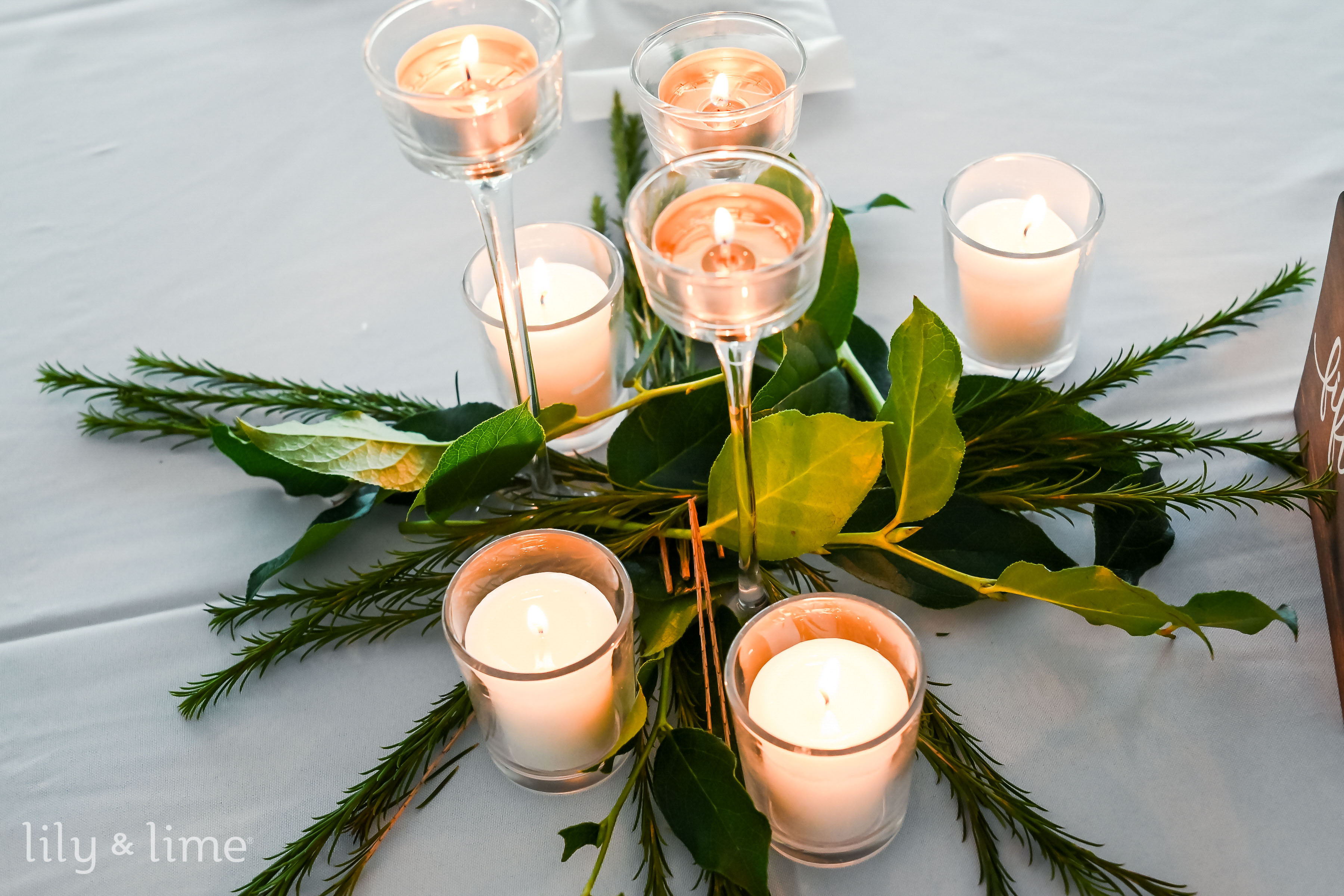 Keep things effortlessly chic by pairing smilax vines or Italian ruscus with taper candles. The greenery’s draped, natural elegance softens tablescapes while the flickering candlelight adds warmth and romance. This minimalist combo is ideal for couples who want a polished look without the fuss. It’s proof that simplicity can truly make the most stunning statement.