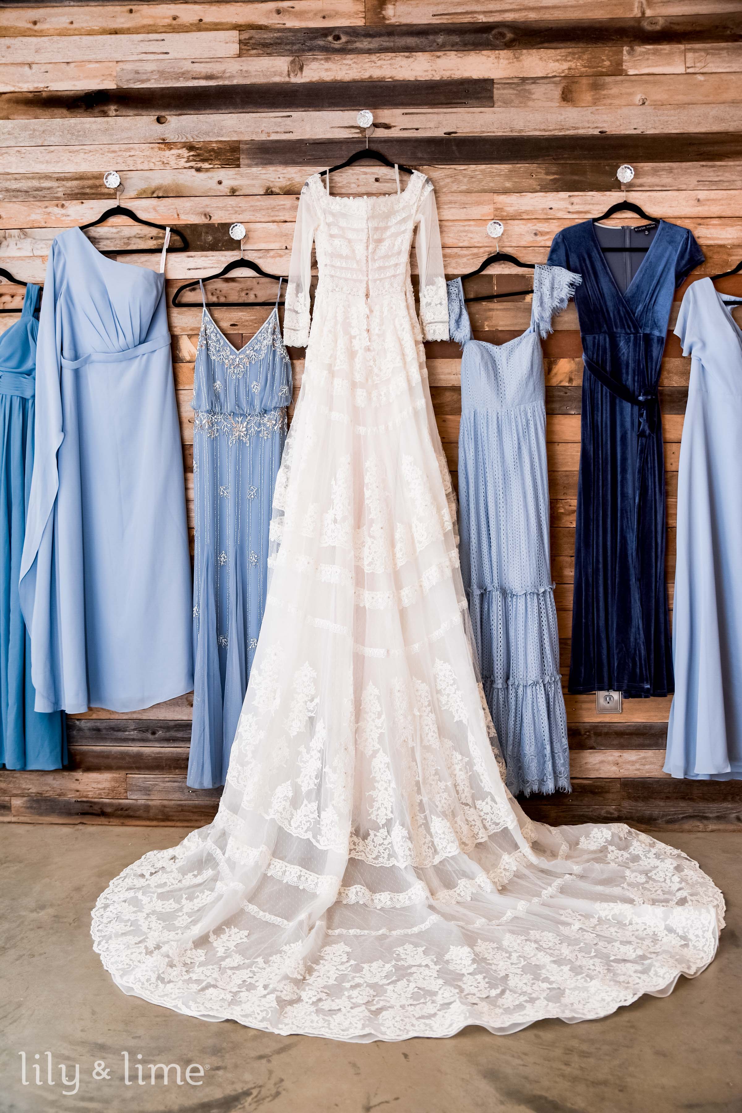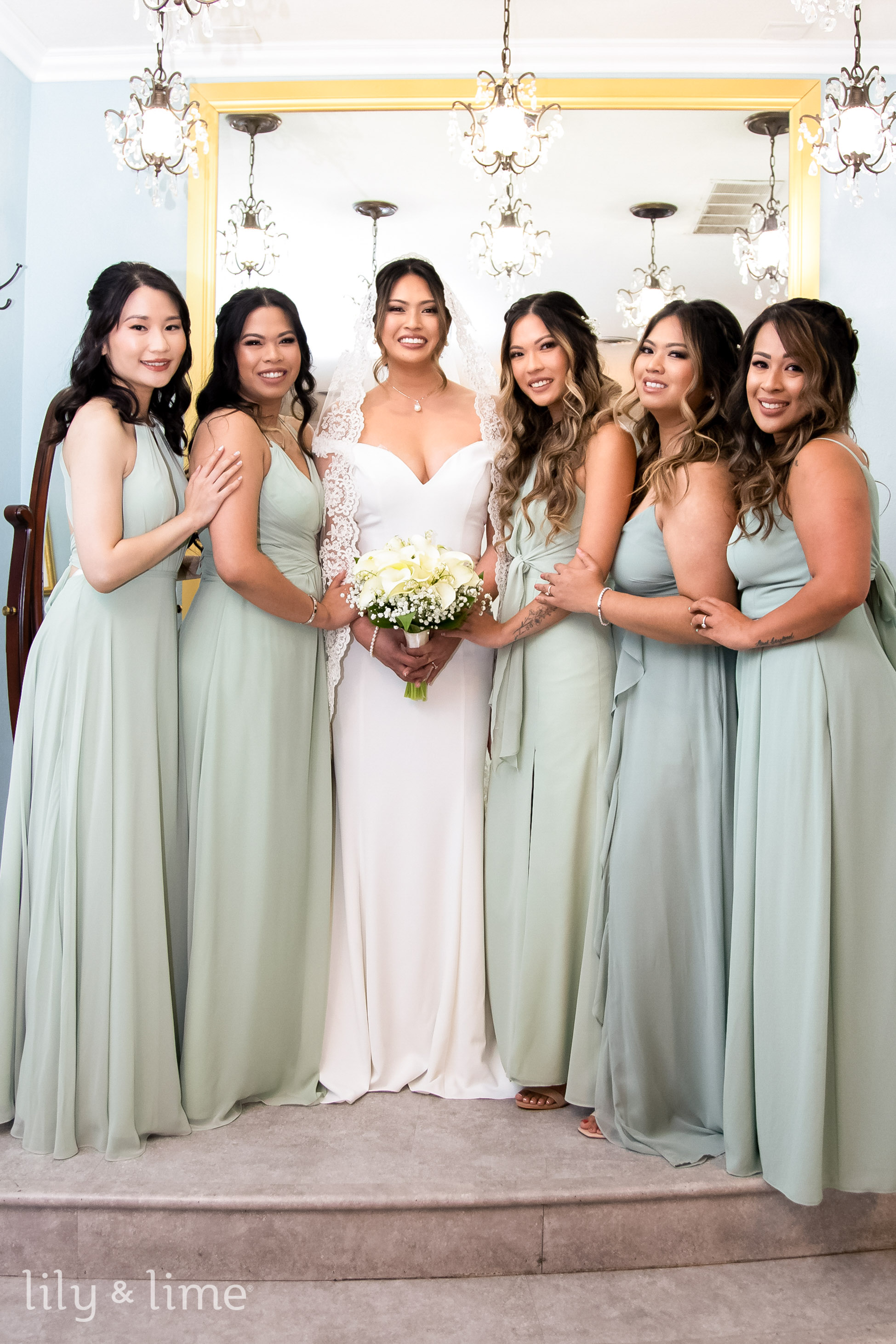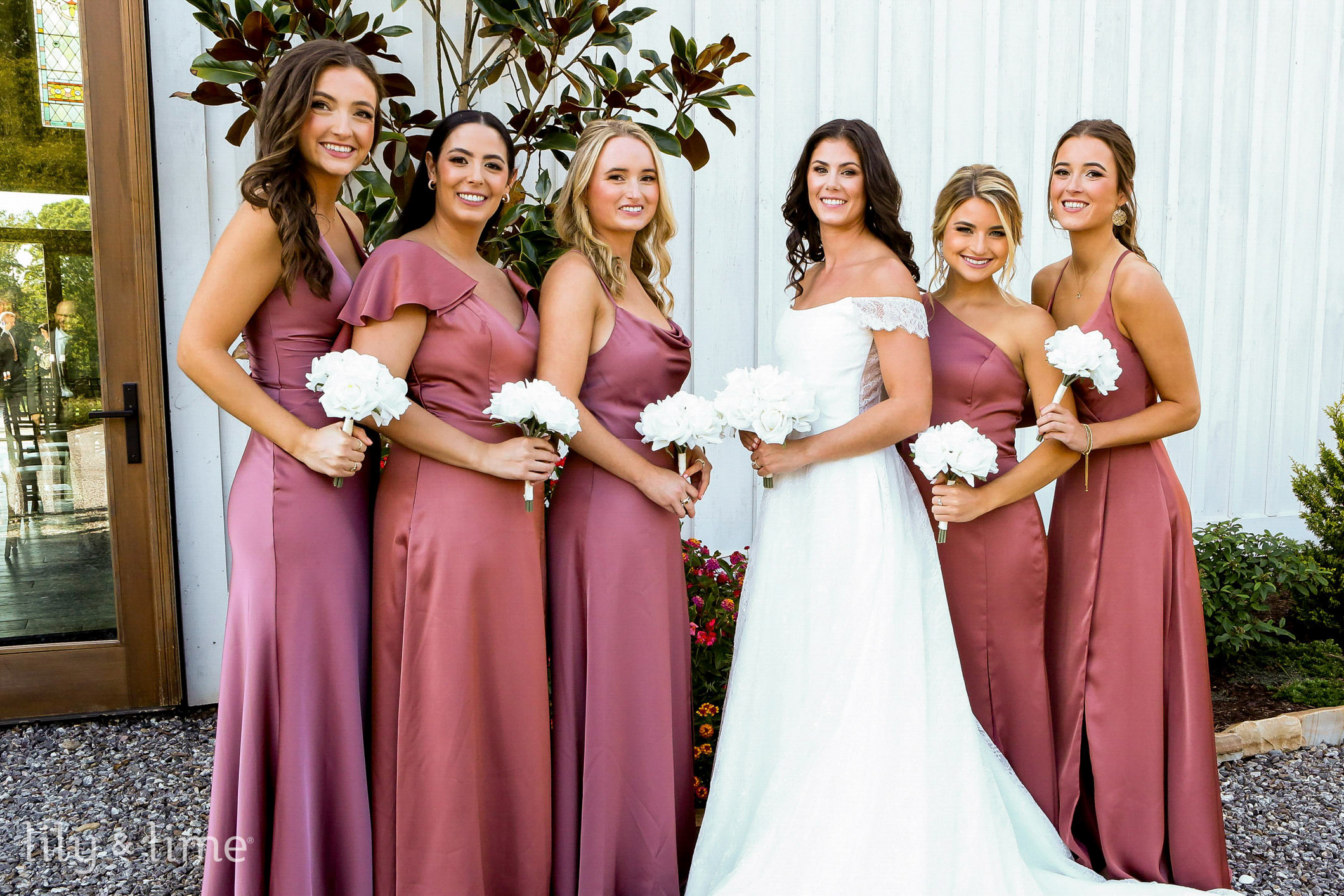 Lace Details: Lace bridesmaid dresses add a delicate and romantic touch to your wedding. Look for dresses with lace sleeves, bodices, or overlays to create an enchanting look that exudes timeless elegance. Lace can provide intricate and beautiful detailing whether it's a full lace gown or just accents. This fabric works wonderfully for fall weddings, adding both texture and sophistication. Pair lace dresses with minimalist jewelry to let the gorgeous patterns stand out and add a vintage charm to your bridal party.