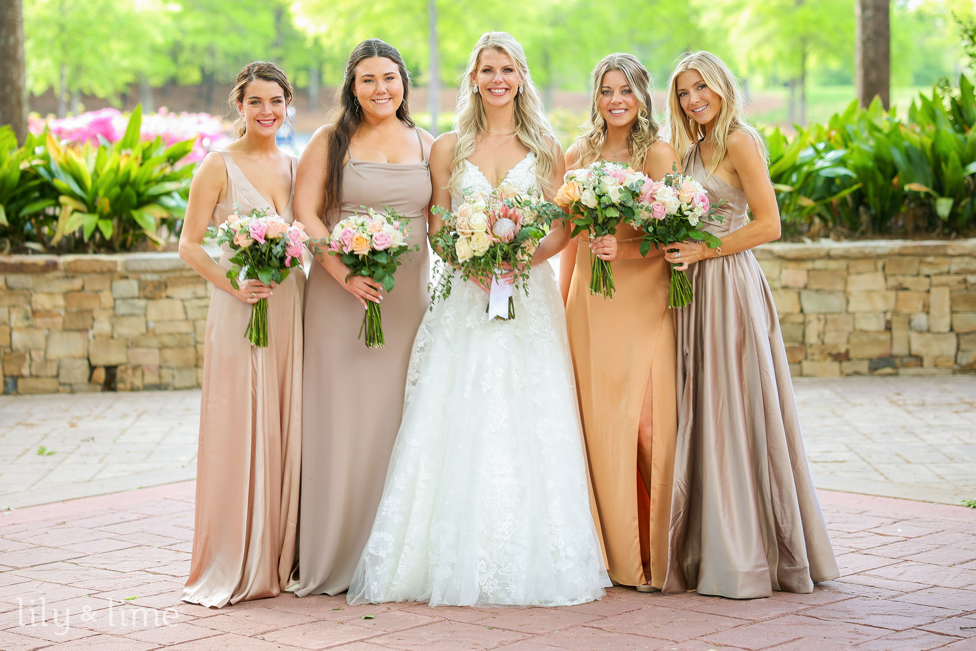 Mix-and-Match Styles: Mix-and-match bridesmaid dresses allow each of your friends to express their personal style while maintaining a cohesive look. Opt for different styles in the same color or complementary shades to create a harmonious ensemble. This approach not only showcases individuality but also ensures that each bridesmaid feels comfortable and confident in her chosen dress. Whether it's varying necklines, lengths, or fabrics, mix-and-match styles can add a dynamic and personalized touch to your bridal party while still adhering to your overall wedding theme.