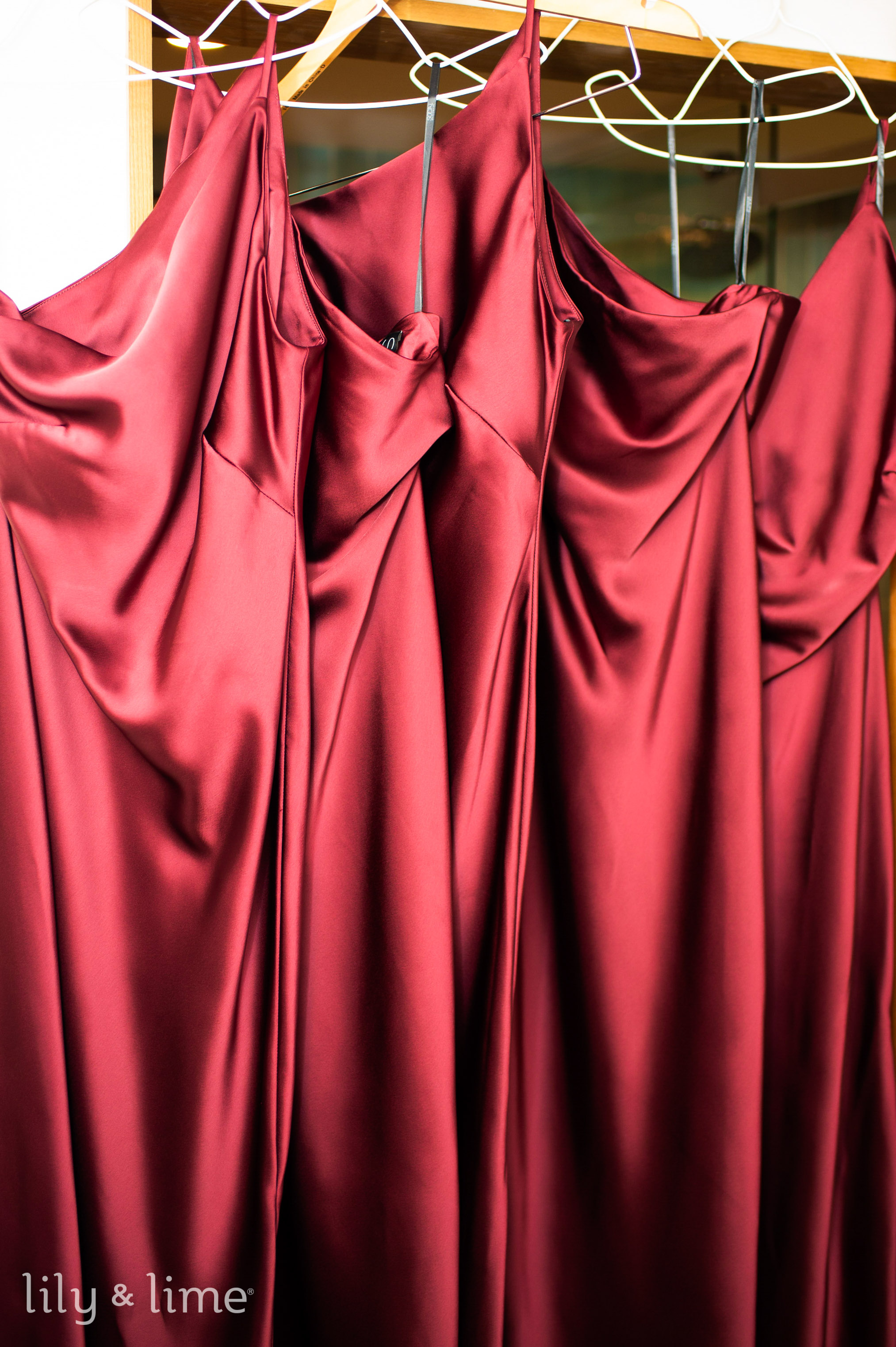 Satin Elegance: Satin dresses are perfect for adding a touch of luxury and shine to your bridal party. This smooth, glossy fabric is flattering and sophisticated, making it a popular choice for fall weddings. Satin's reflective quality catches the light beautifully, ensuring your bridesmaids look radiant in photos. Opt for rich jewel tones or classic neutrals to maintain an elegant aesthetic. Satin dresses can be styled with simple accessories for a clean, modern look or paired with statement jewelry for added glamor.