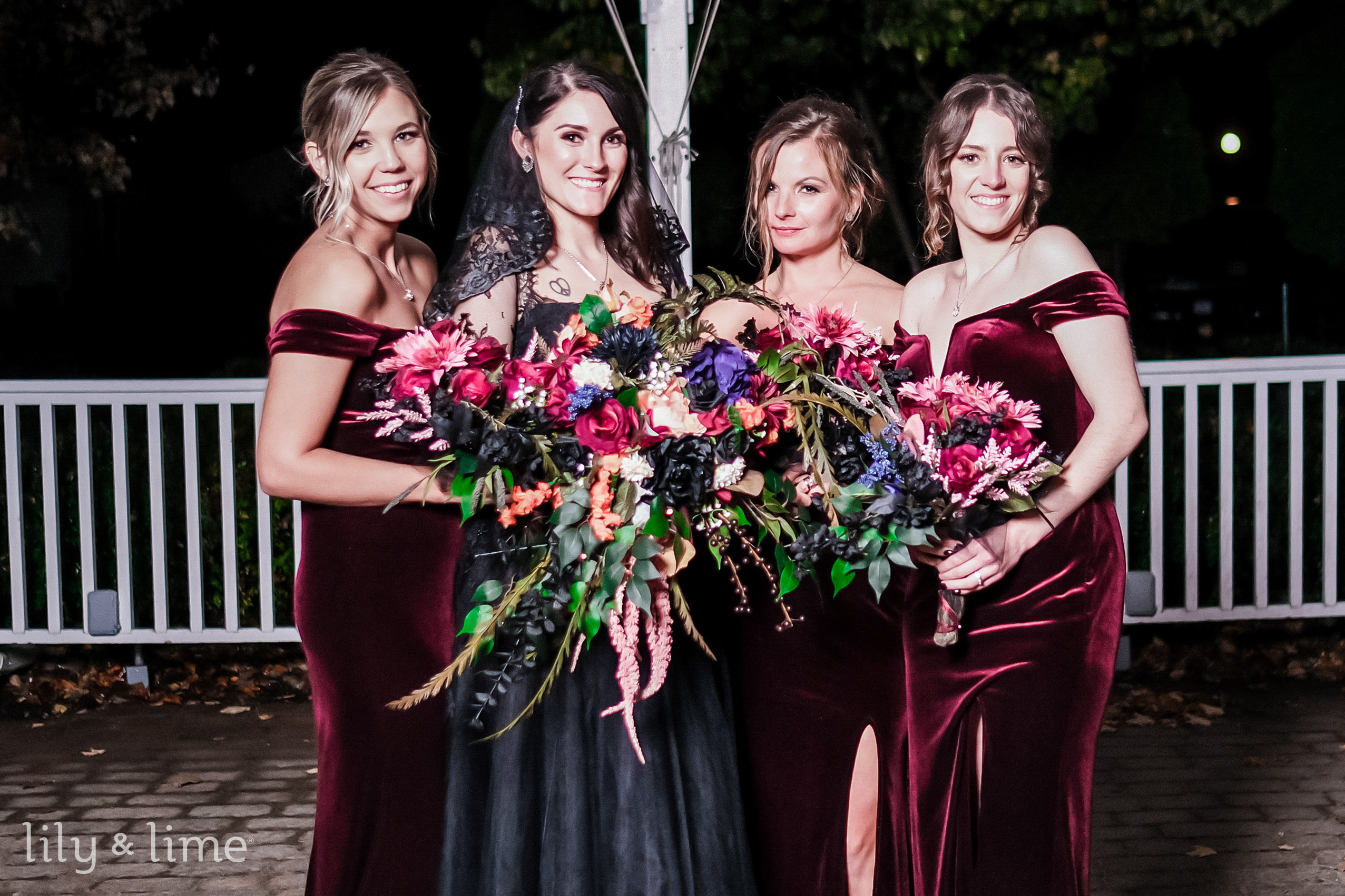 Velvet Fabrics: Velvet is the ultimate fall fabric. It's luxurious, warm, and looks stunning in photos. Opting for velvet dresses in rich colors ensures your bridesmaids stand out while staying comfortable in cooler temperatures. The plush texture of velvet adds a layer of depth and richness, making it an excellent choice for both day and evening weddings. Additionally, velvet can be paired beautifully with other autumnal elements like wooden accents or metallics, enhancing the overall aesthetic of your special day.