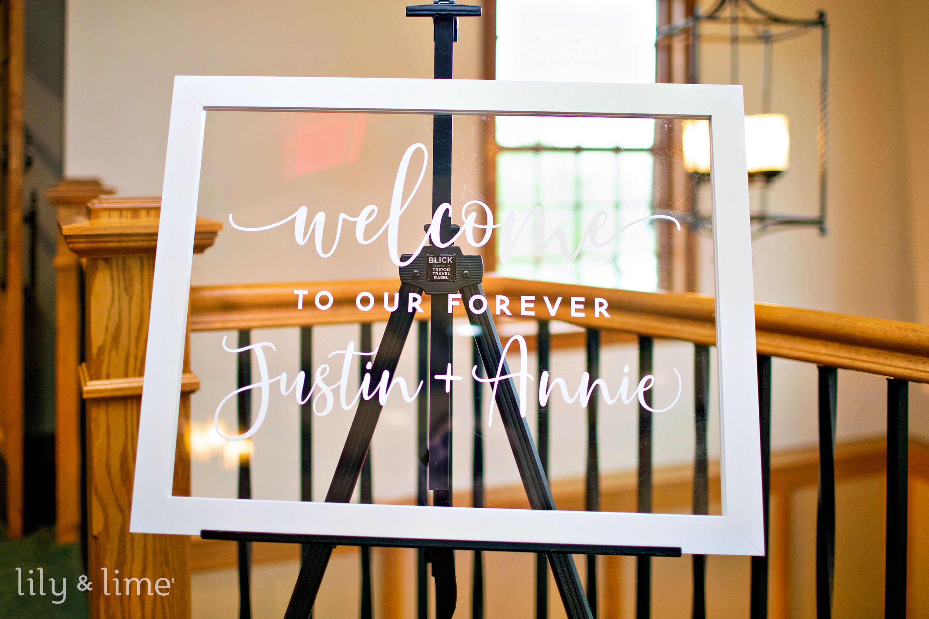 Use a frosted acrylic sign to direct guests to your guestbook table. Inscribe it with a phrase like, "Leave Your Love Here," pairing clean lines and metallic lettering for a modern look. Surround it with candles and flowers to create a focal point that enhances elegant wedding details.