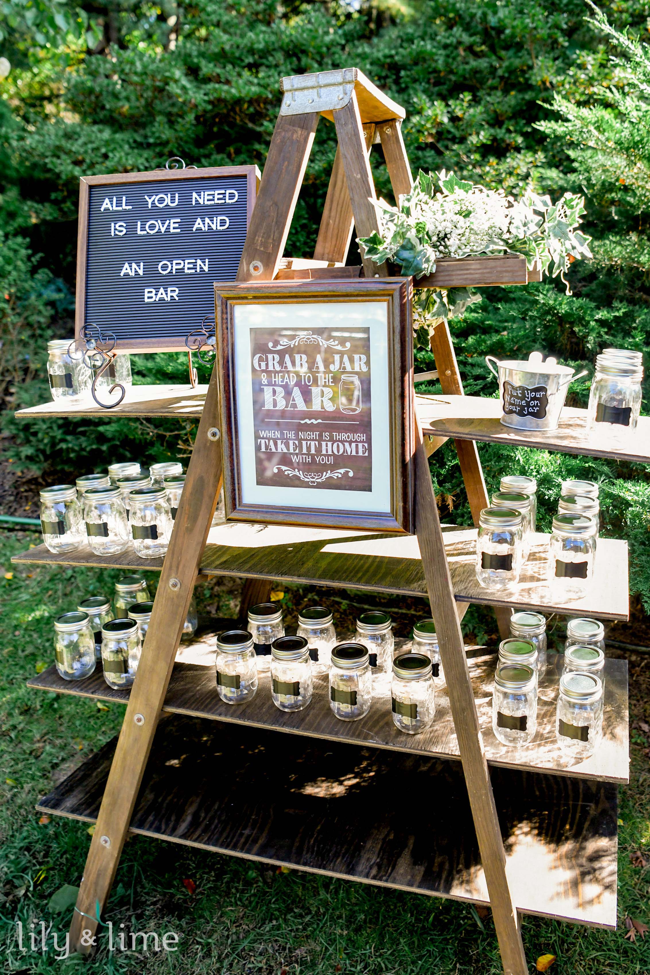Craft a unique bar from upcycled wooden pallets for a sustainable and budget-friendly option. This DIY bar idea adds a rustic charm and can be easily customized with paint or stain to match your wedding colors. Enhance the look with fairy lights or potted plants, making it a standout feature that reflects your eco-conscious style.