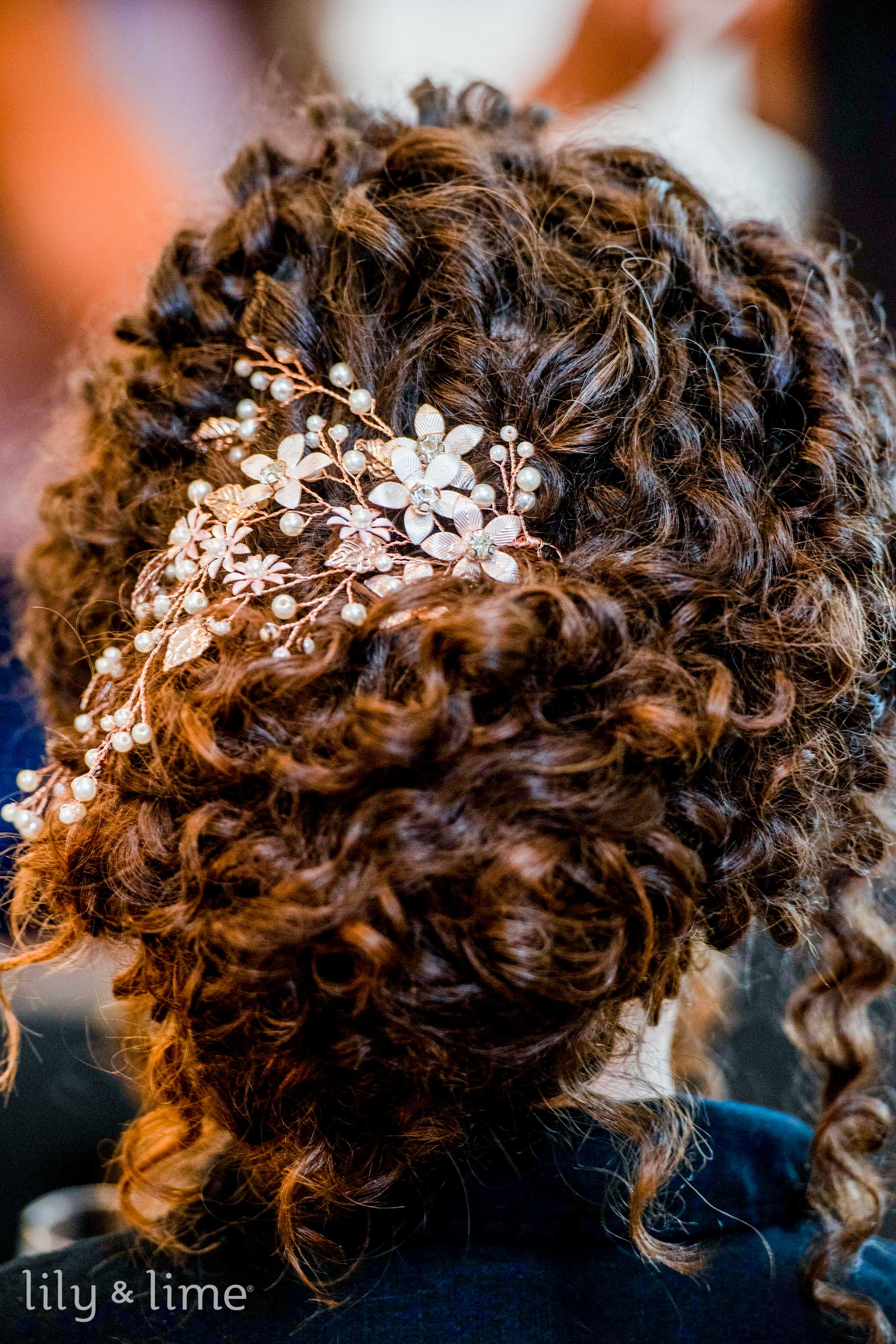 Pearl pins are a timeless choice, adding a touch of elegance and sophistication to floral spring bridal hairstyles. These dainty accessories work beautifully in both classic summer bridal updos and loose waves, providing a subtle yet stunning enhancement to your look. Ideal for brides who appreciate understated beauty, pearl pins can be clustered together for a more dramatic effect or scattered throughout your hair for a hint of sparkle.