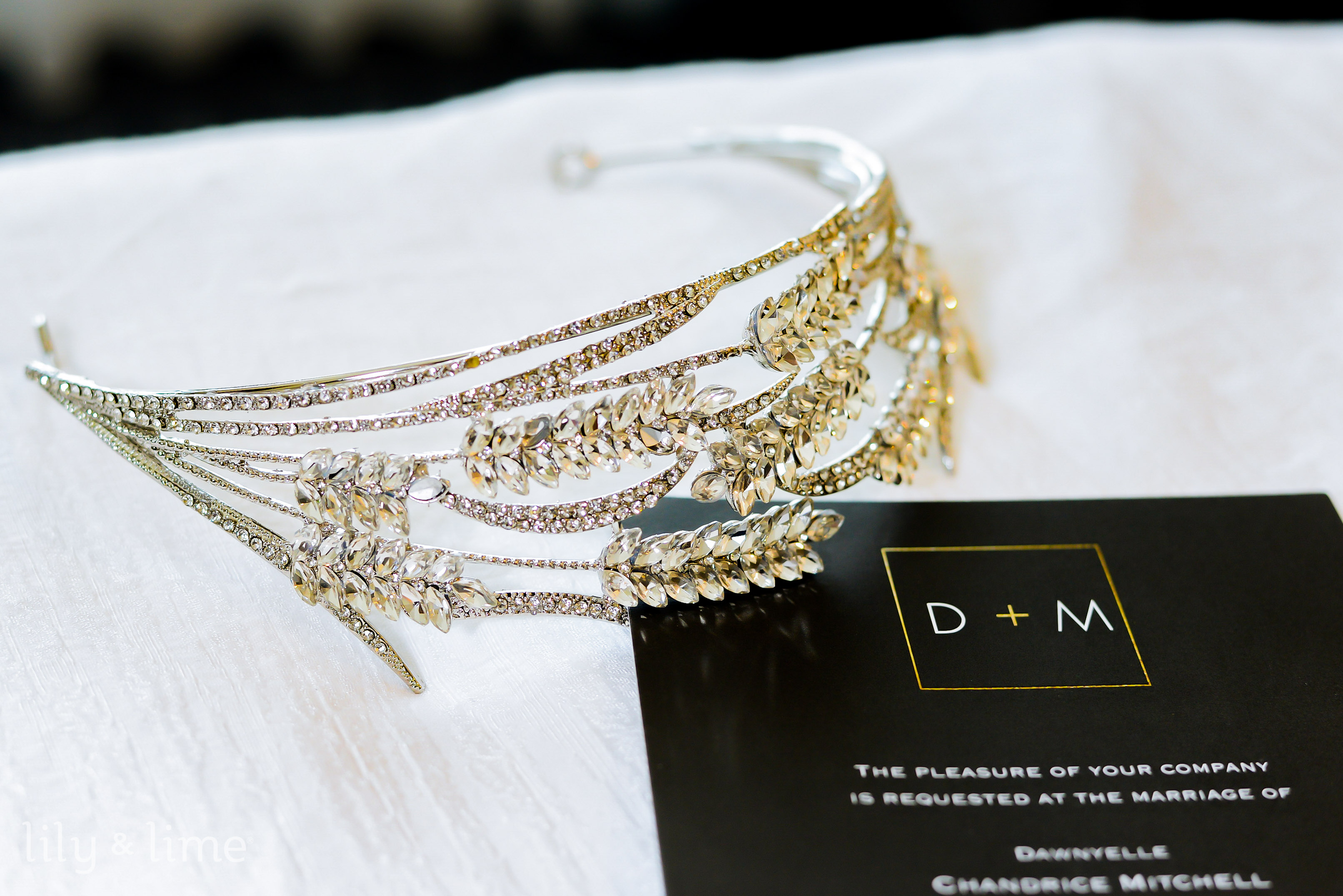 For brides who want to add a touch of fairy-tale magic to their wedding day, a rhinestone tiara is the perfect choice. This sparkling accessory works beautifully with a classic updo or flowing curls, creating a regal and enchanting look. Rhinestone tiaras are versatile and can complement various bridal styles, from glamorous to traditional.