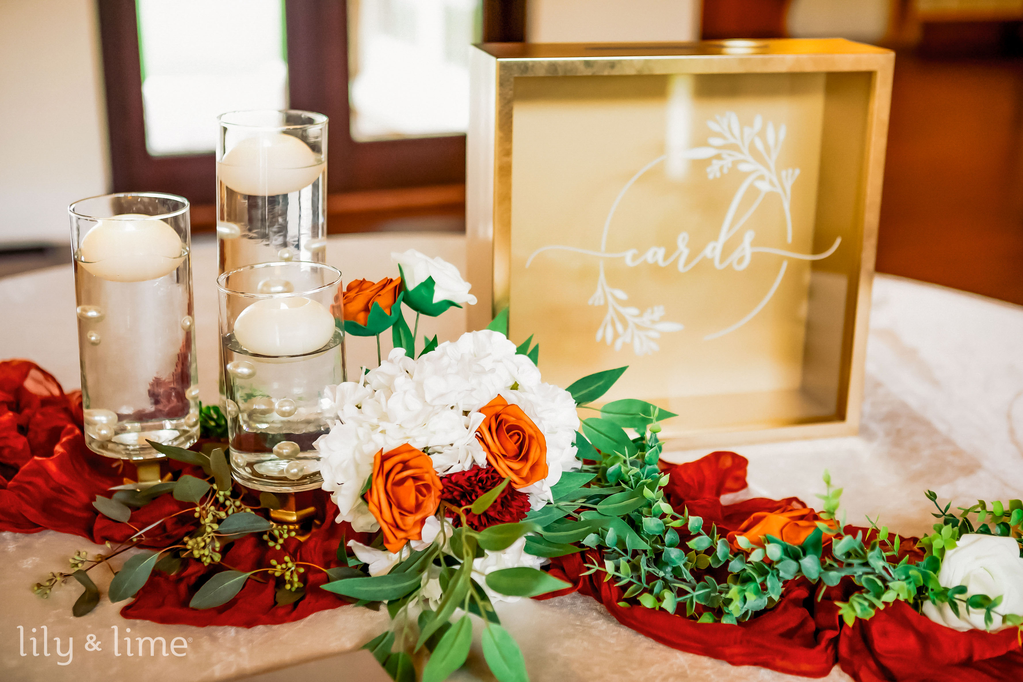 For a warm and grounded palette, combine maple red with taupe and linen white. Maple red florals with taupe ties create stunning fall bouquets, while linen white seating keeps it crisp. Use taupe napkins paired with maple red stationary accents for added depth. This palette is perfect for fall weddings looking for an elegant yet rustic aesthetic.