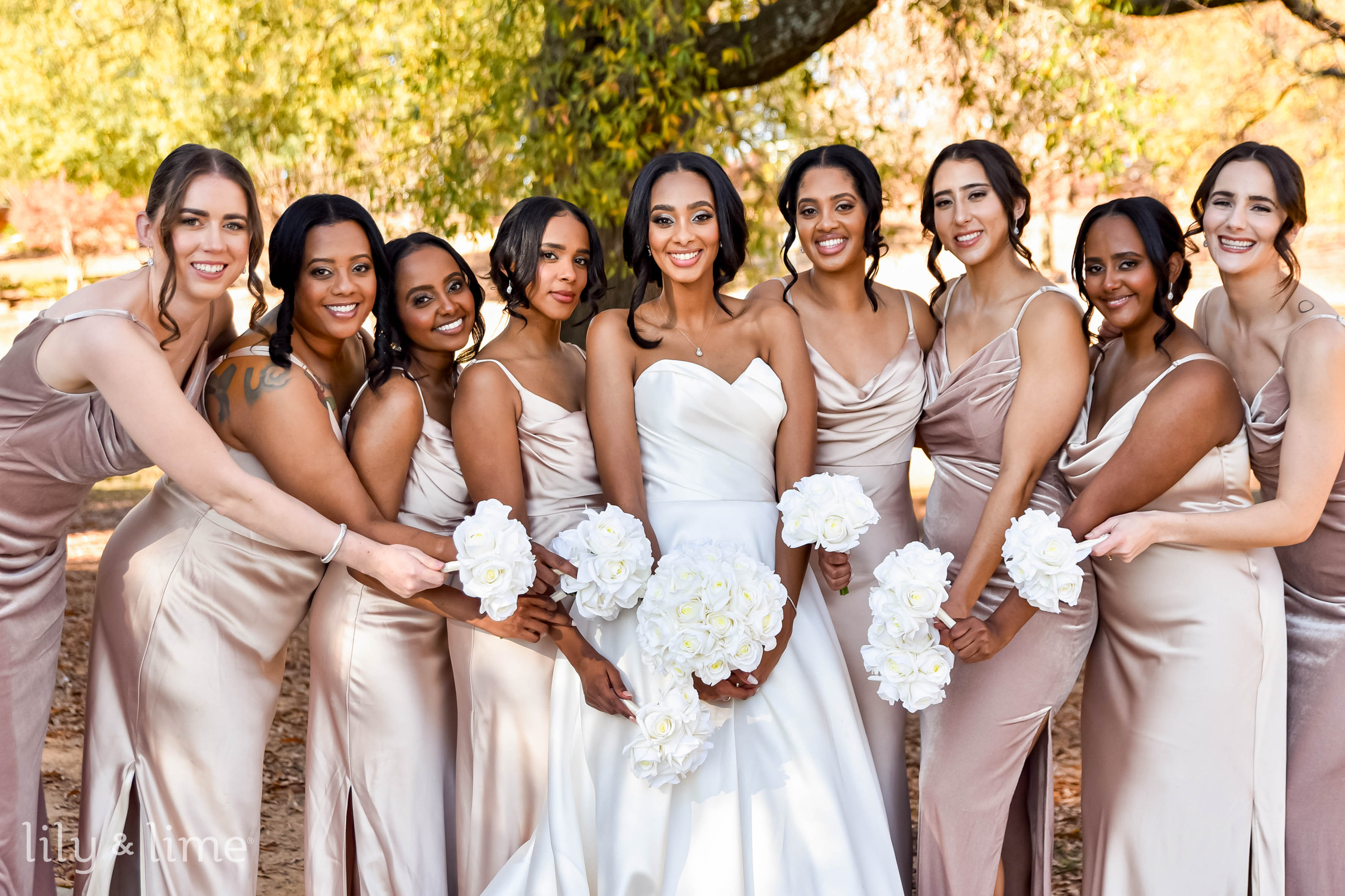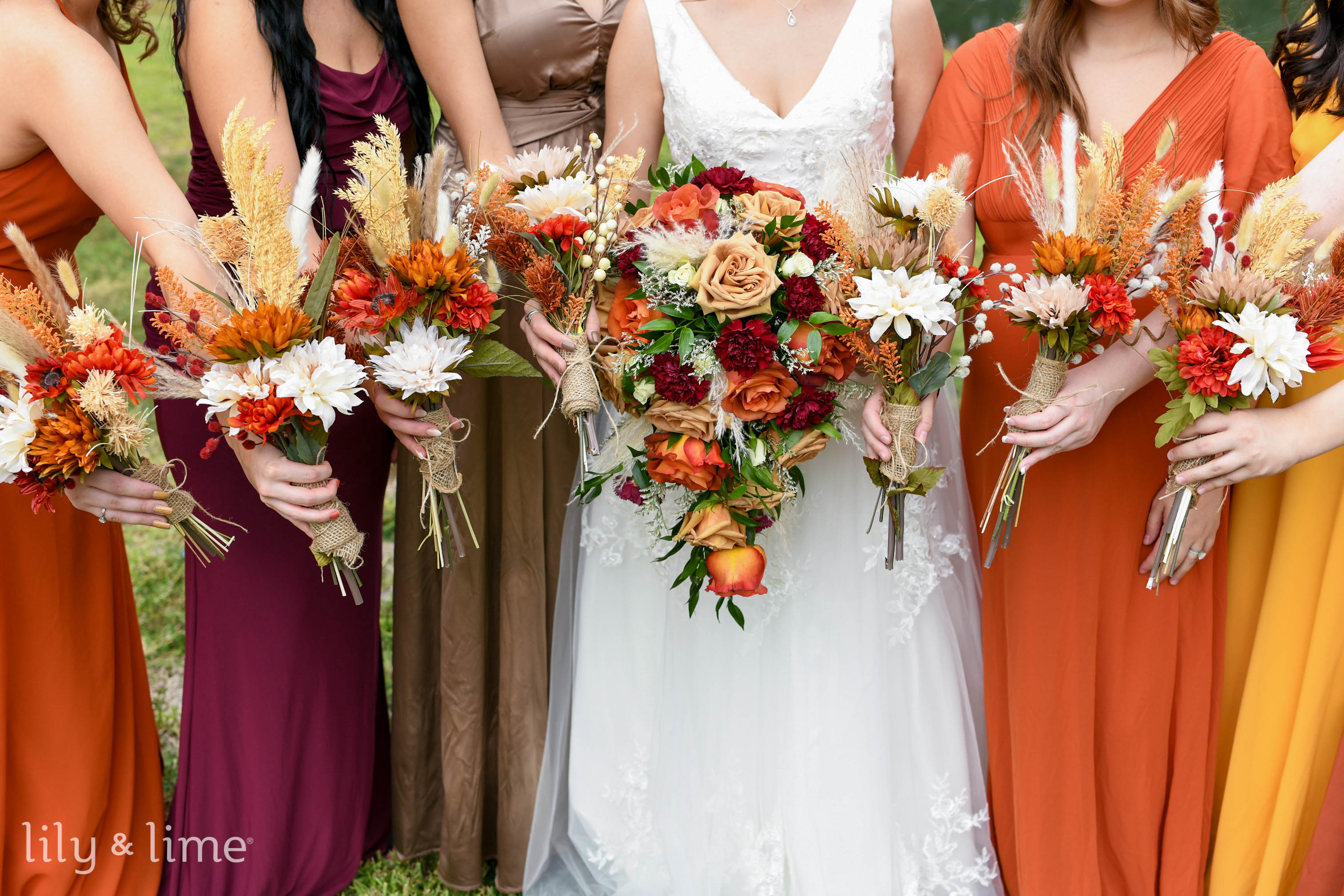 For a minimalistic yet earthy vibe, warm taupe and mocha create the perfect blend. Taupe bridesmaid dresses align beautifully with mocha-hued decor elements like signage or invitations. Accessorize with dried wedding flowers, ceramic tableware, and linen napkins for a soft, elegant look. This palette seamlessly complements indoor and outdoor venues looking for a natural, neutral color scheme with timeless appeal.