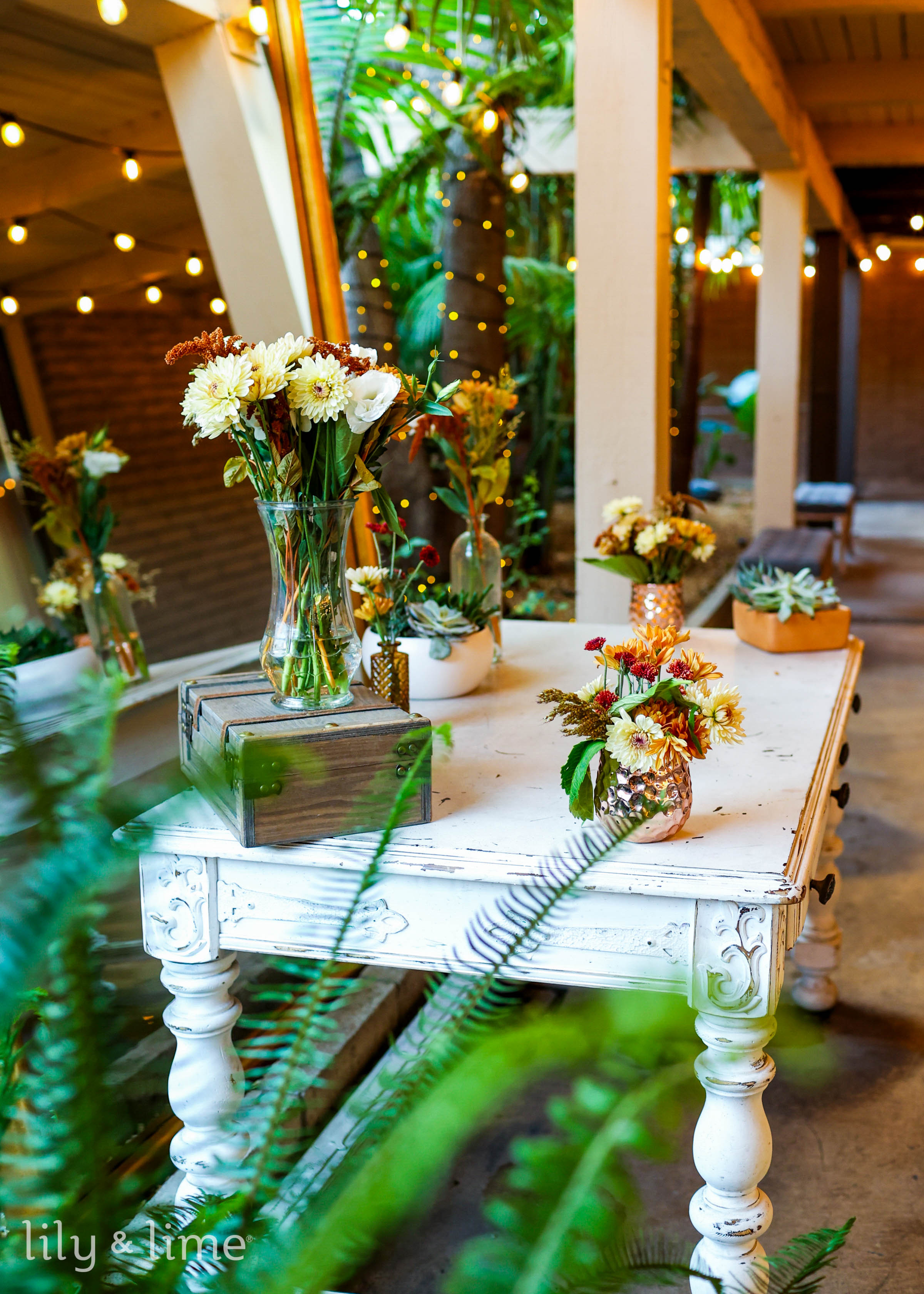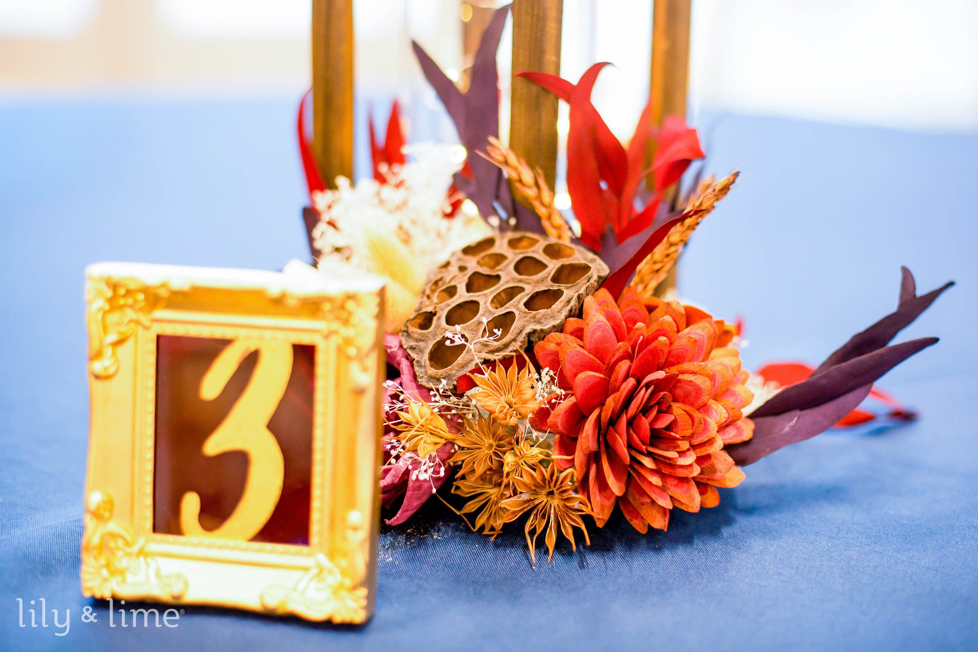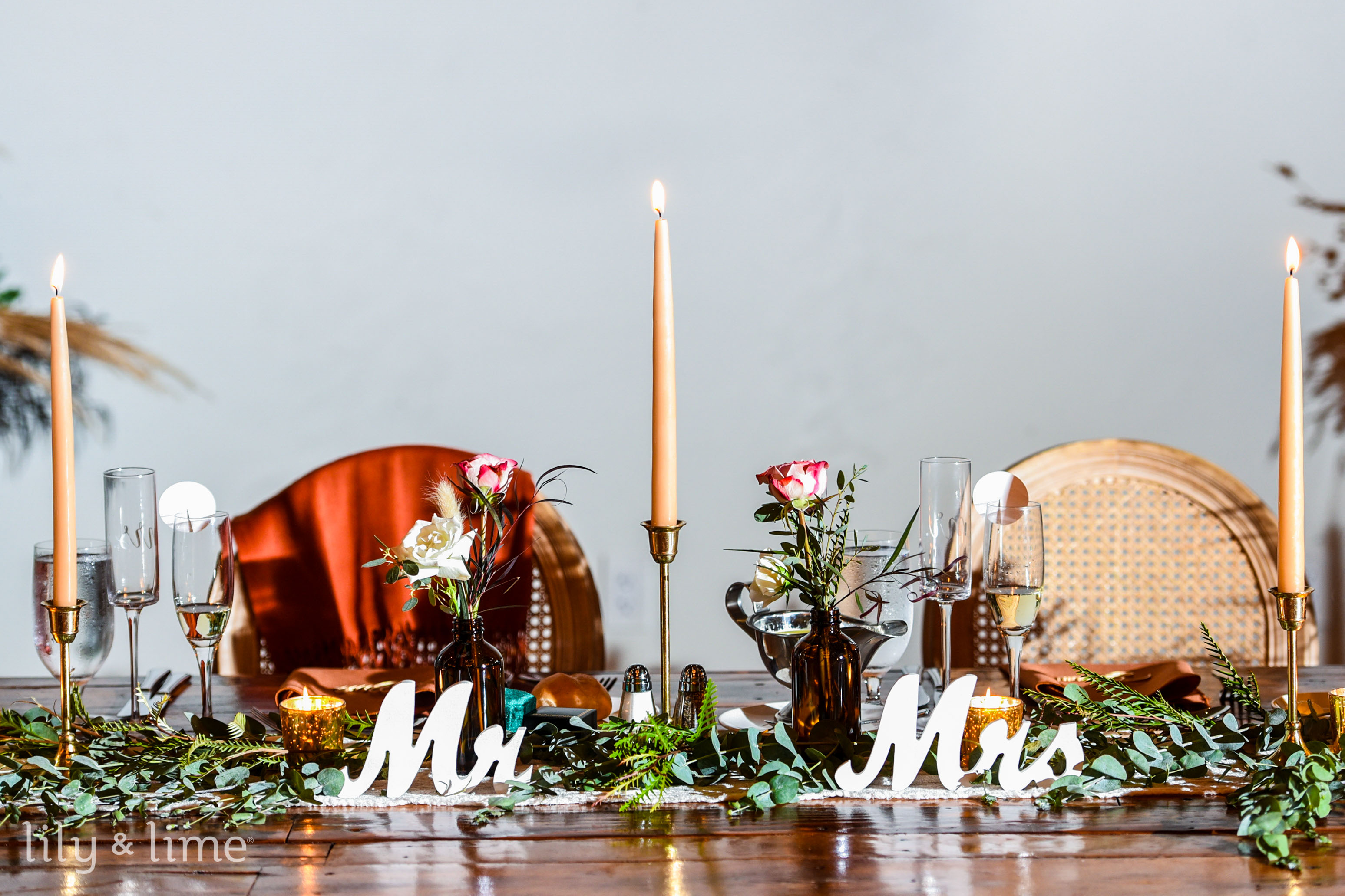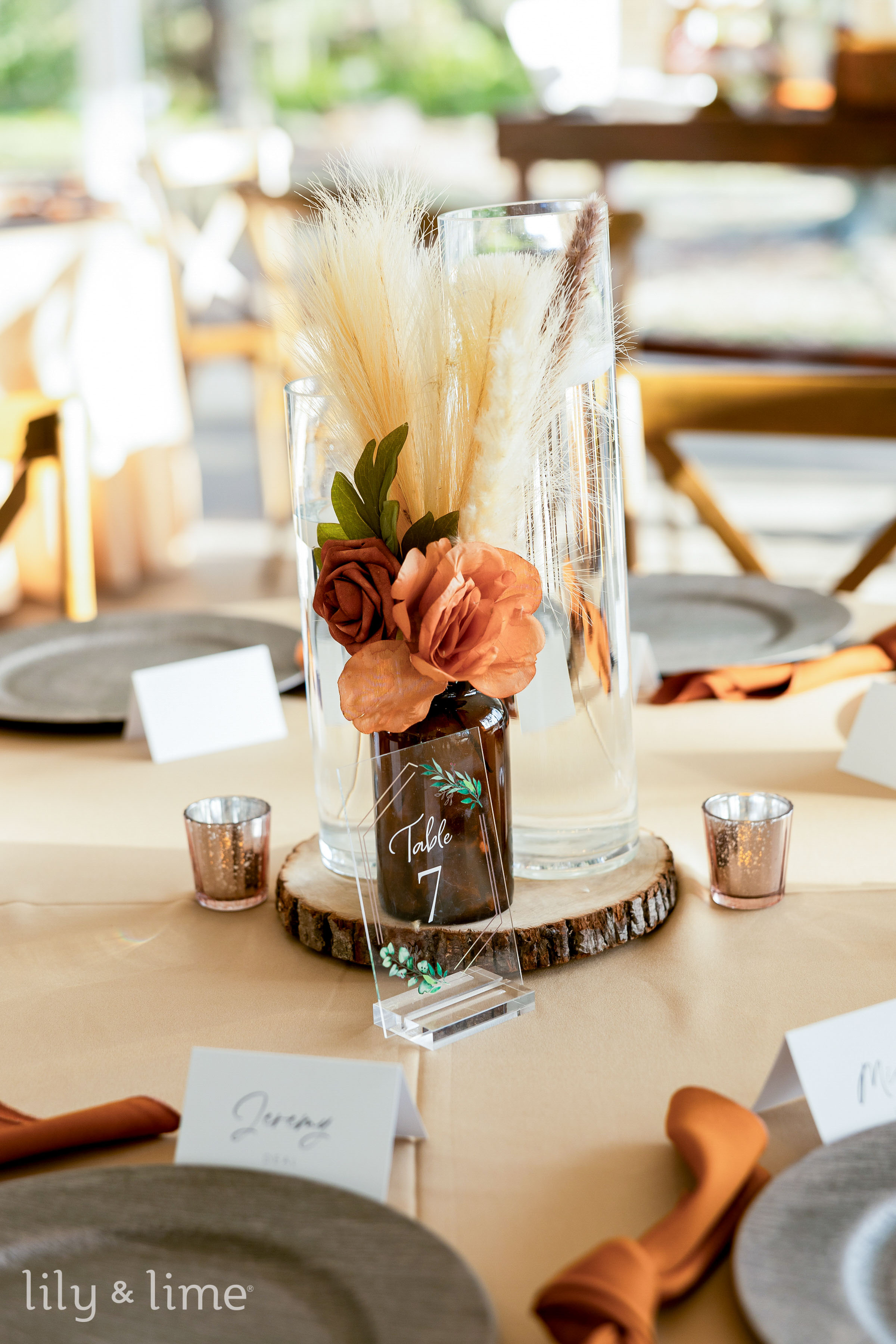 Charcoal provides depth, sand adds softness and burnt orange delivers a bold pop of seasonal flair. Use burnt orange details in florals or stationery, while charcoal chargers ground the setting. Sand-colored table linens keep the palette light and airy, making it a perfect choice for moody yet balanced modern wedding decor. Incorporate lanterns and warm candlelight to enhance these fall-appropriate wedding colors.