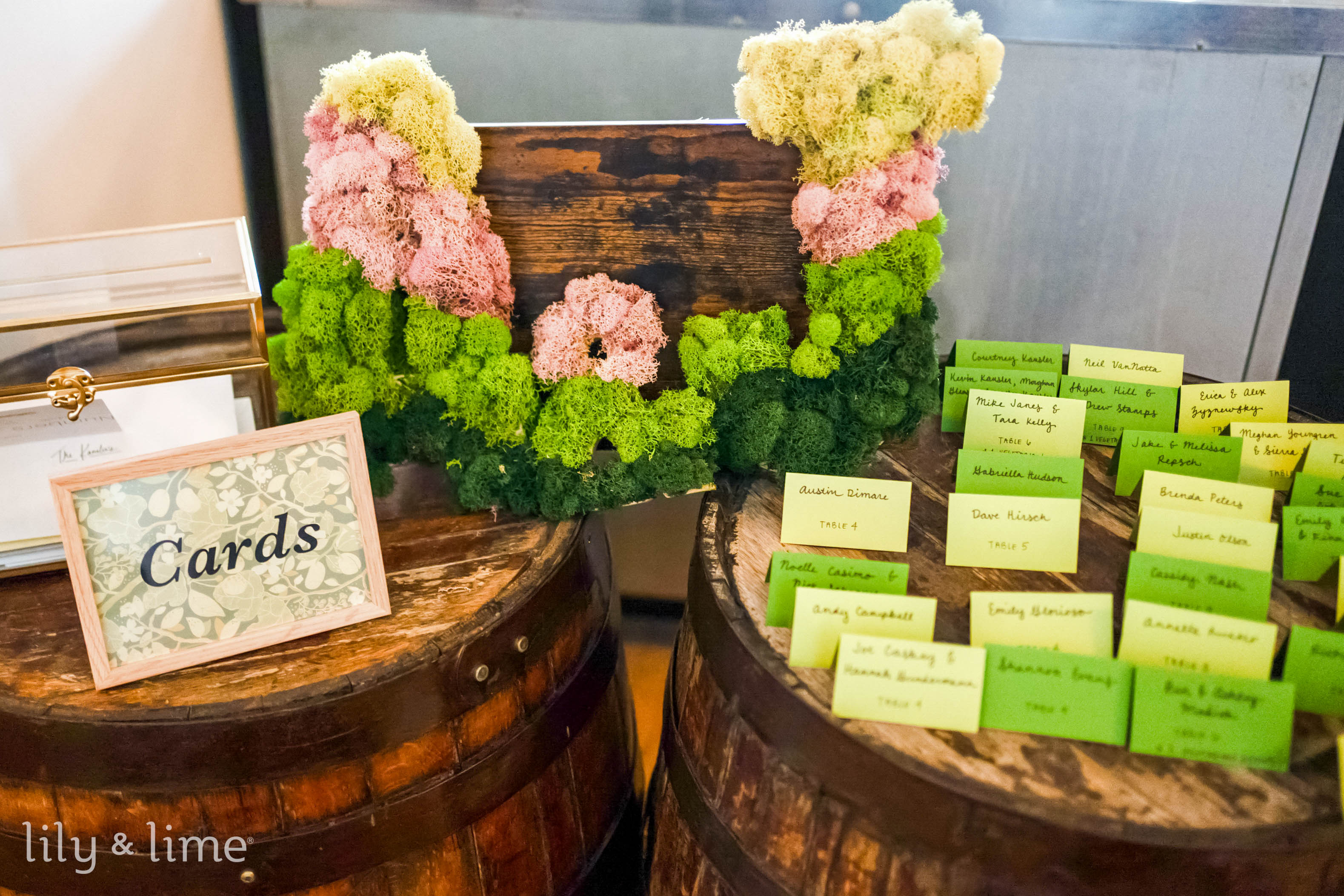 Willow green’s soft vibrancy combined with stone gray creates a subtle yet striking look. Accentuate this palette with willow green reeded placemats, stone gray draping, and eucalyptus garlands for fall wedding decor. Bridesmaids in flowing gray dresses holding willow-green bouquets enhance the natural sophistication of the look.