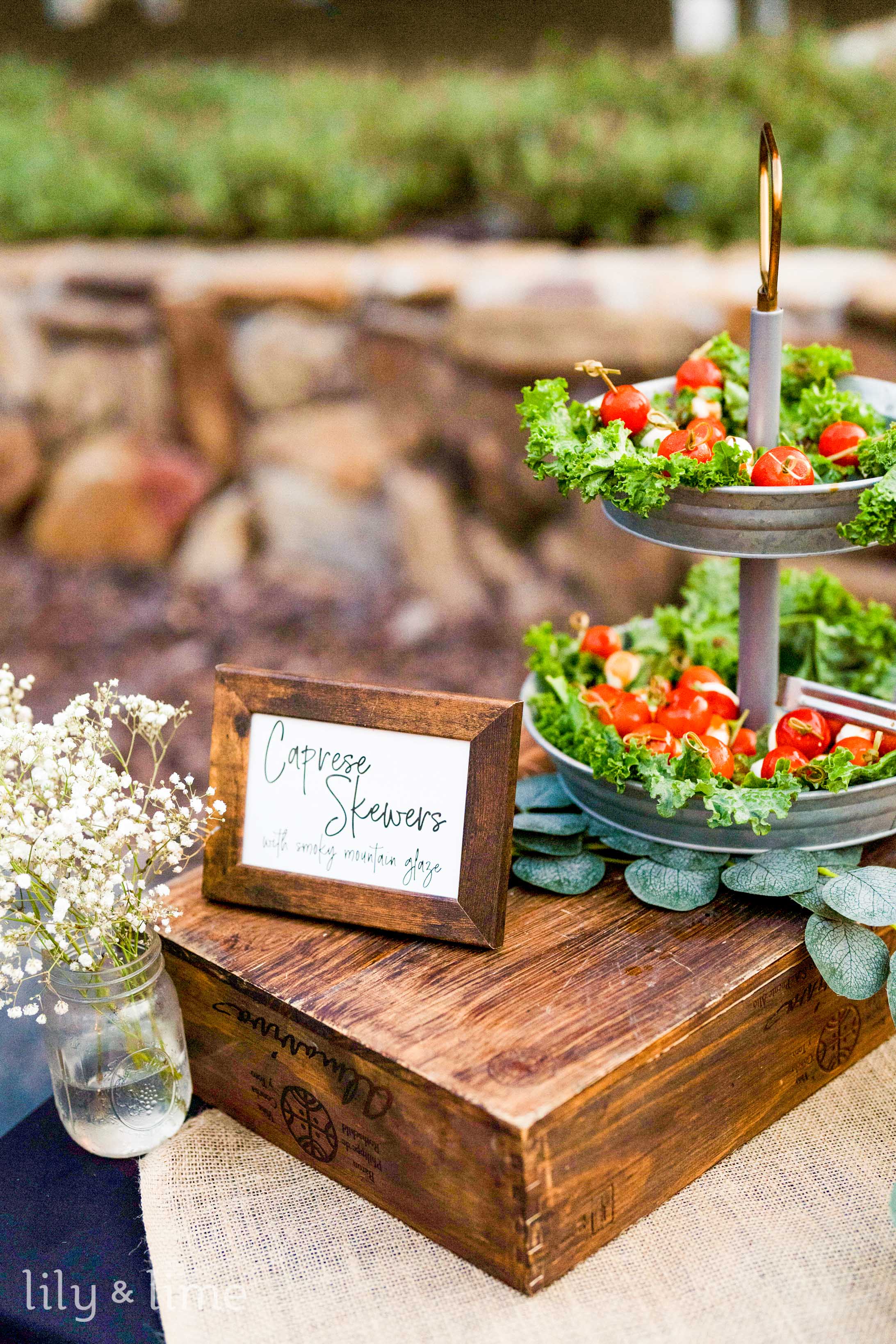 Mini Caprese skewers are a fresh and vibrant addition to your DIY wedding snack ideas. Each skewer features cherry tomatoes, mozzarella balls, and fresh basil, all drizzled with balsamic glaze. Mini Caprese skewers pair well with Prosecco or sparkling cucumber water, delivering a burst of flavor in a single bite that screams sophistication.