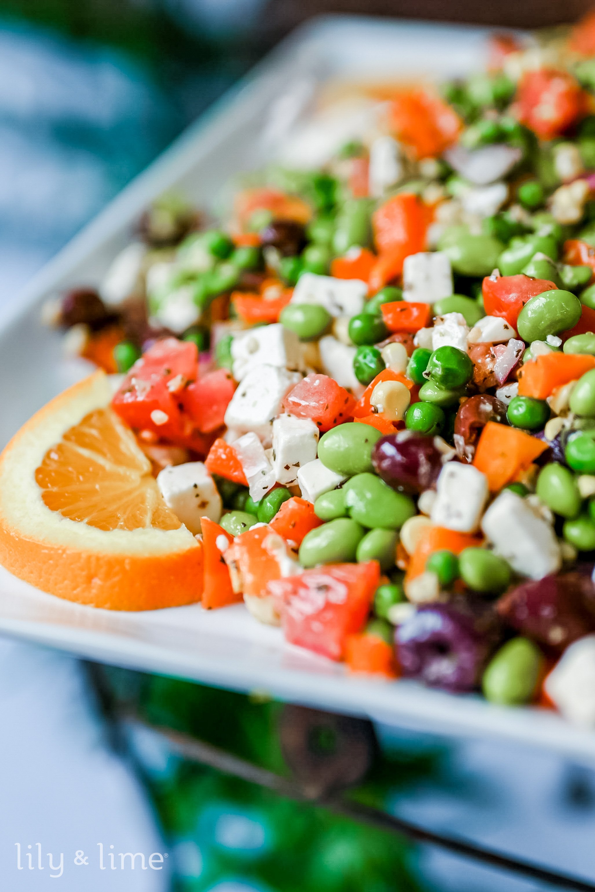 Edamame hummus served with a rainbow of veggie sticks is a fun, health-conscious appetizer. The creamy, nutty flavor of the edamame hummus pairs beautifully with crisp, fresh vegetables. A glass of chilled sake or a sparkling lime spritzer enhances the unique flavors of this appetizer.