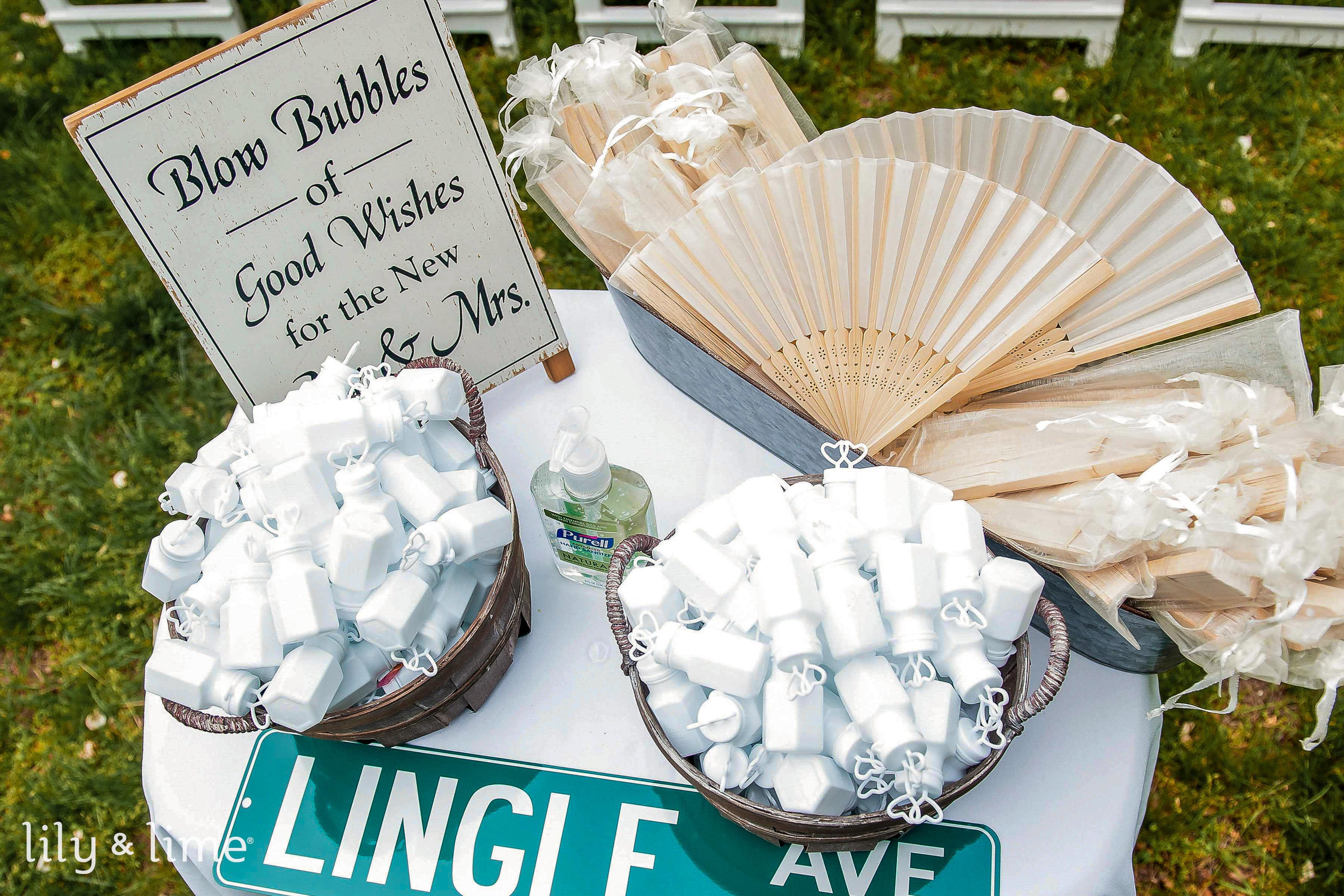 Line your ceremony or reception pathways with DIY lanterns made from mason jars filled with candles or fairy lights. Enhance the charm by tying them to small wooden stakes or branches. A glowing pathway under the stars adds to the ambiance and helps guide guests across your outdoor venue.