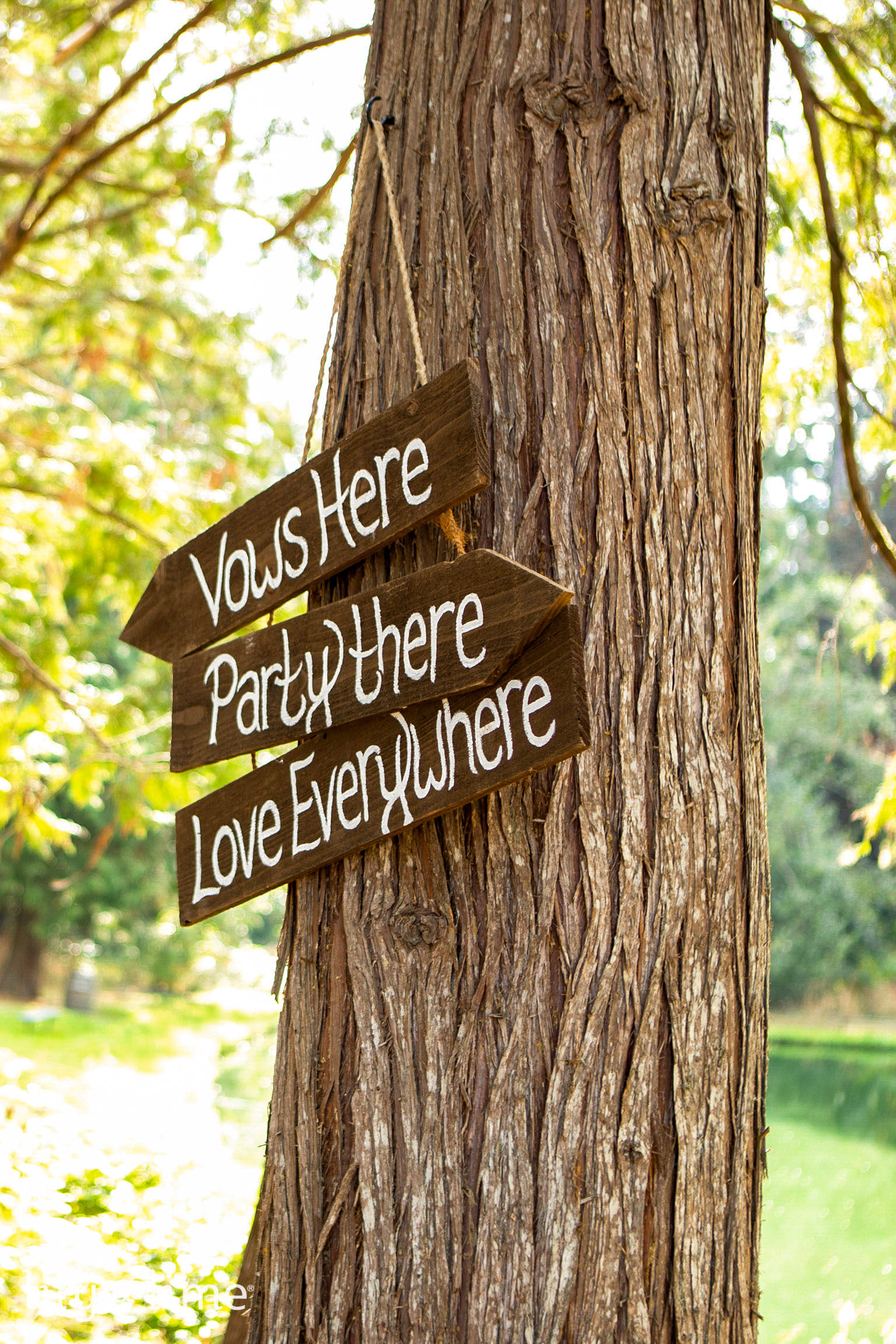 Add a touch of whimsy by placing wooden signposts around your venue. Paint directions or fun messages like “Reception This Way” or “Campfire Stories Here.” Rustic wedding decorations like personalized signposts help guests find their way while enhancing your theme.