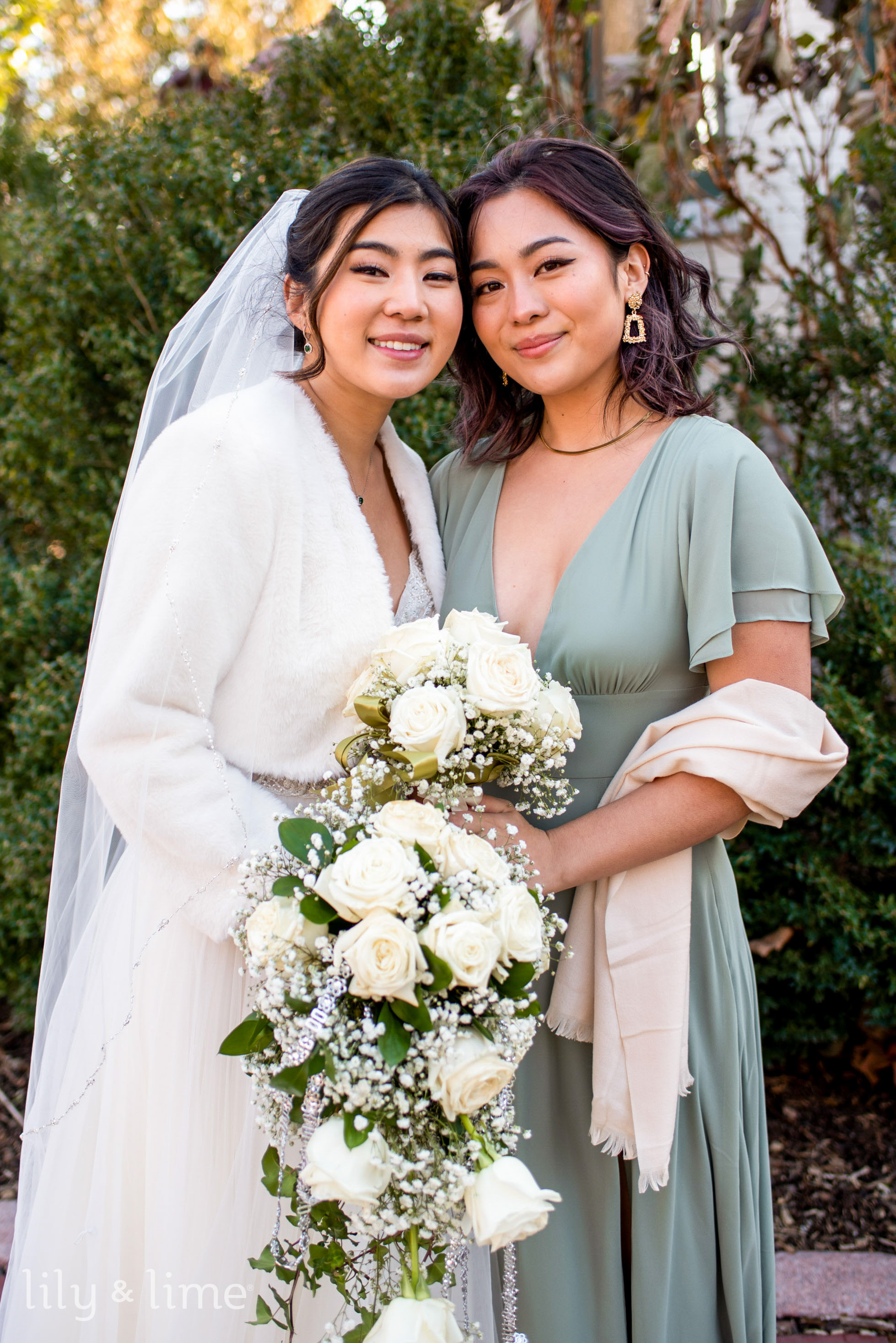 Firstly, imagine yourself wrapped in the snug embrace of a luxurious faux fur coat. Picture the softness of the fur against your skin, providing both warmth and opulence and complemented with the best of winter bridal accessories that are ready to make a statement. As a planning bride, you have a plethora of options to consider when it comes to your winter bridesmaid getting-ready outfits. One fantastic choice is a bridal coat in elegant, neutral shades such as ivory, champagne, or soft gray. This versatility allows for seamless pairing with any bridesmaid dress in your color scheme. The sumptuous faux fur texture of the coat adds a touch of opulent glamor, making your bridesmaid feel like a true winter princess as they prepare to stand by your side. Think about all the gorgeous bridesmaid photos!