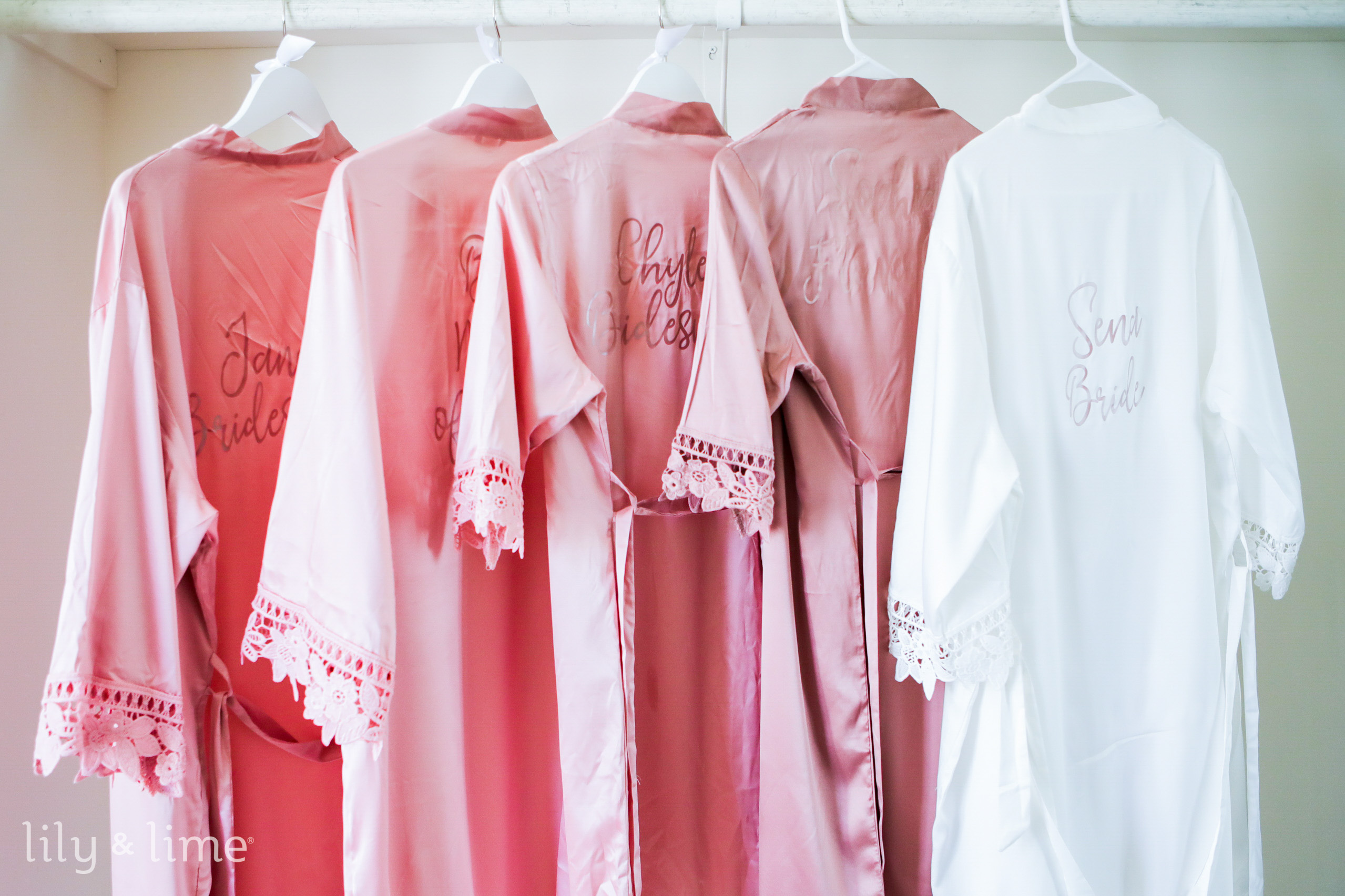 Make your bridal party feel special with customizable sets from SS Weddings. Available in six pastel hues, they are perfect for mixing and matching your wedding party look.
