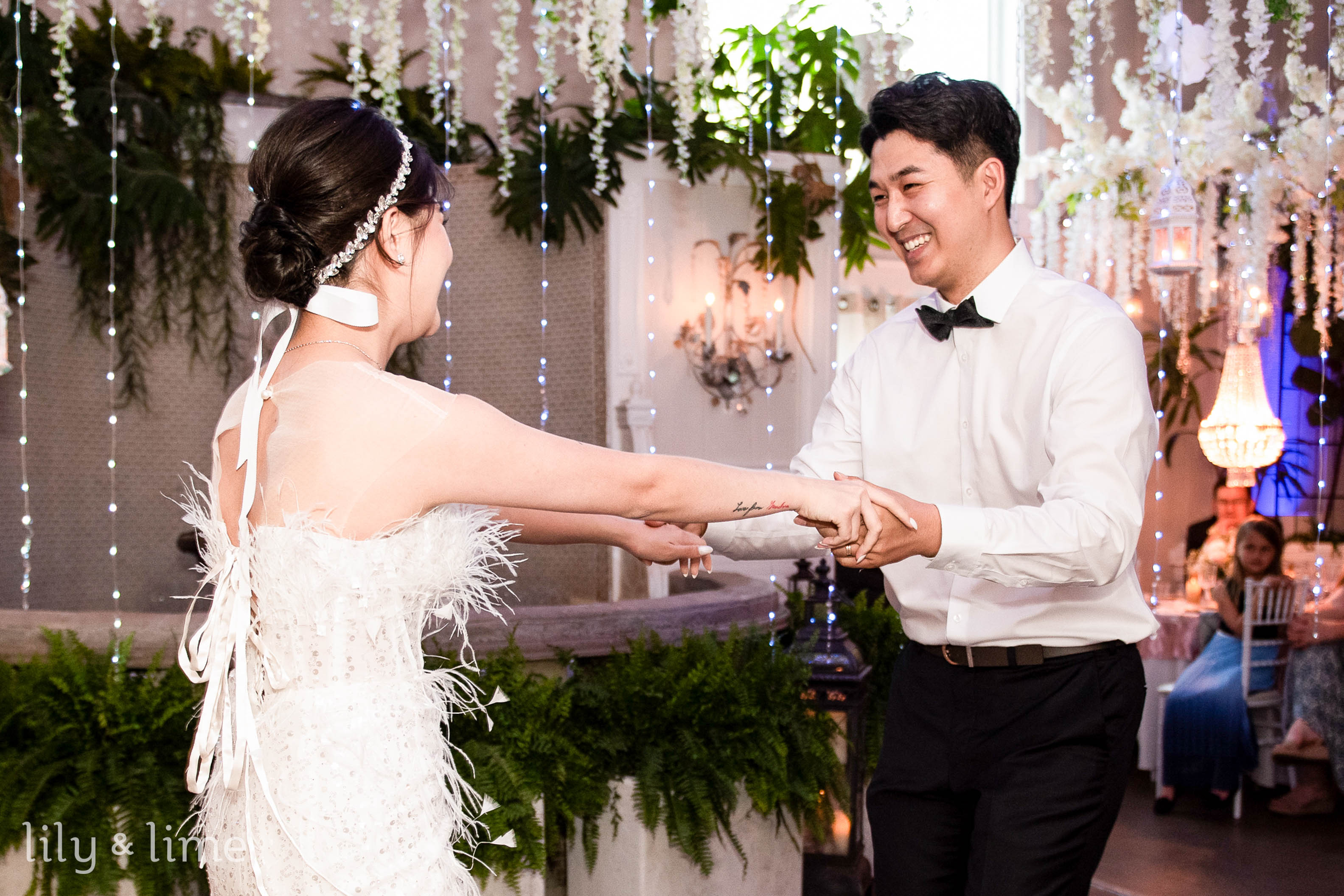 Wedding photo booth props invite guests to create their own enchanting memories. Think delicate fairy wings, floral crowns, vintage books, and whimsical masks. It’s a playful addition that encourages everyone to engage with the theme while capturing moments of joy and laughter. Plus, it’s a fantastic way for guests to take a piece of the magical evening home with them.