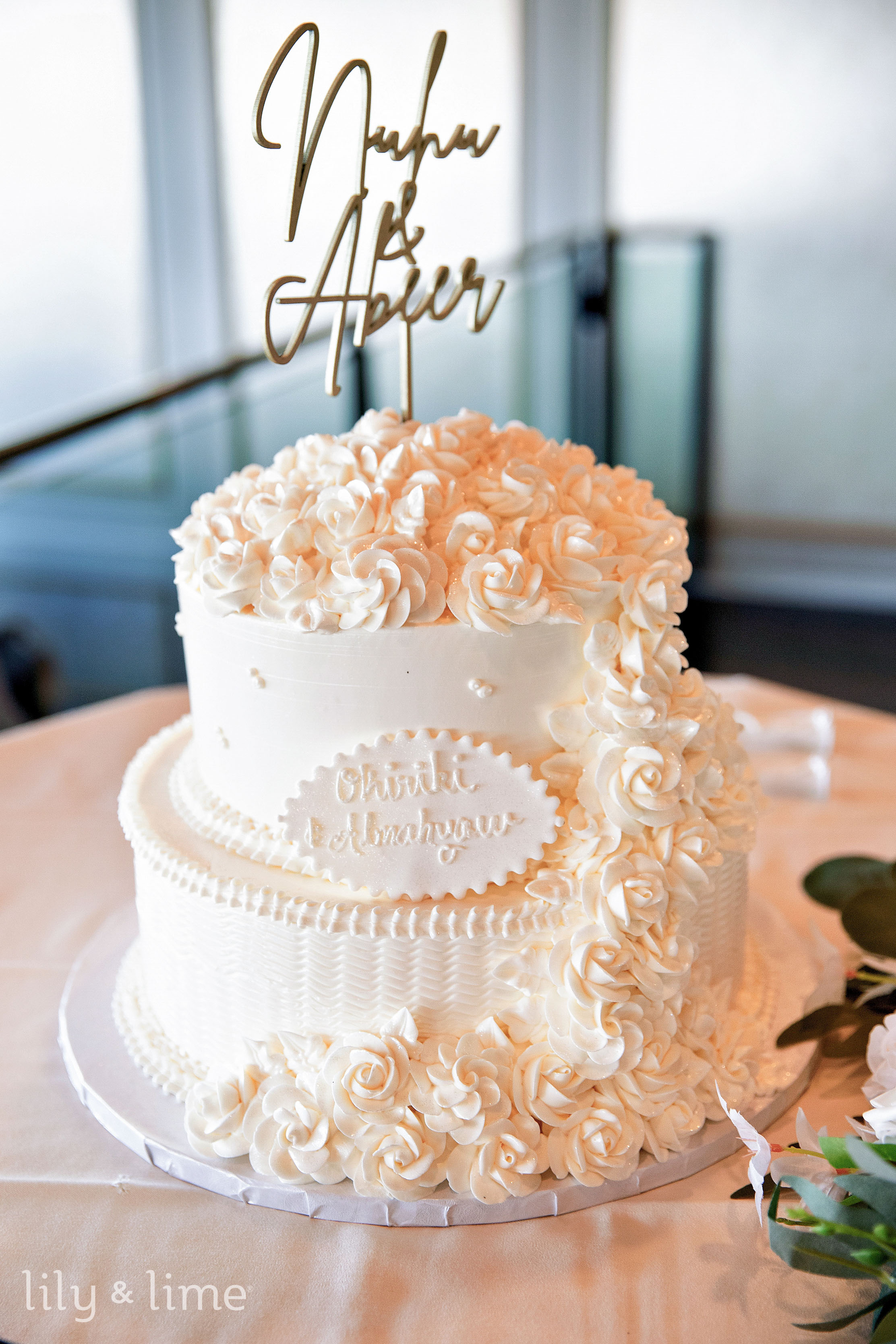 A special mention goes to their beautiful buttercream wedding cake, elegantly decorated with rose details and topped with a custom cake topper featuring the couple’s names. This delightful centerpiece reflected the couple’s taste and added a sweet end to the remarkable day.