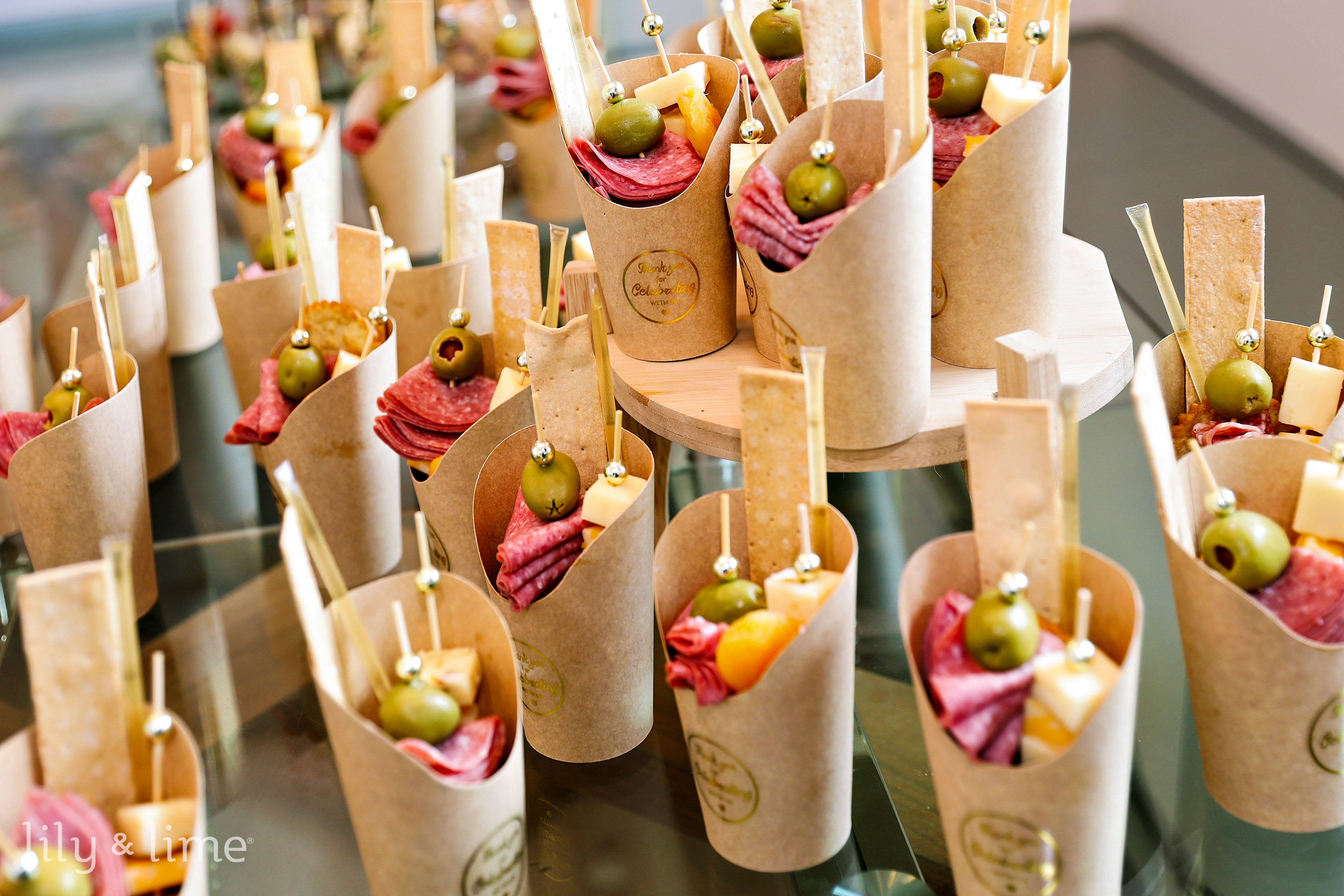 Charcuterie boards: Craft Italian-style charcuterie boards that are as chic as they are flavorful for your Positano-themed bridal shower. Fill them with savory staples like prosciutto, salami, marinated mozzarella, and briny olives. Add vibrant grilled veggies and fruity fig jams for a touch of sweetness. These boards channel authentic Italian aperitivo culture, offering guests a filling, elegant snacking experience.