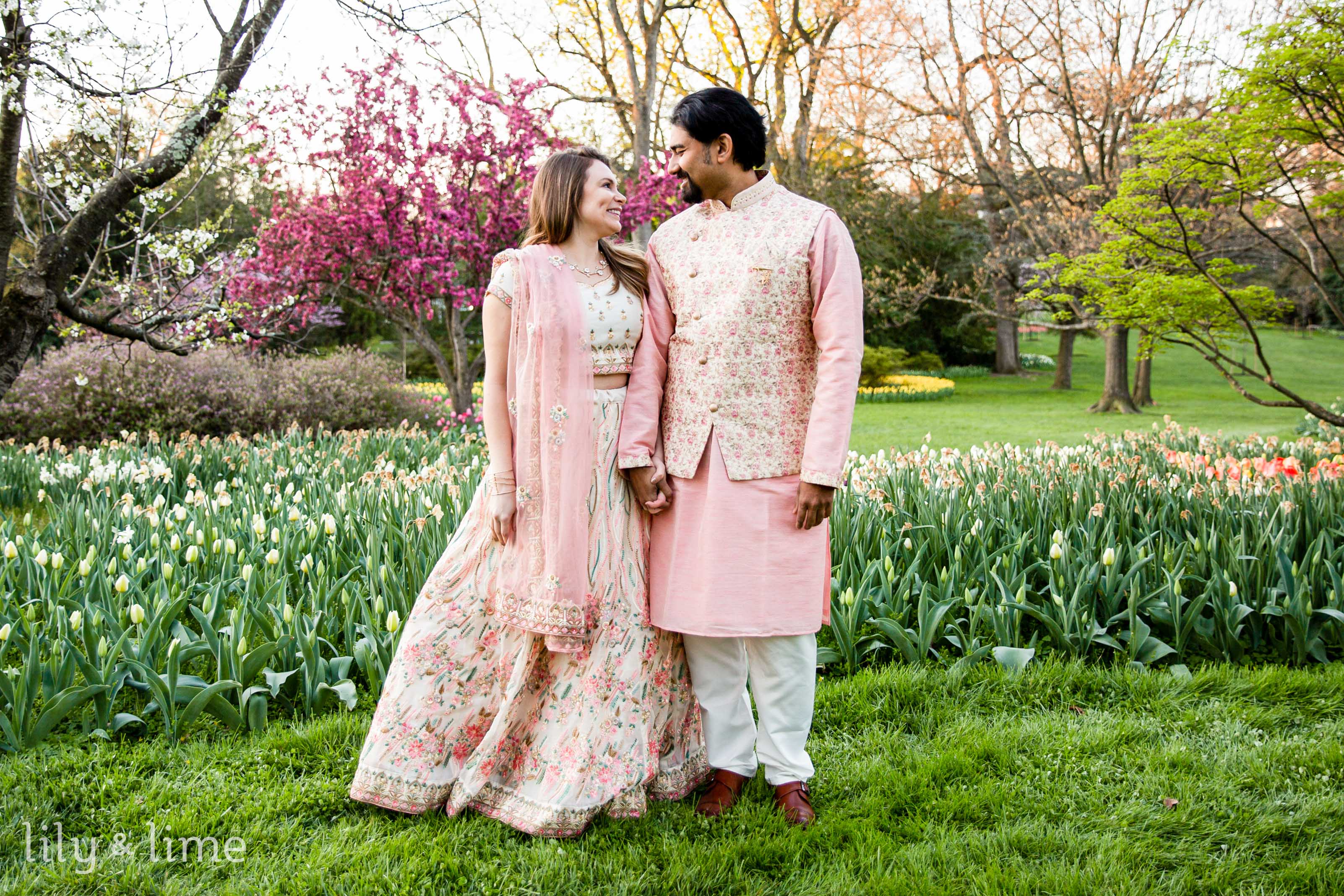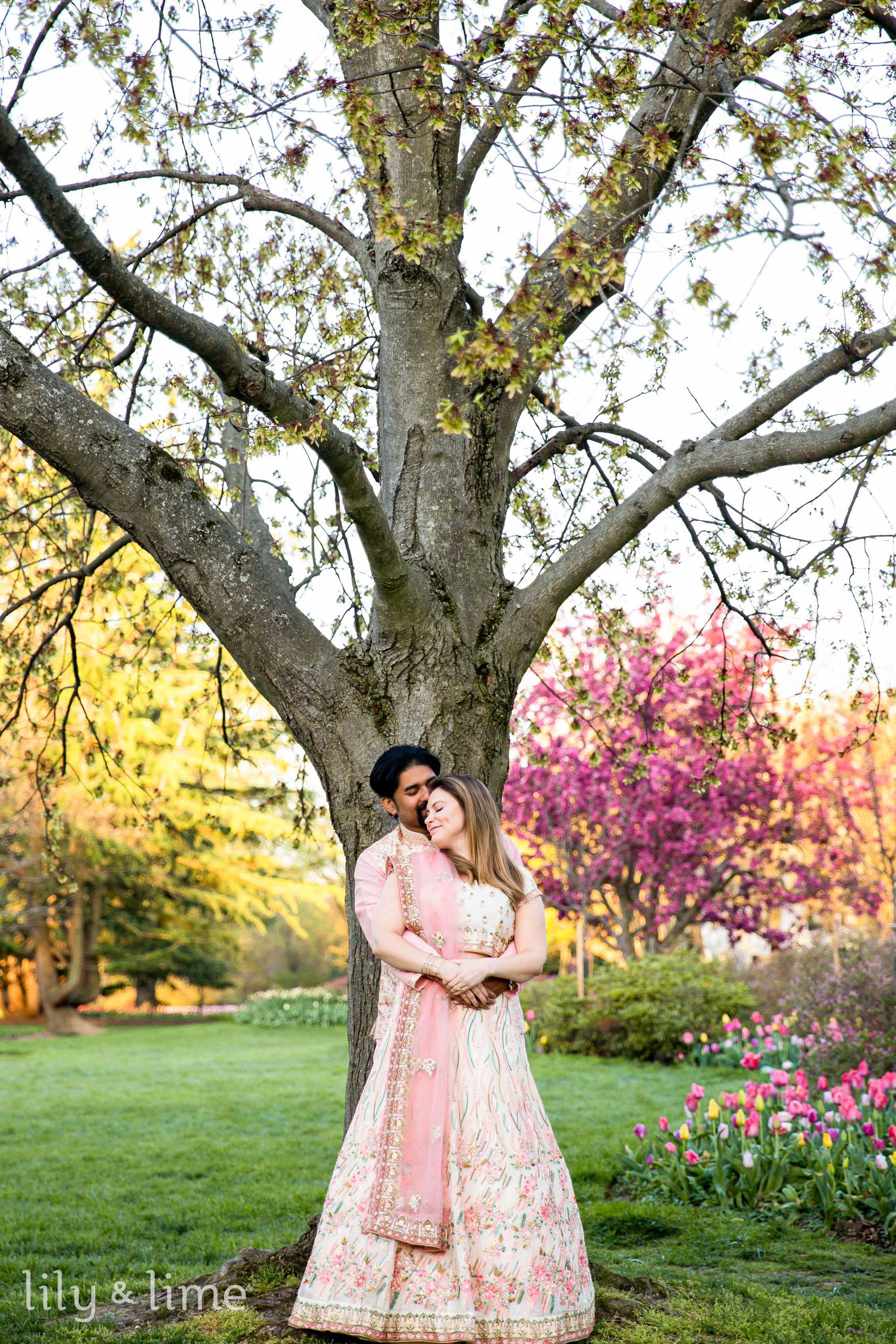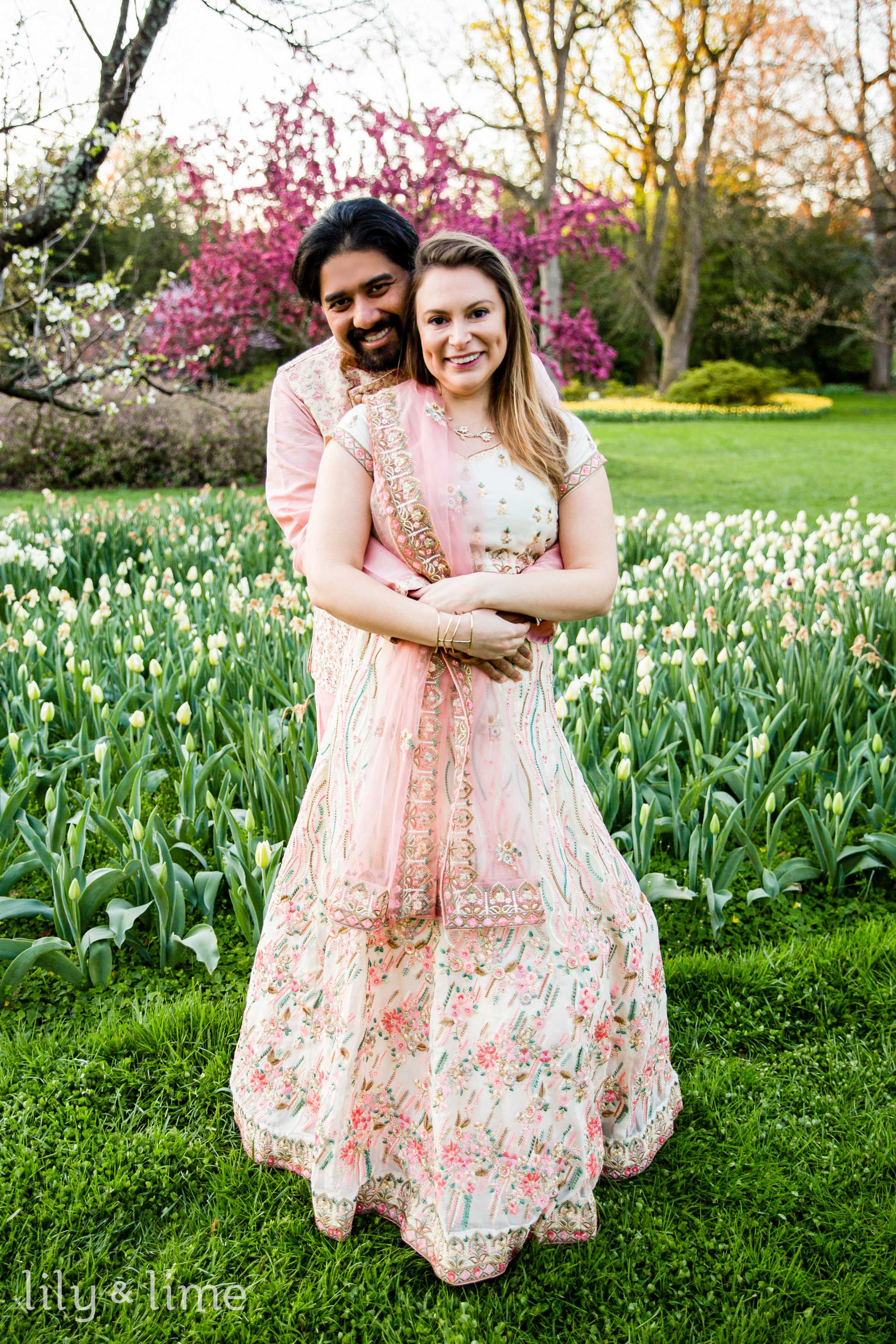 When we first met Abhik and Sally, we were instantly smitten by their vibrant energy and the profound connection they shared. It was clear from the get-go that they were not just planning an engagement session; they were crafting a moment that would forever encapsulate the essence of their love story. Choosing to have their outdoor engagement session around a floral garden in D.C. wasn't just about the breathtaking backdrop it provided. For Abhik and Sally, it was a reflection of their blooming relationship, full of color, life, and the promise of new beginnings. They saw themselves in the delicate balance of the garden - its strength and fragility, its seasonal changes mirroring the growth and evolution of their own bond.