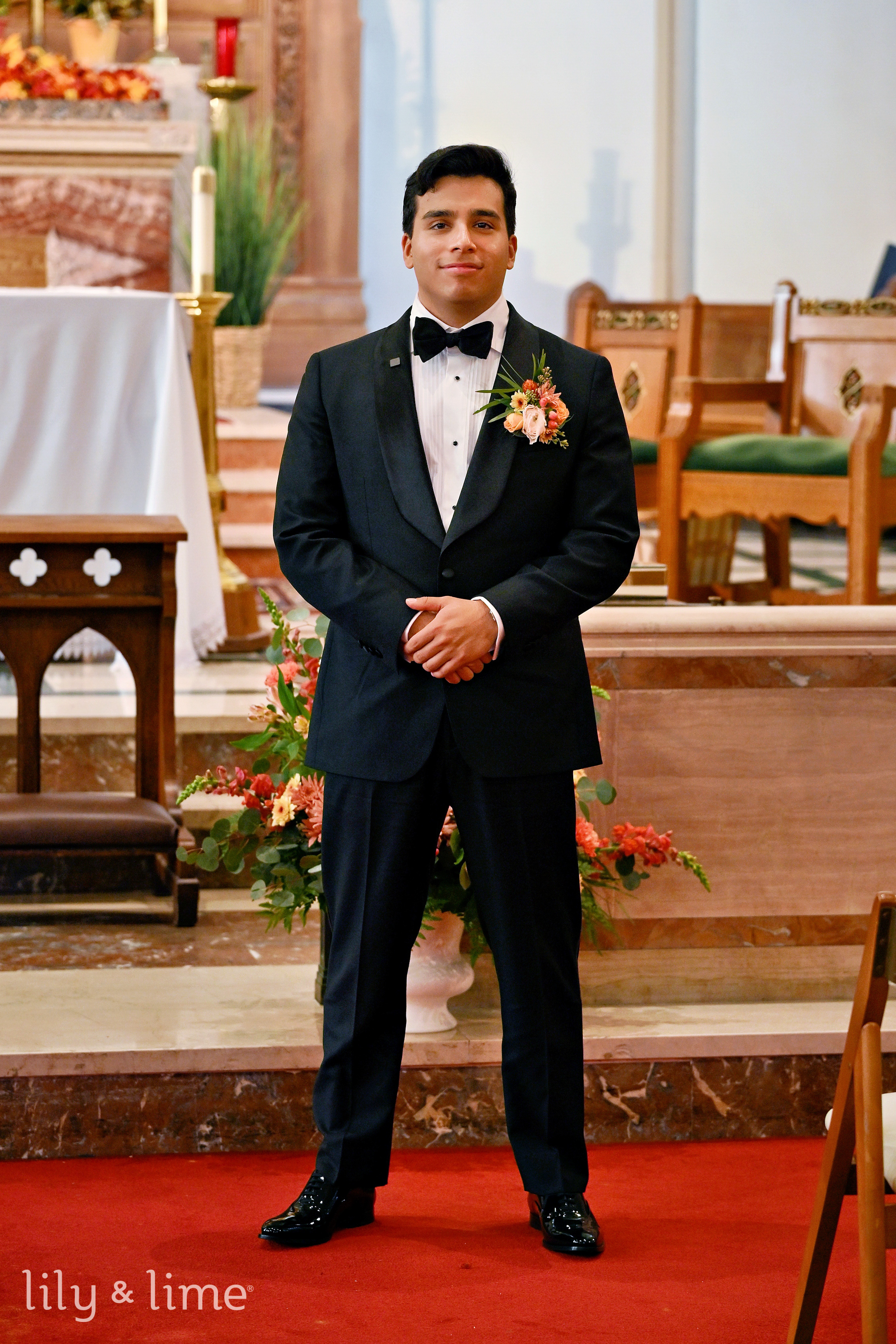 Alyson and Carlos chose the profound architectural beauty of St. Columbkille's Parish in Brighton for their special day. This venue choice speaks to a love for timeless elegance and spiritual grandeur. The church's magnificent stone façade and soaring bell tower create a dramatic first impression, hinting at the sanctity held within. Inside, the ambiance is one of reverent beauty, with sunlight filtering through stunning stained-glass windows, casting jewel-toned light across the polished wooden pews. The high, vaulted ceilings and intricate woodwork draw the eye upward, fostering a sense of awe and intimacy perfect for exchanging vows. Every detail, from the classic organ pipes to the ornate altar, contributes to a deeply romantic and solemn atmosphere.