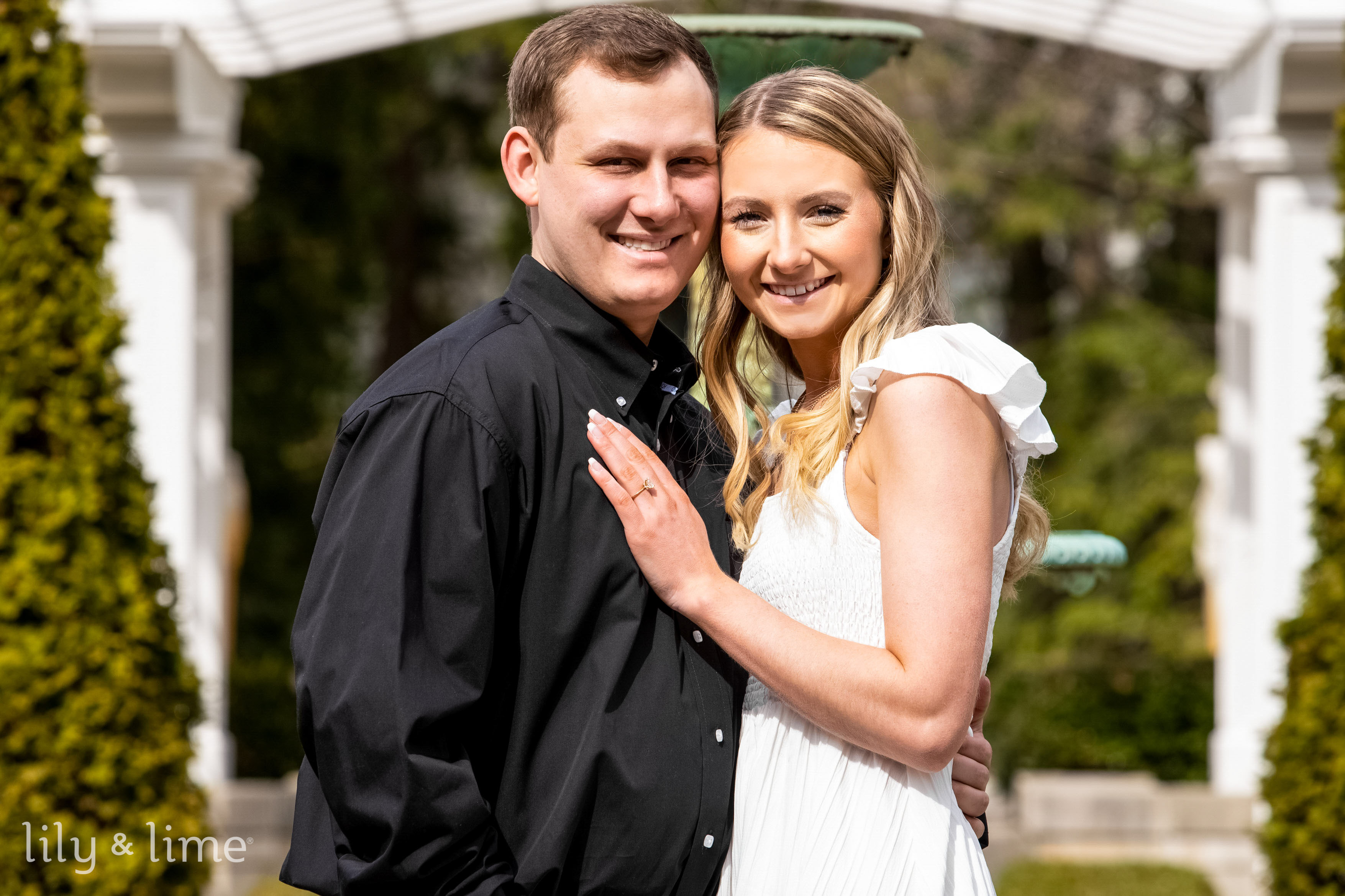 Finishing the session, the couple walked hand-in-hand through the lush pathways, framed by towering trees and seasonal blooms. Their love and joy were palpable, perfectly captured in each frame, reflecting the timeless beauty of their relationship and the enchanting setting of the Lilly House.