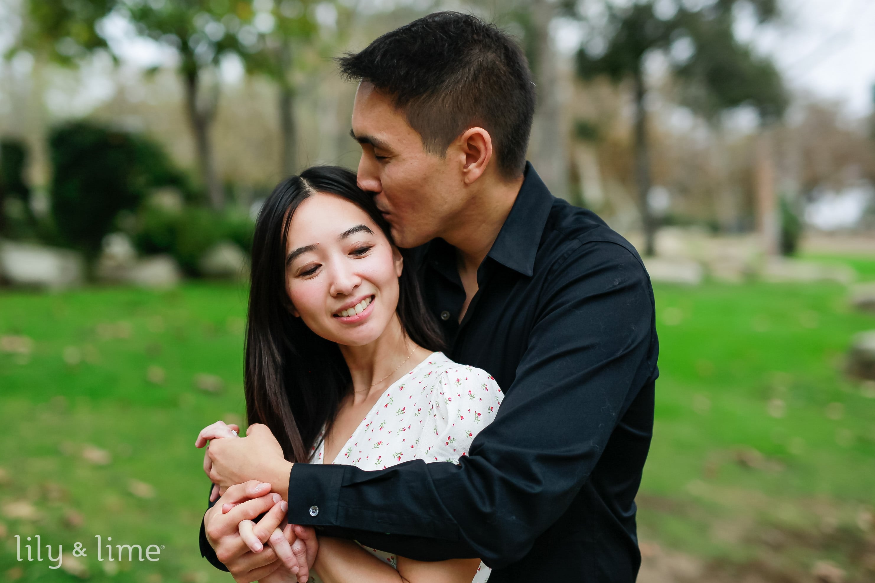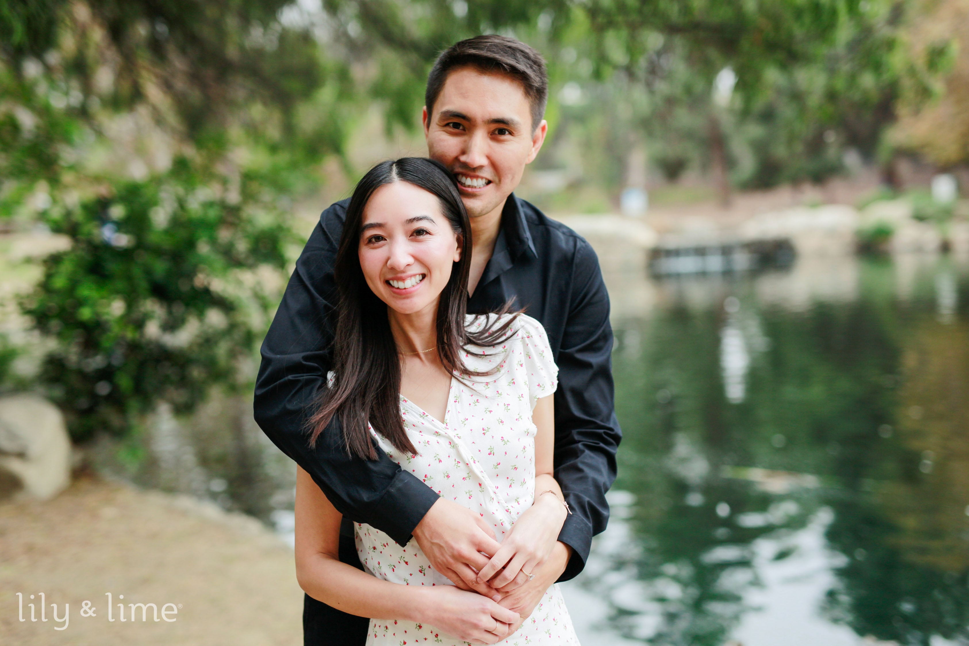 The beautiful Los Angeles park had a sprawling landscape that offered diverse settings, allowing Angela and Ryan to explore different areas for their Los Angeles engagement photography session. From the tranquility of lakeside moments to the charm of tree-lined pathways, each location within the park contributed to the visual narrative of their love story. The versatility of the gorgeous Los Angeles park provided a variety of captivating backdrops, enhancing the overall aesthetic of the engagement session.