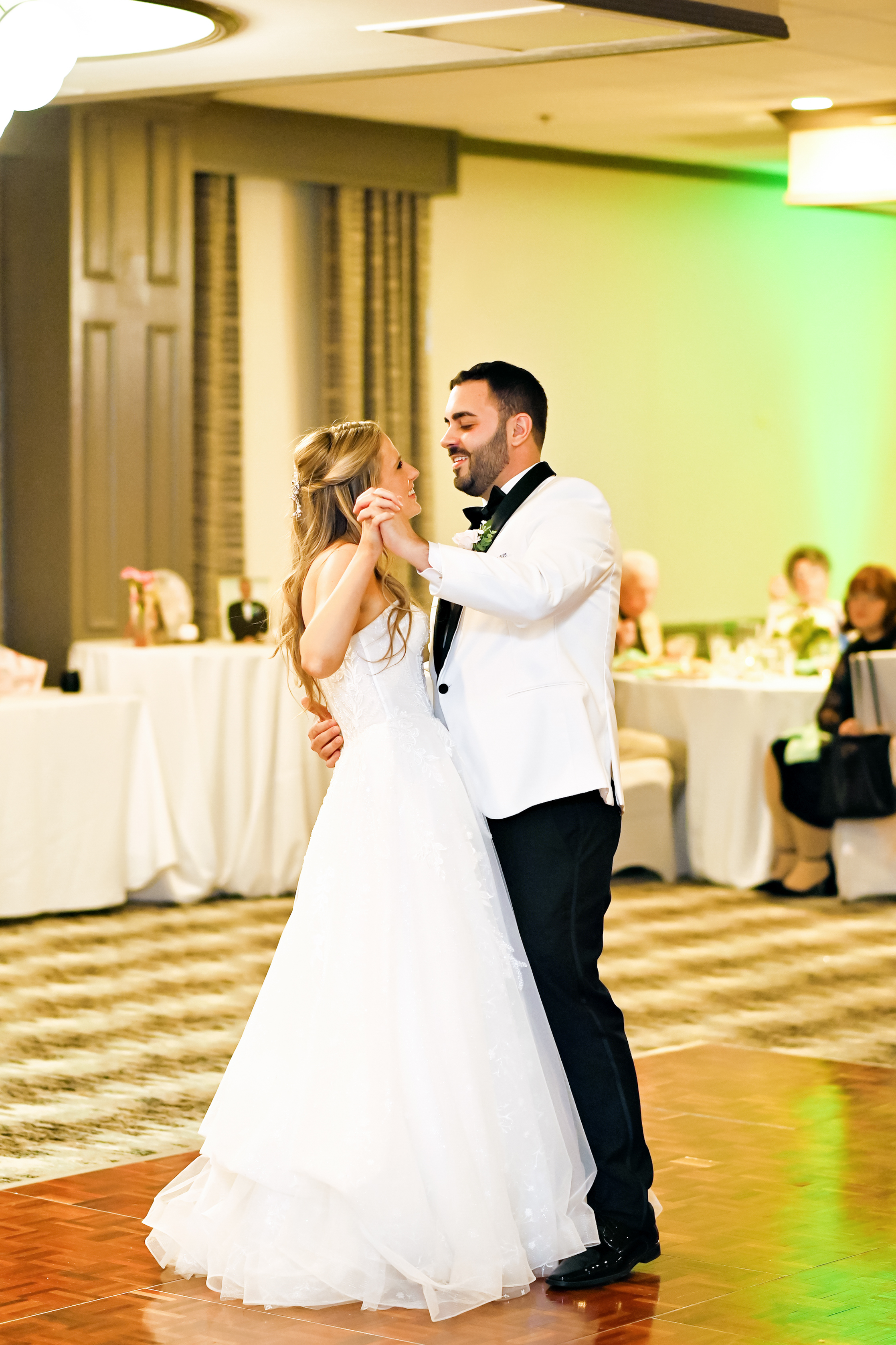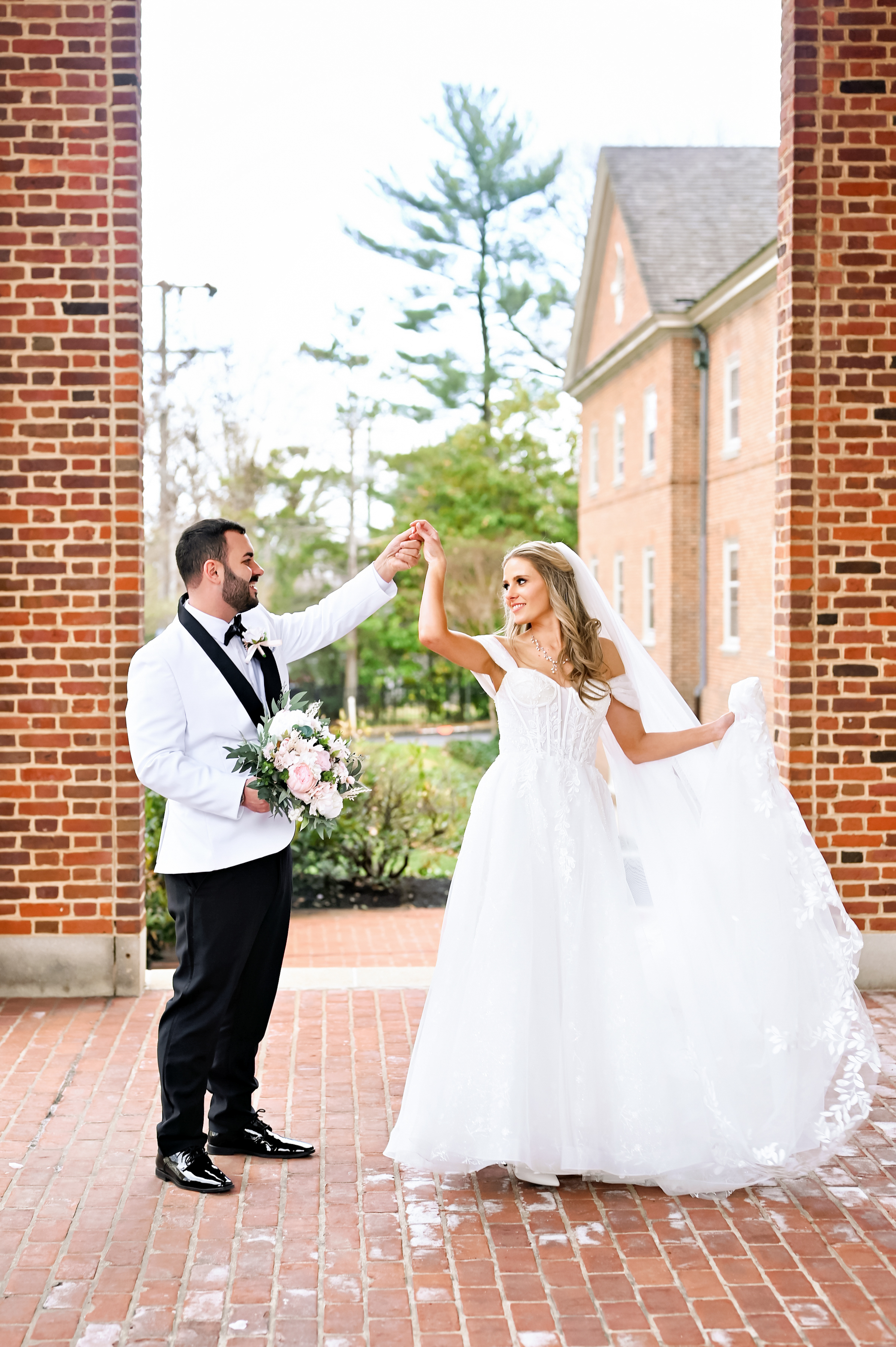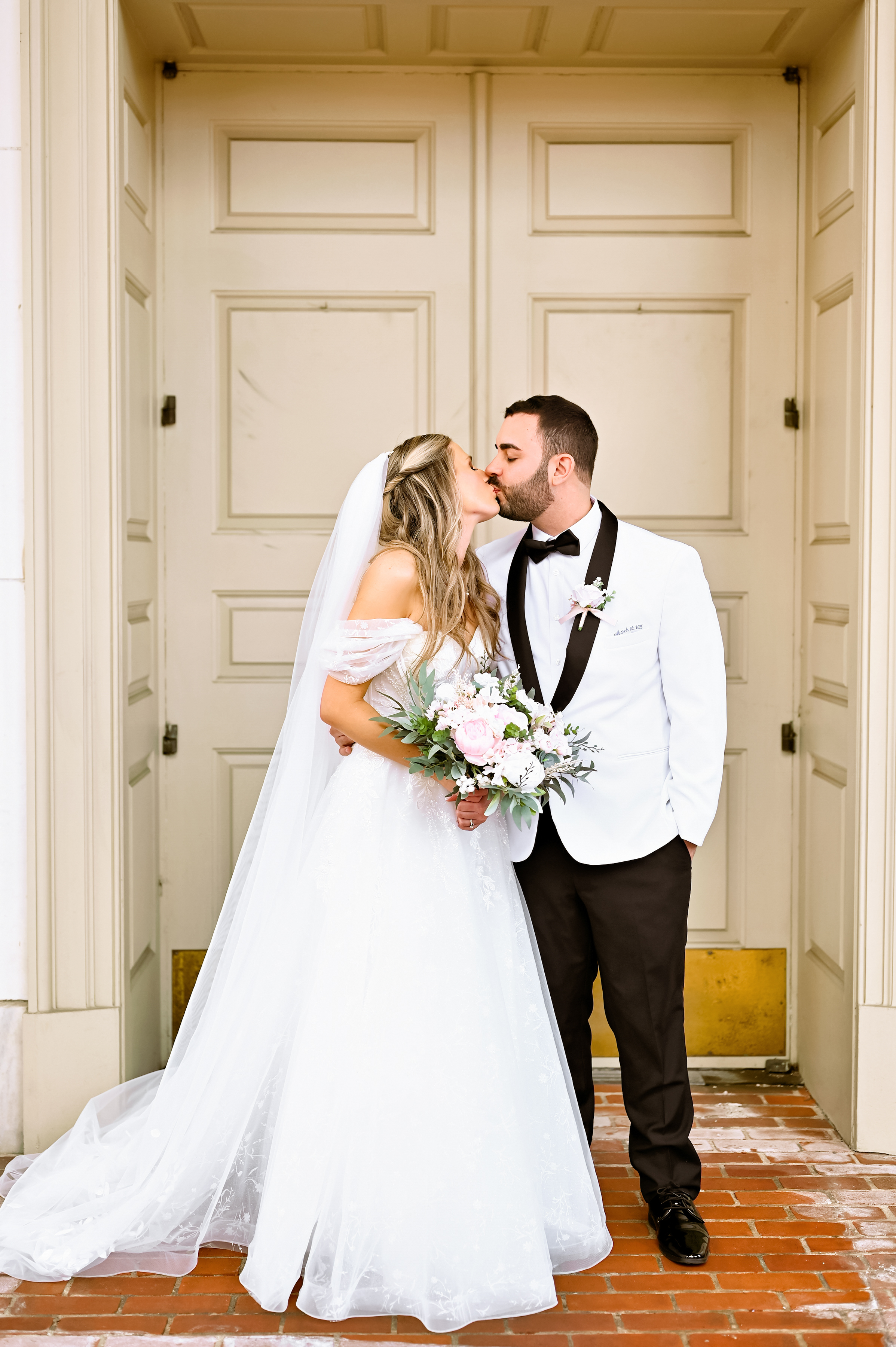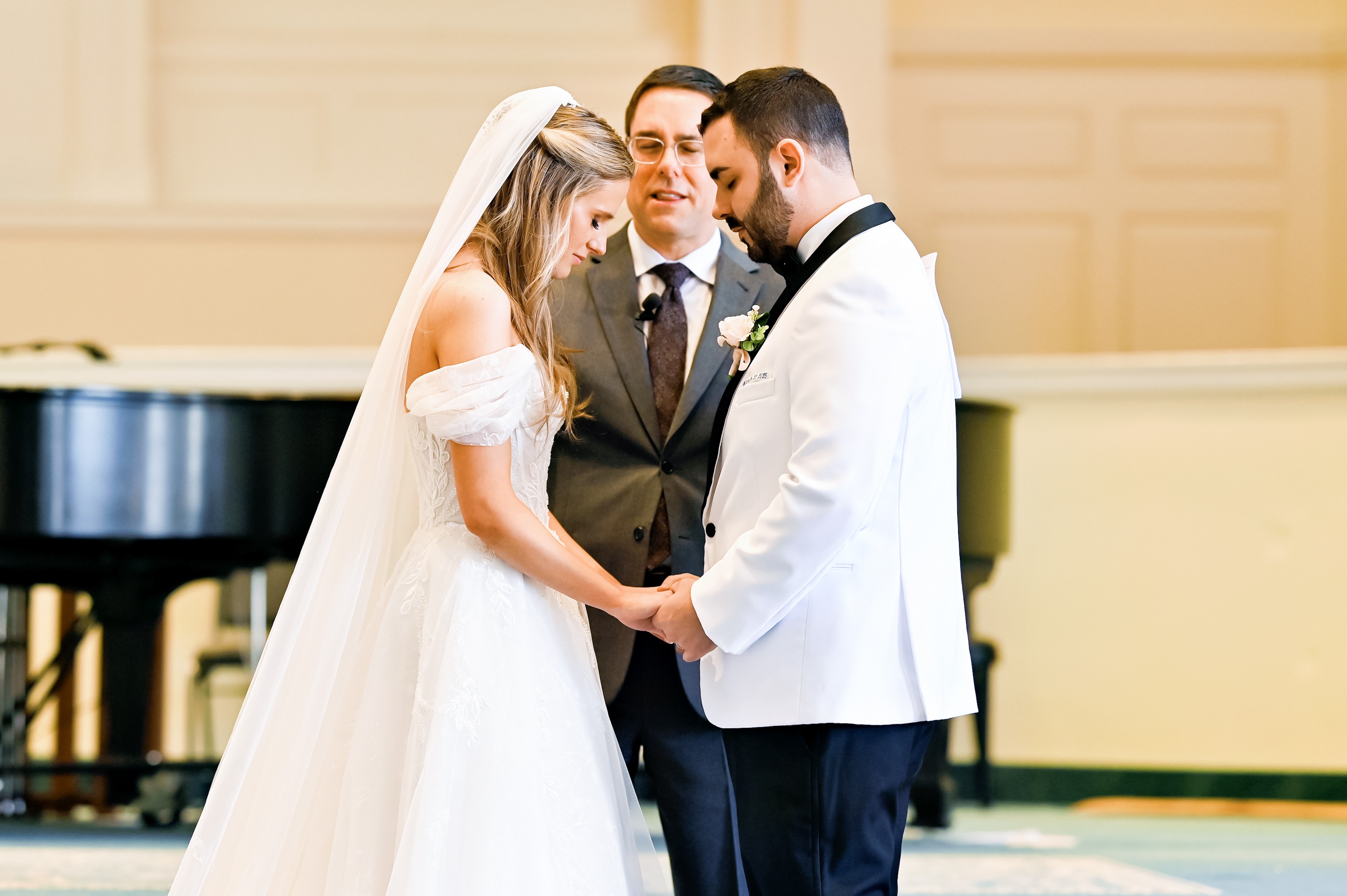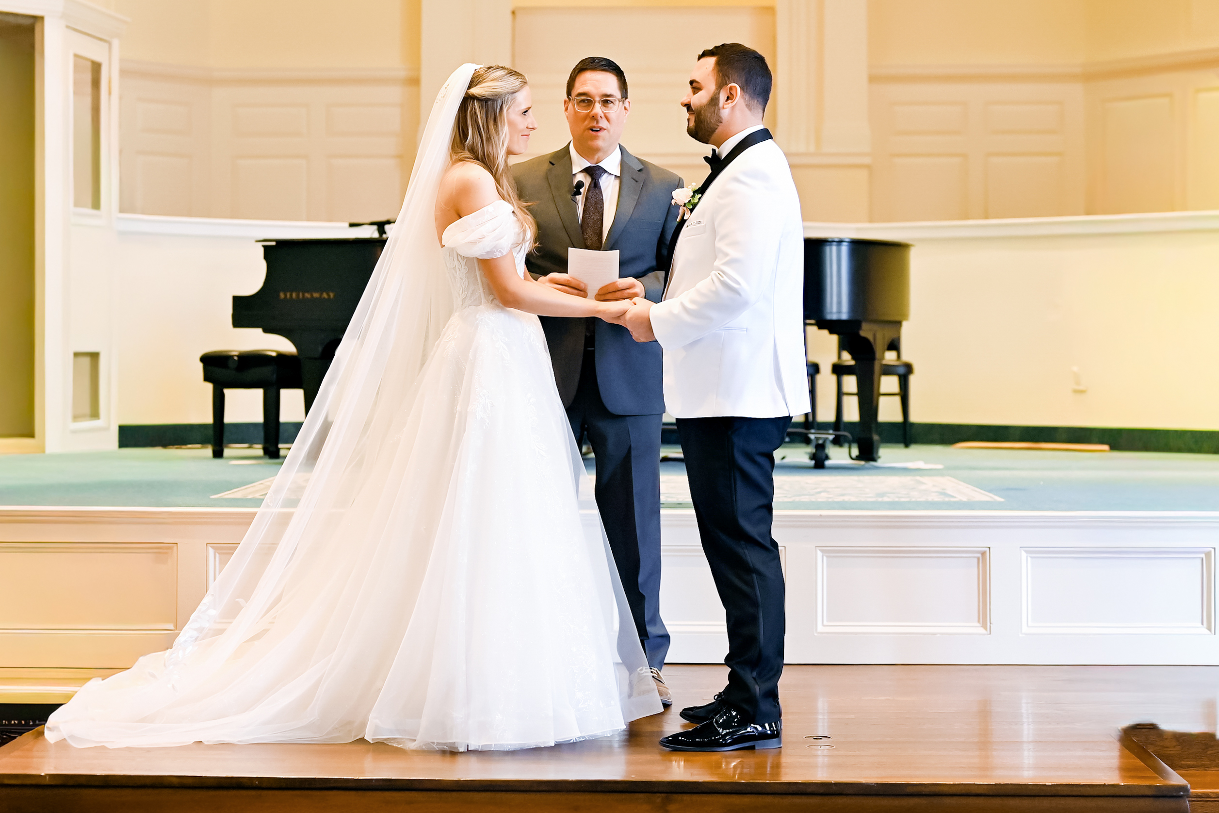 Ashley and Anthony selected Immanuel Church for their ceremony, a venue that stands as a testament to timeless architectural grace. The interior is a visual masterpiece, defined by soaring ceilings and intricate stonework that naturally draws the eye upward. Soft natural light filters through stained glass, casting a warm, ethereal glow across the space that enhances the romantic atmosphere without needing elaborate decoration. The classic wooden pews and detailed archways provide a sense of history and grandeur, creating a structured yet intimate setting. This venue offers a backdrop of quiet sophistication, where the focus remains purely on the beauty of the union and the stunning, historic surroundings that frame the couple perfectly.