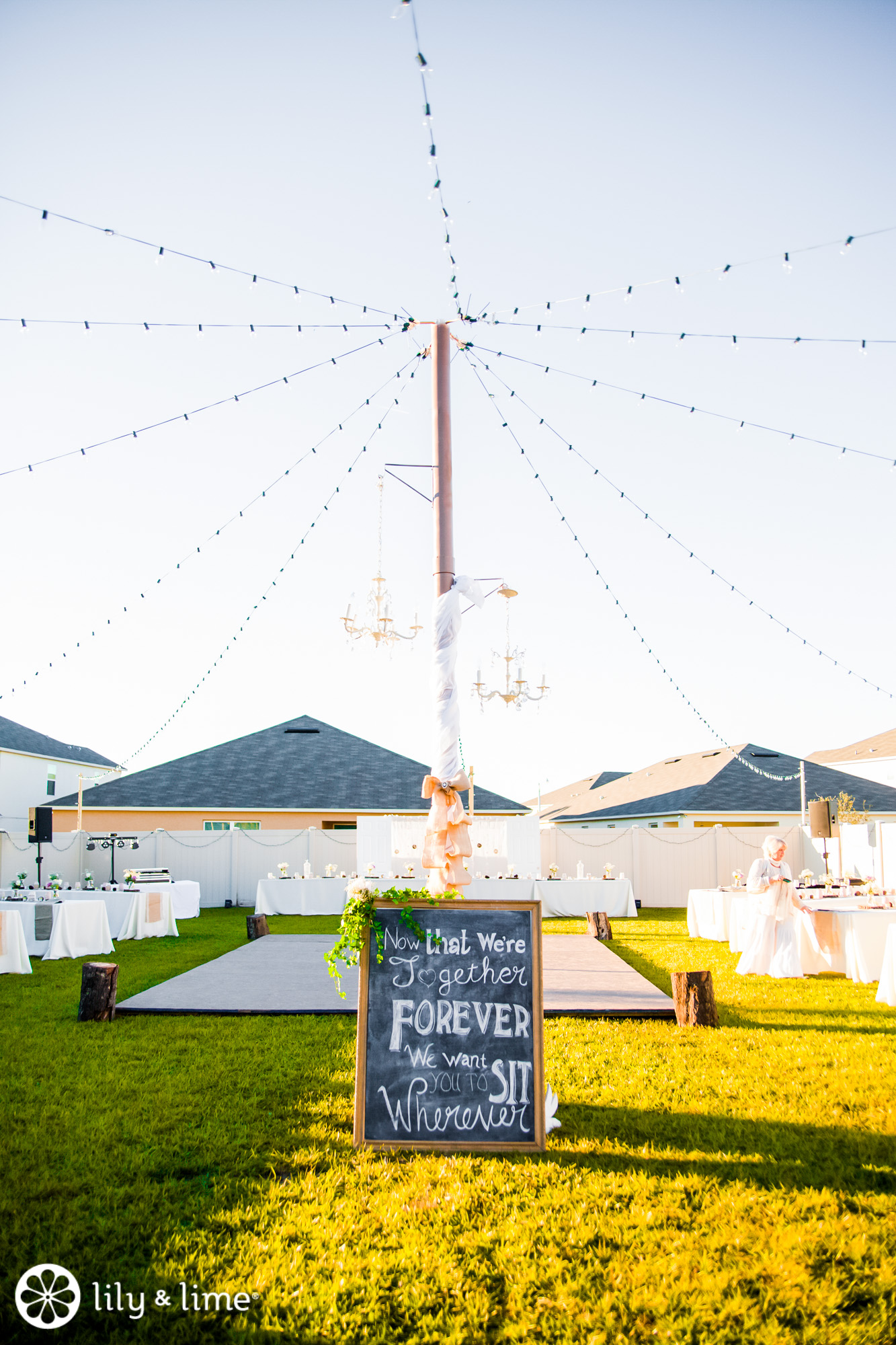 Lawn games at weddings can be a fun way to entertain your guests, and it fits with the venue! You can string up bistro lights and lanterns across the back porch or patio to set the mood. After dark, it’s all about candlelight. Light a bunch of candles! It’s so romantic and easy to execute.