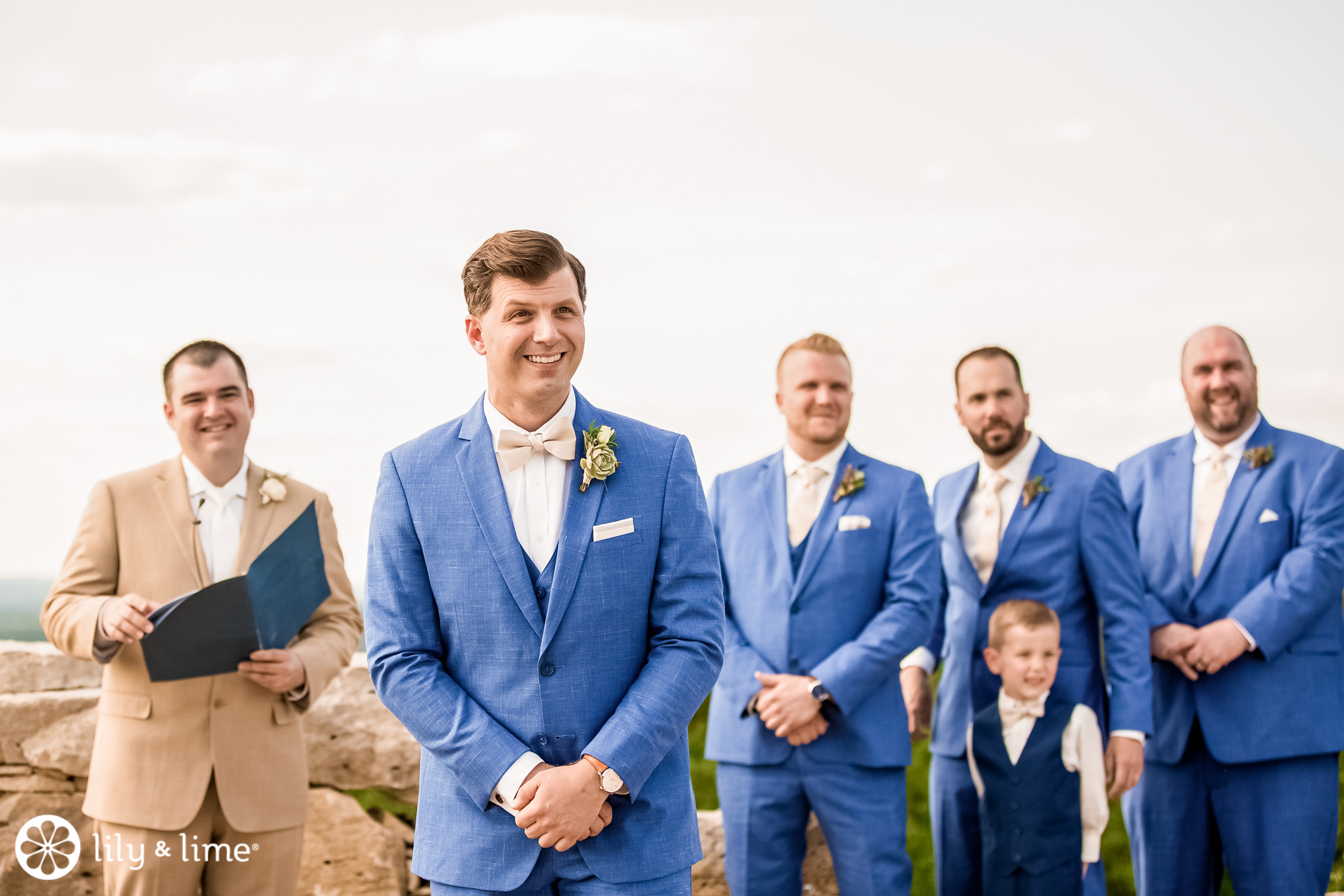 Pick a solid color for the groomsmen’s ties. Then the groom can don a patterned tie! It’s a fun way to add interest and let the groom stand out.