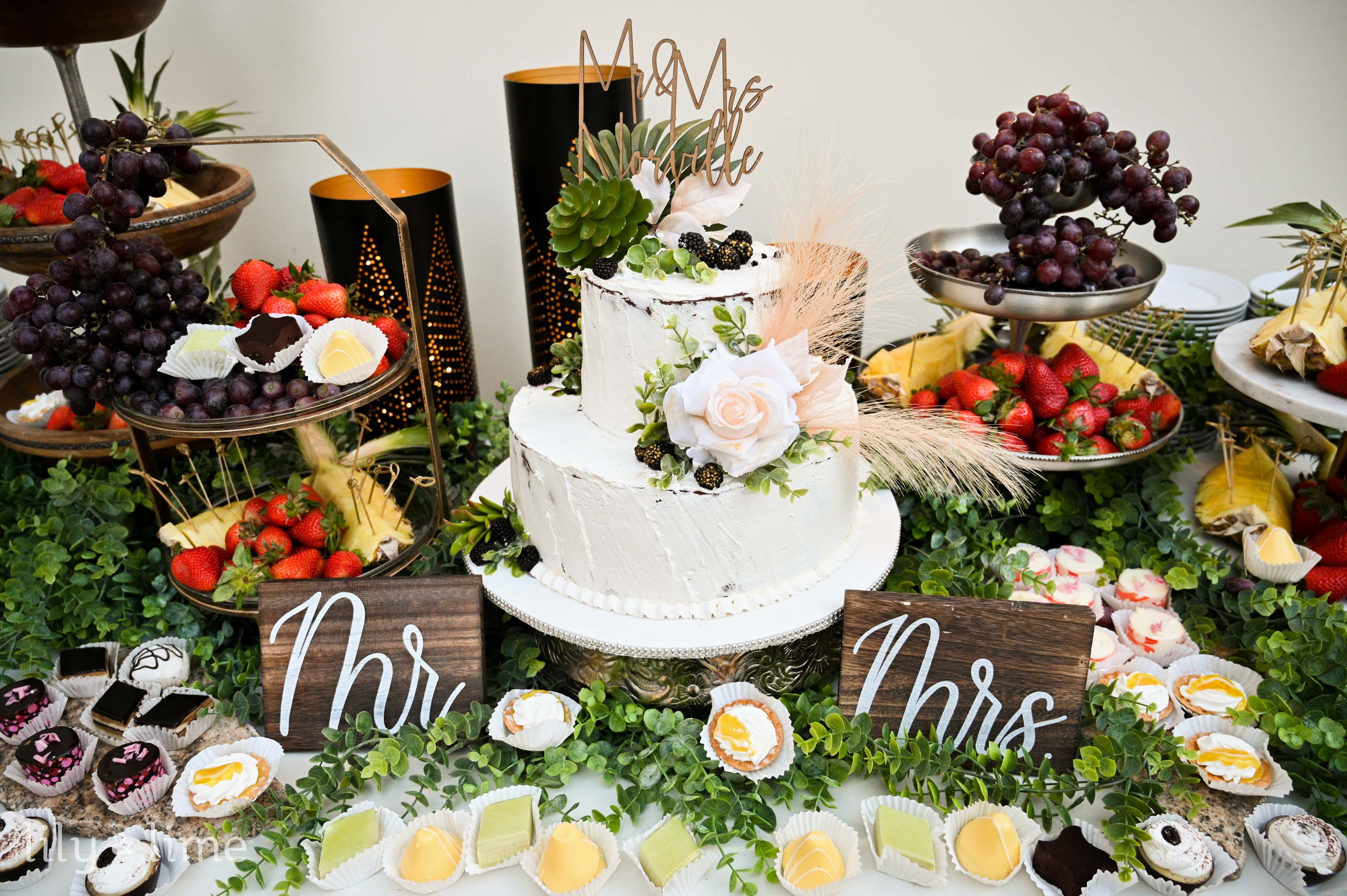 Preston dressed up for his special day with equal attention to detail. His choice of a beige neutral suit, paired with a crisp white shirt and a peach boutonniere, complemented by brown formal shoes, encapsulated classic sophistication. Together, they embodied the essence of a couple ready to embark on a lifelong journey. The wedding photographer excelled in capturing the essence of their day. From the beloved furry friend who joined the celebration to the personalized details on Preston’s cloth hanger, every element was documented with precision. The setup of the wedding favors table and the dessert table showcased meticulous planning, each detail executed flawlessly, embodying the couple's vision.