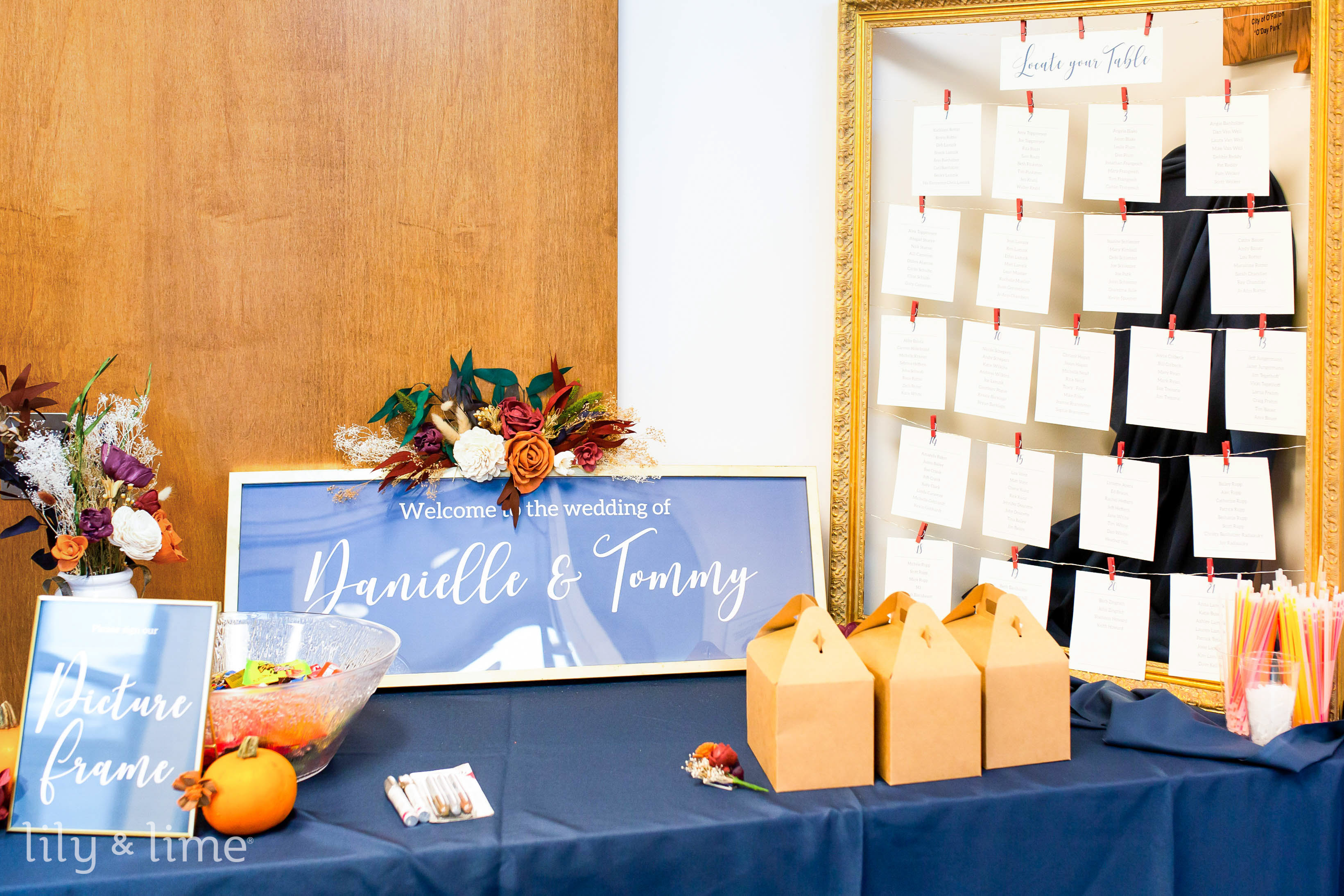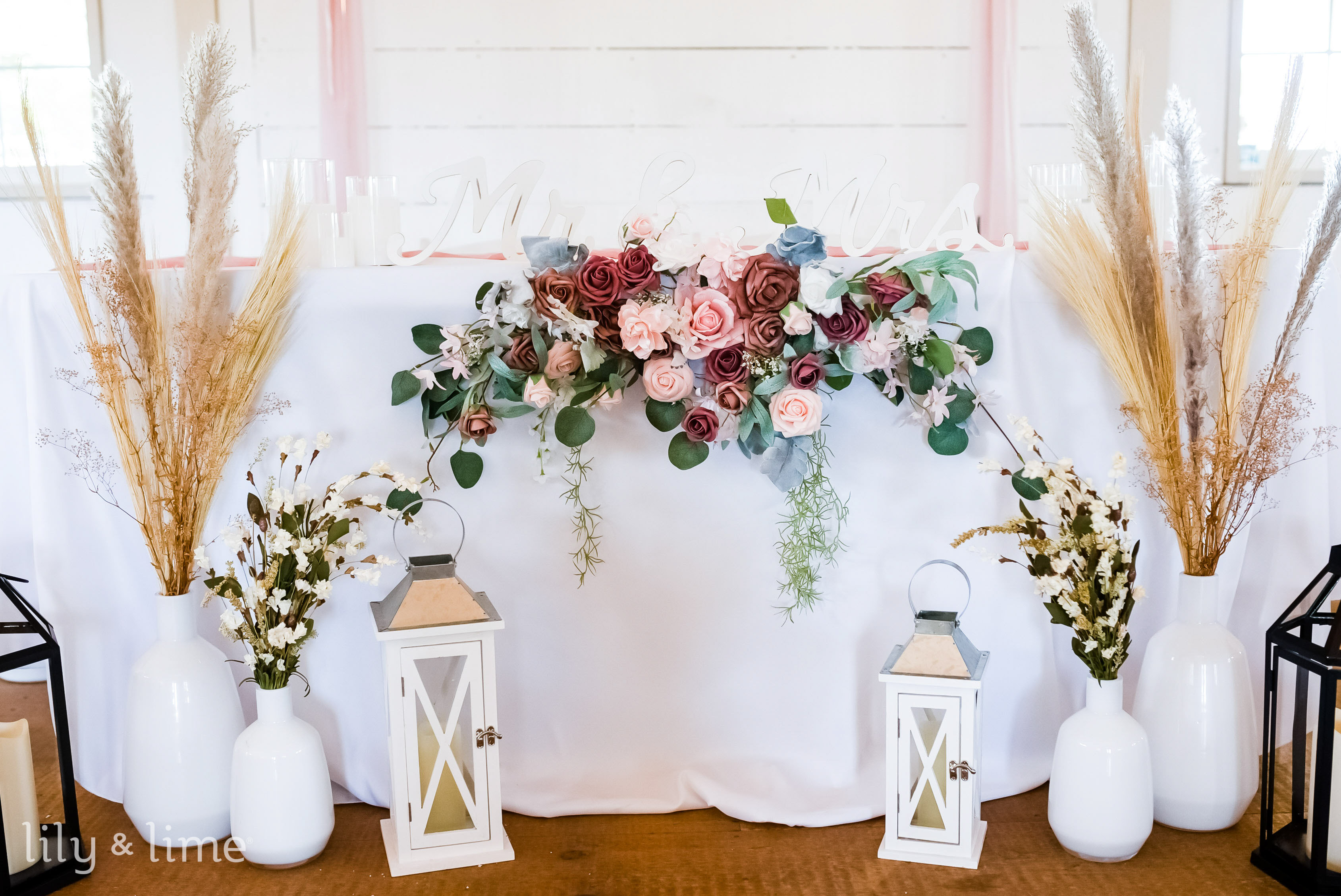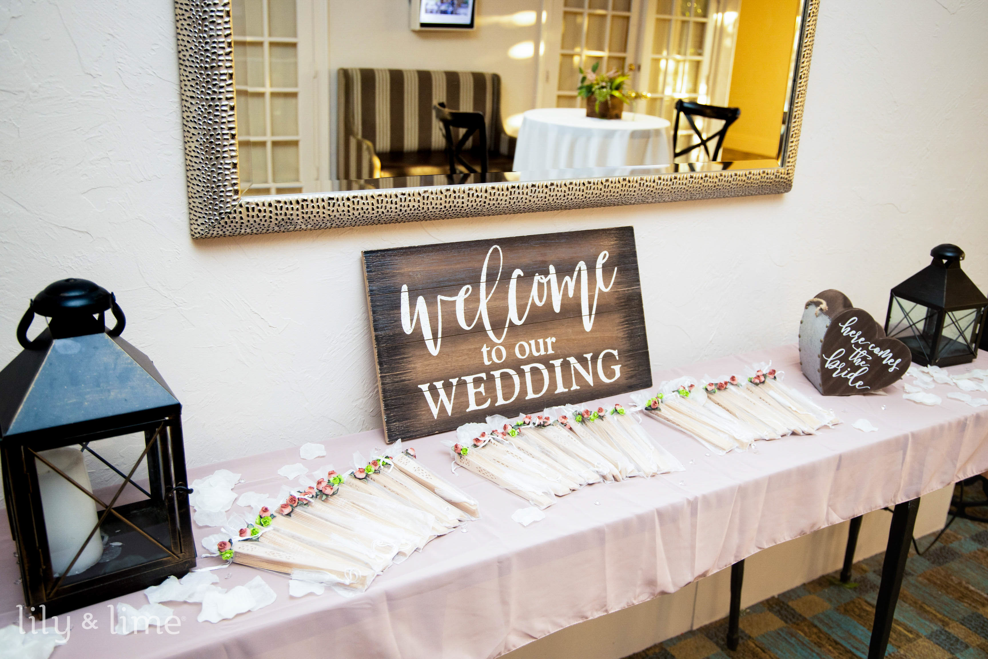 For a beautiful wedding display table decor, we recommend using beautiful flowers in pots and in vases. From massive pots to small and tiny ones, you can use any of these as per your wedding decor details. Depending on the season you’re throwing your wedding in, you can choose seasonal blooms, or switch to dried flowers. Dried flower decor is a great way to elevate just about any wedding idea. From filling mason jars with dried flowers to using them to create bunches of bouquets for decor, there is much to do. Although we love both of these ideas, there’s room for some more amazing ways to improve the look of your wedding favor displays and tables. Since we love minimal decor ideas, let’s talk about a few stems of blooms in small jars, vases, or even mason jars as decor. To make this idea perfect, you can have a bunting string with letters that spell out “wedding favors” in gold foil. Add greenery by the edges of it and make it perfect for your wedding day!