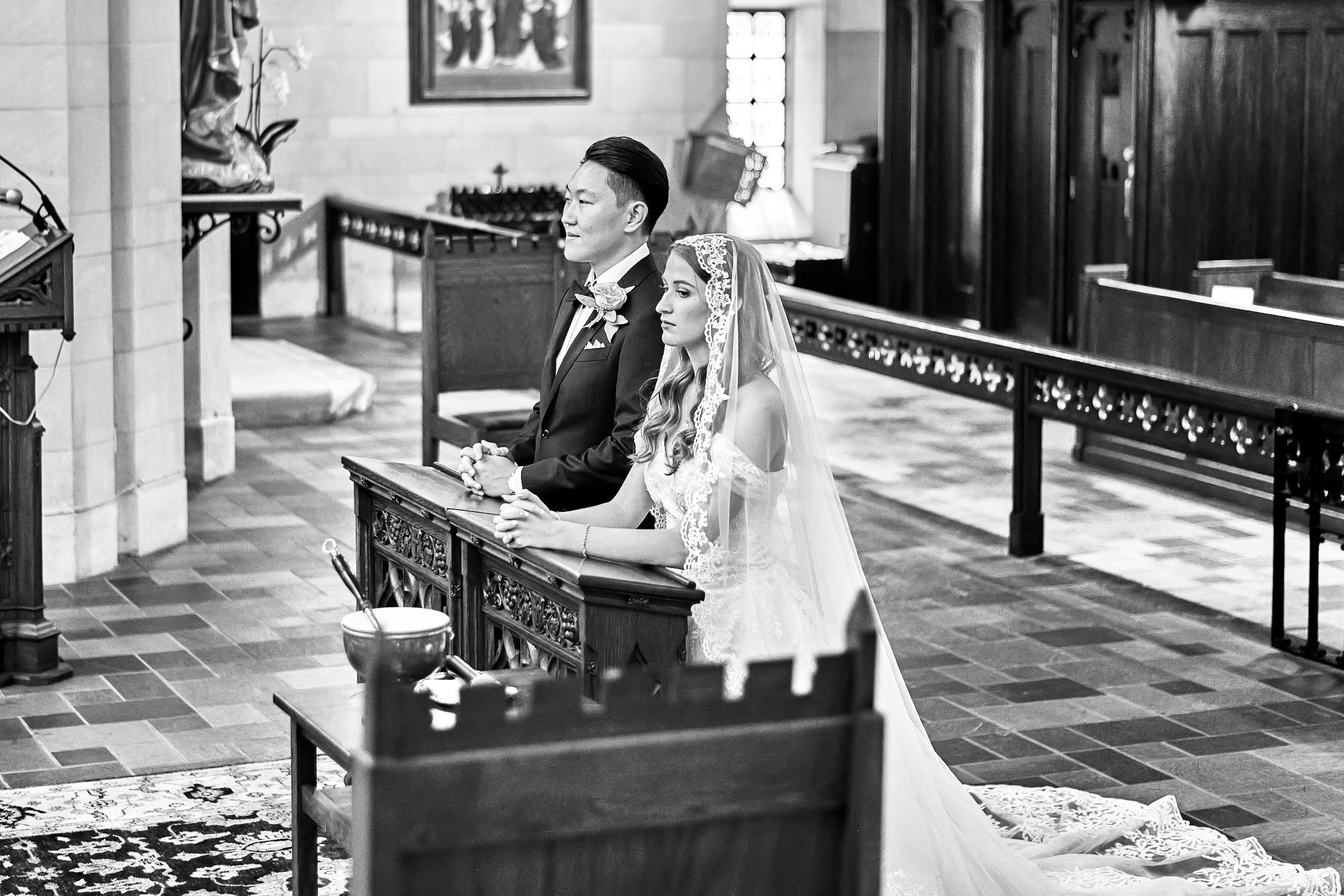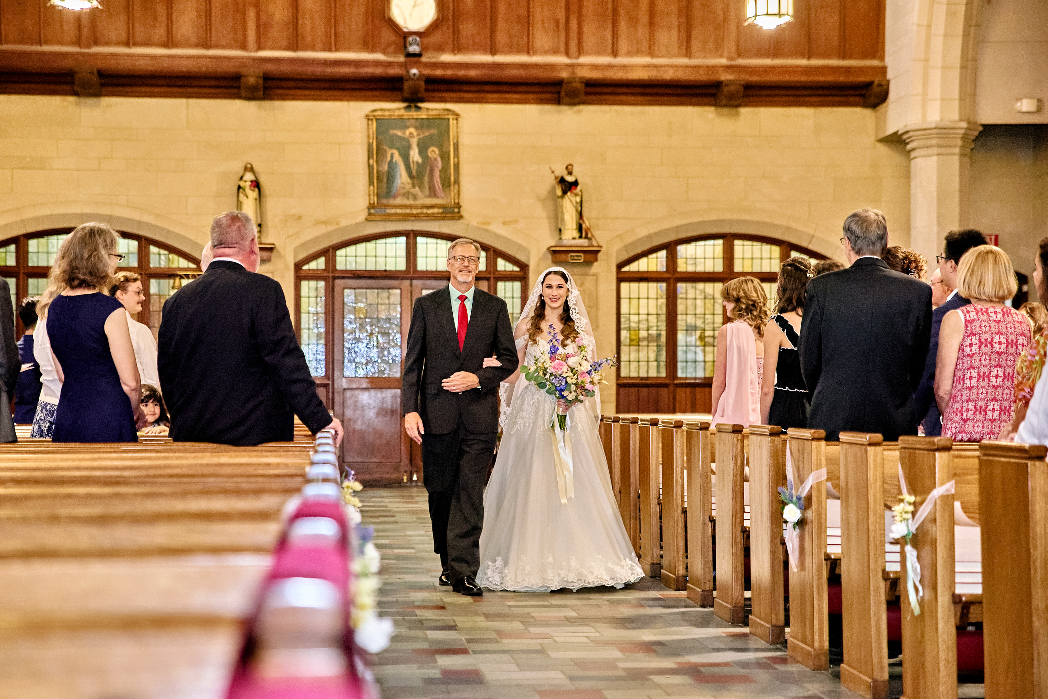 Andrea and Drew’s wedding began at the stunning Holy Rosary Church, a venue that radiates timeless elegance and architectural beauty. The intricate details of the church’s design, from its soaring ceilings to its graceful arches, created a breathtaking setting for their ceremony. The warm, ambient light streaming through the windows added a romantic glow, perfectly framing the couple as they exchanged vows. Every corner of the space offered a picturesque backdrop, making it an ideal location for capturing intimate and heartfelt moments.