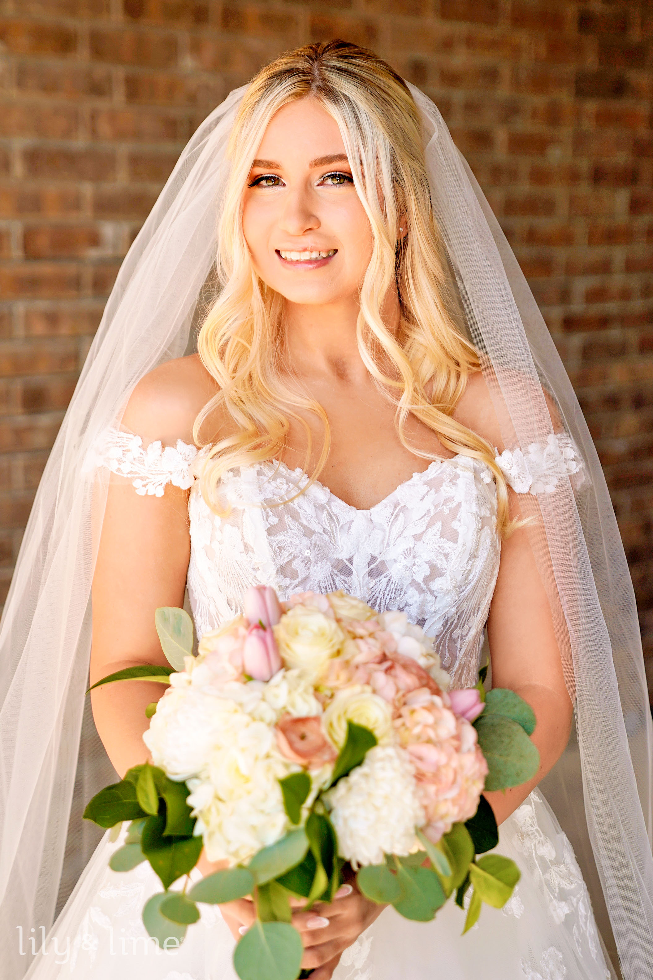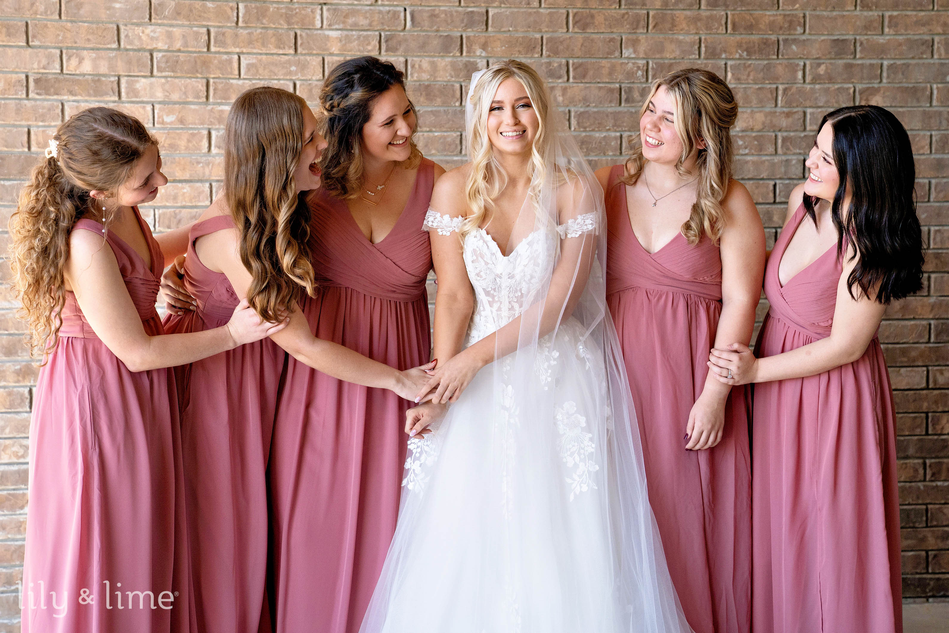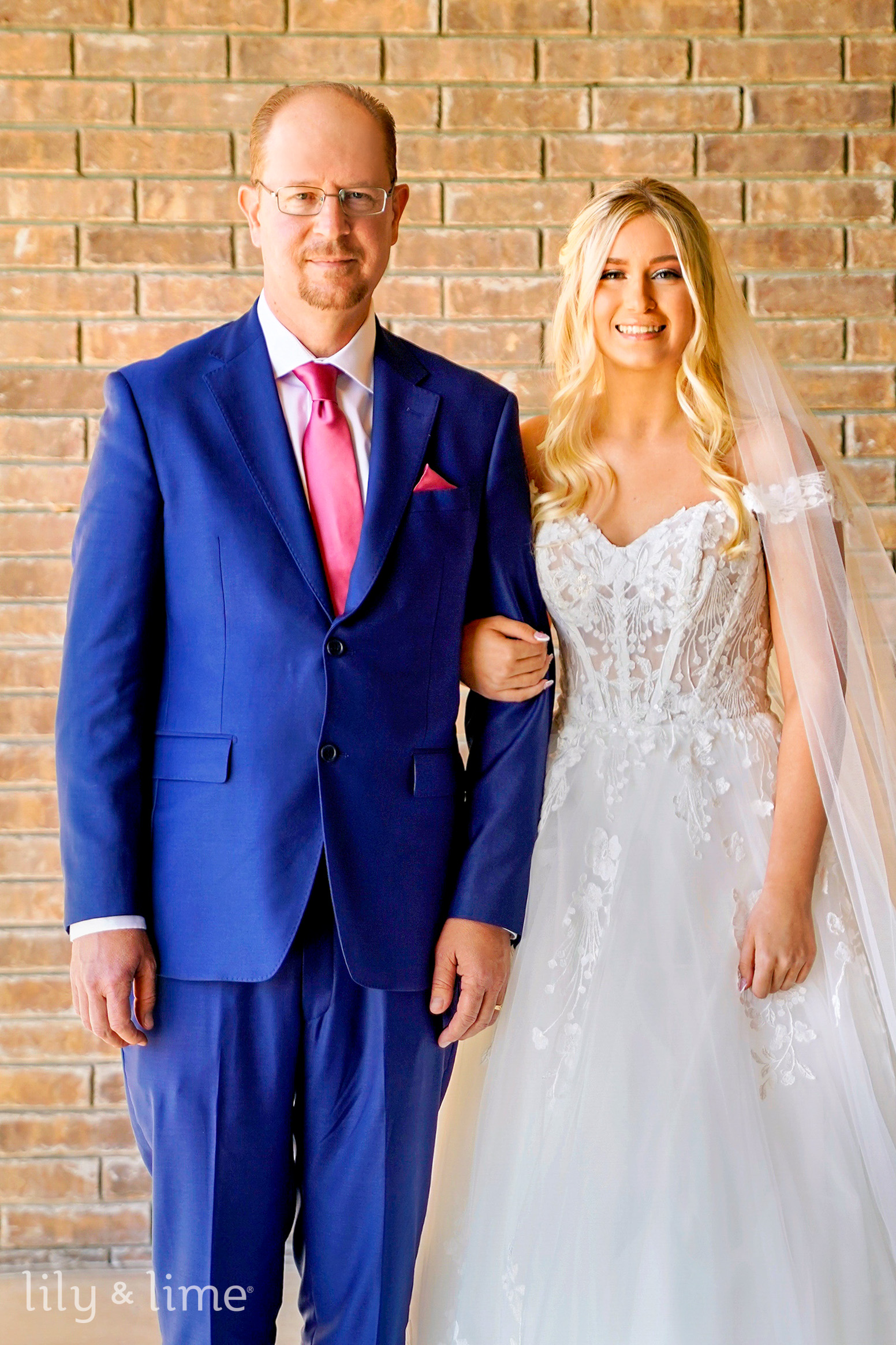 Cassidy was the picture of bridal elegance. She wore a stunning A-line wedding dress with a graceful off-the-shoulder neckline, embellished with intricate crystal appliques and delicate lace. Her look was perfected with an elegant hairstyle, a cascading veil, soft neutral makeup, and a beautiful soft-hued wedding bouquet. One of the most touching moments was the first look she shared with her dad, an emotional memory we were honored to capture. Christian was equally dapper in a classic two-piece black wedding suit, complemented by a crisp white shirt, stylish suspenders, a blue necktie, and a white boutonniere. The wedding party attire was perfectly coordinated; the bridesmaids looked lovely in pink dresses with white bouquets, while the groomsmen were sharp in stylish blue suits.