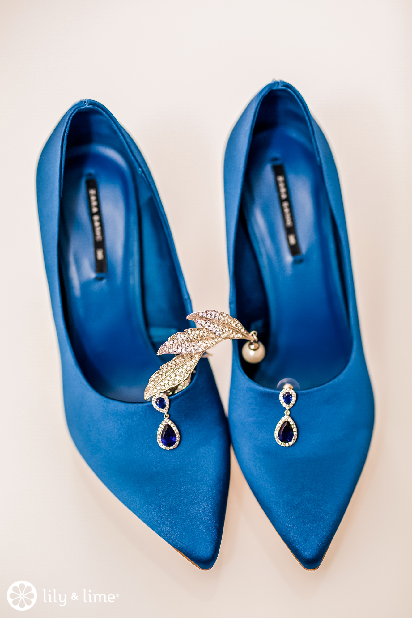 We are swooning over the possibilities of having gorgeous classic-blue wedding shoes with bridal dresses! The combination is to die for and sassy as heck.