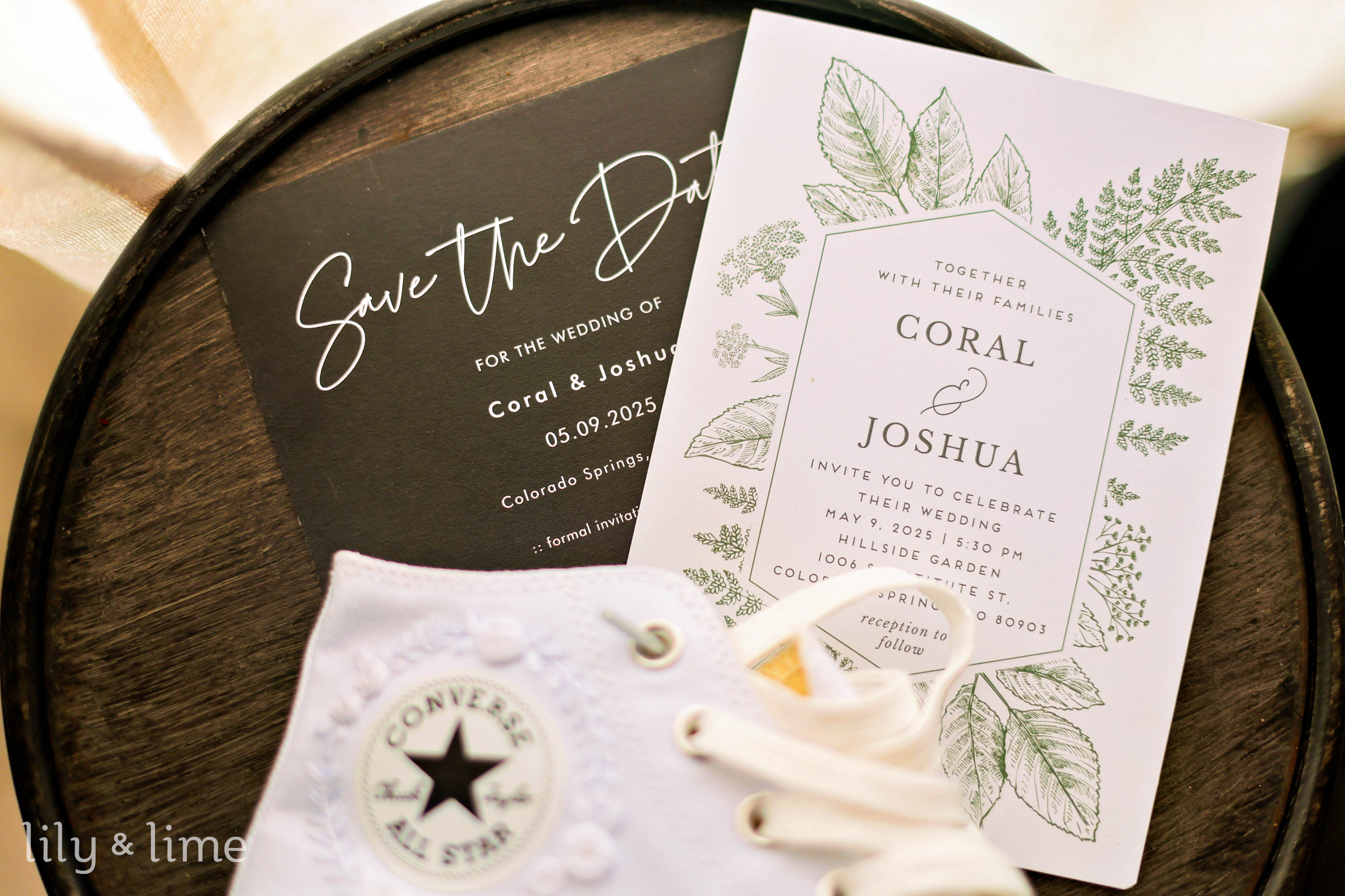 The day began to unfold further with breathtaking detail shots that included Coral’s canvas sneakers, her stunning bouquet, the dress, and the greenery-inspired invitations, each a testament to the couple’s thoughtful planning. Coral’s bridesmaids wore pastel green dresses of varying silhouettes, creating a harmonious yet charmingly mismatched effect. The groomsmen complemented this aesthetic in their black formal suits, crisp white shirts, and green bow ties.