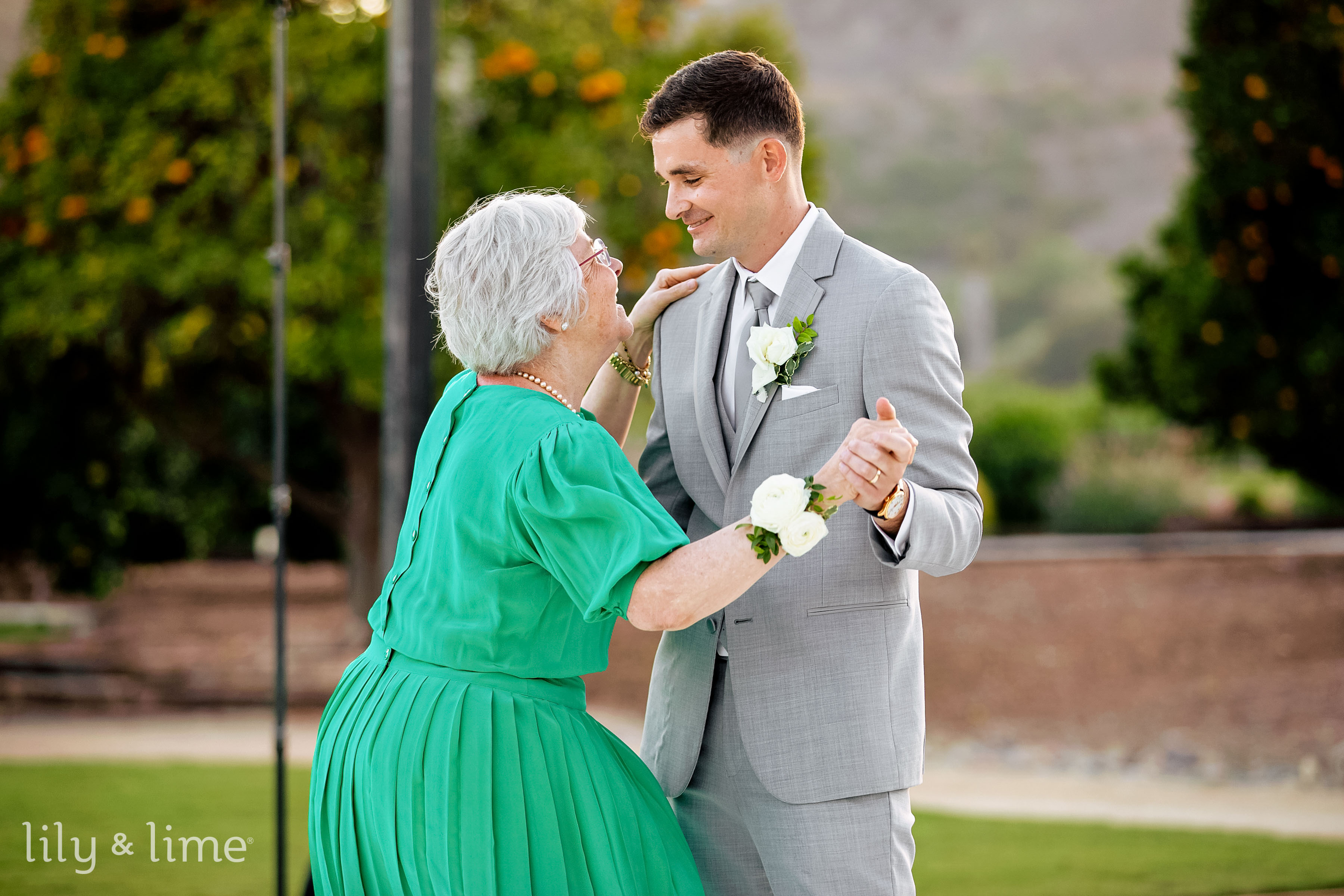 Meanwhile, Garner and his groomsmen prepared in their suite, where camaraderie and humor filled the air. The groomsmen portraits showcased their bond, with candid shots of laughter and shared toasts. Garner looked dashing in his slate gray three-piece suit, paired with a crisp white shirt, brown shoes, a gray silk tie, and a white rose boutonniere.