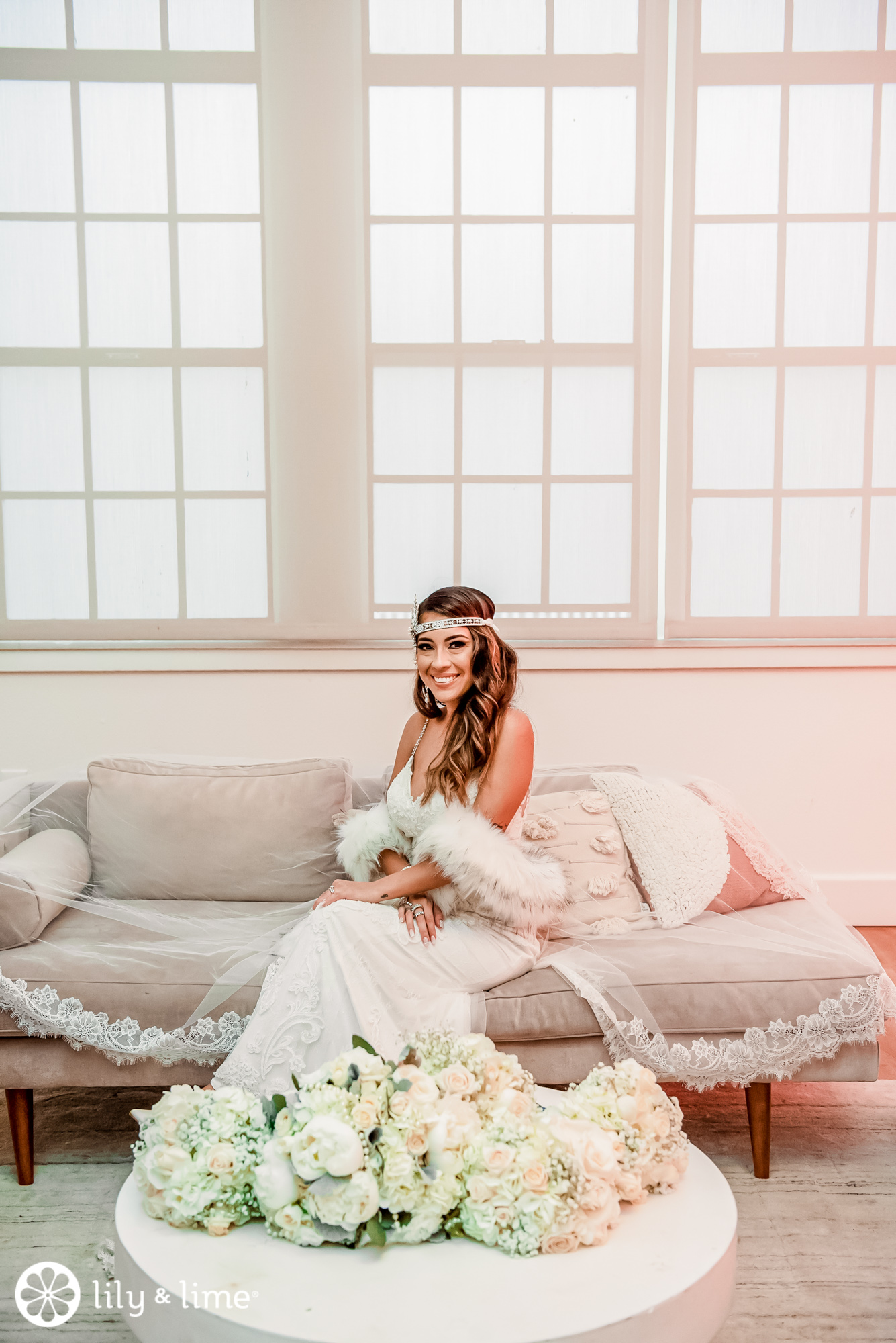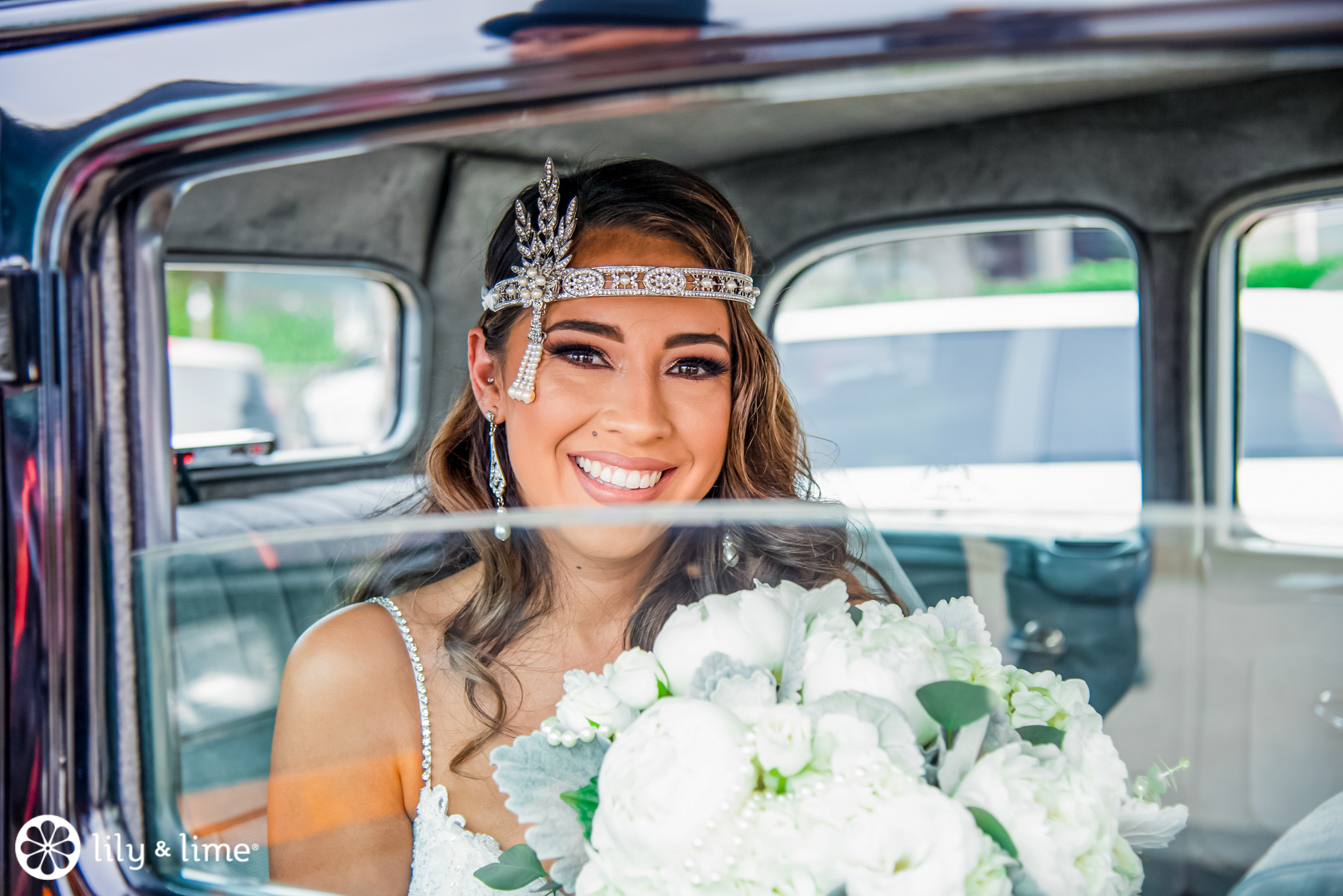 Marci and Gilbert’s wedding had a Gatsby-inspired theme. While Marci’s glittering retro headband totally stole the show, the location of the wedding added to the bliss! The Wedding Bowl is known to be an ideal place to host a budget-friendly wedding with plenty of DIY possibilities.