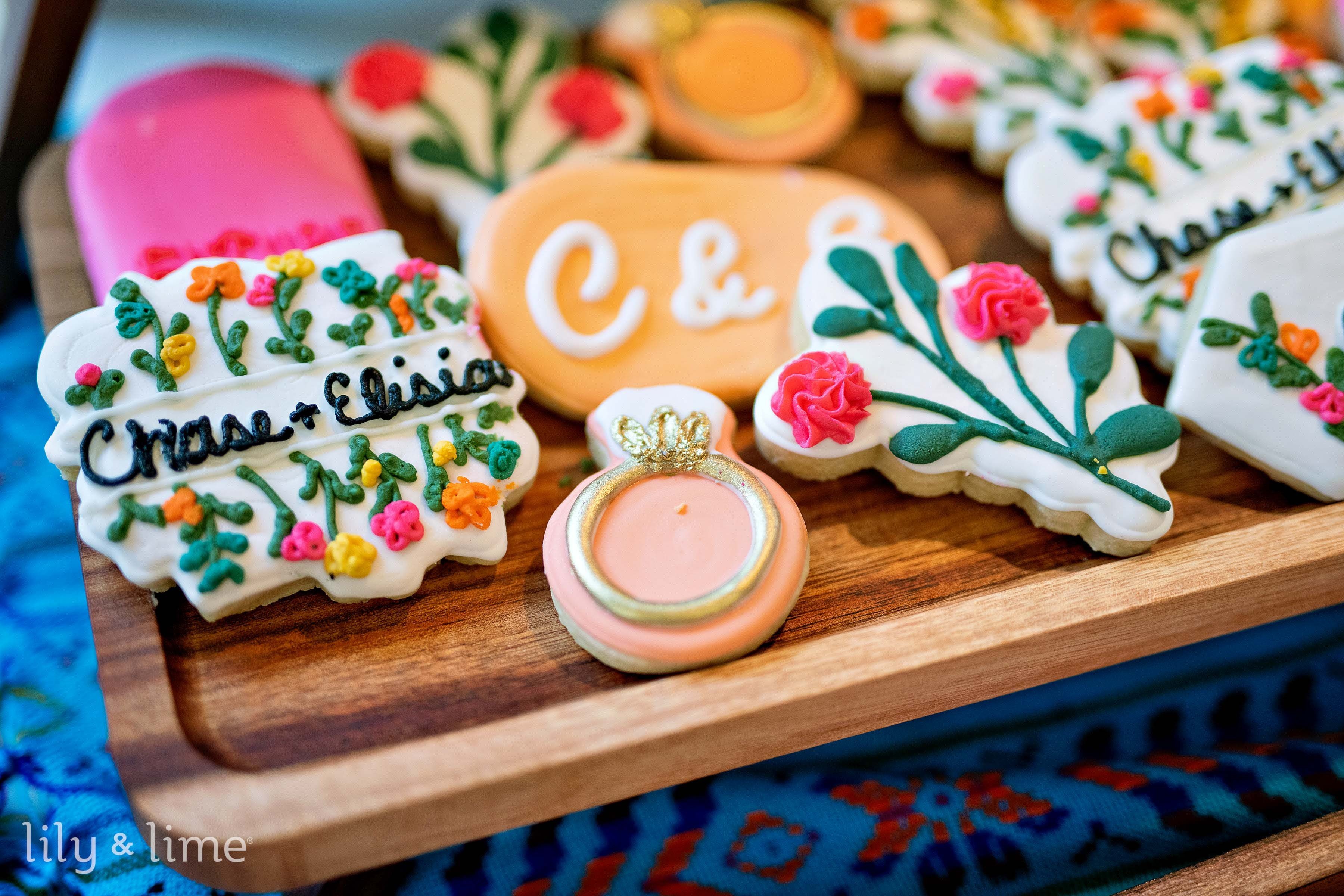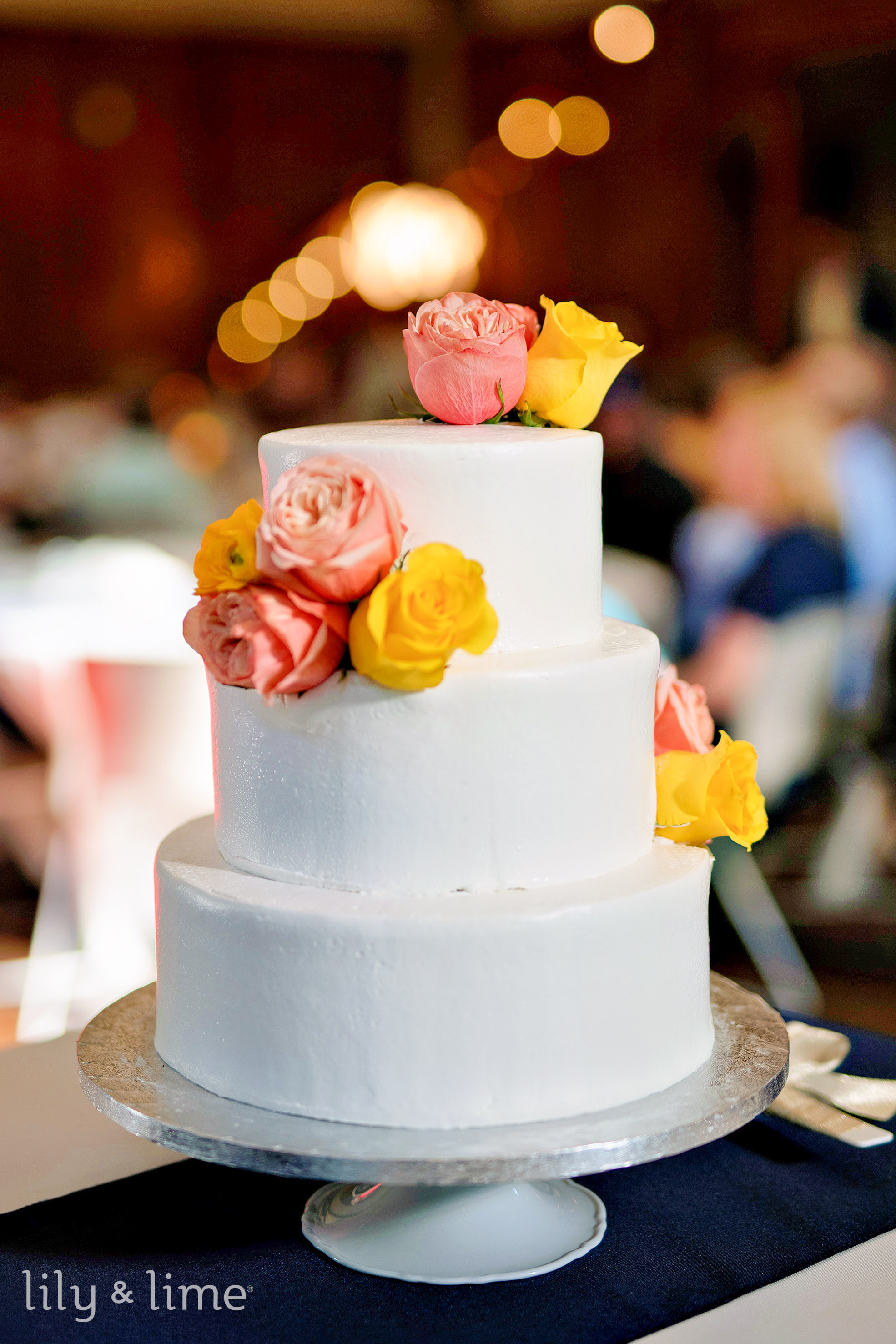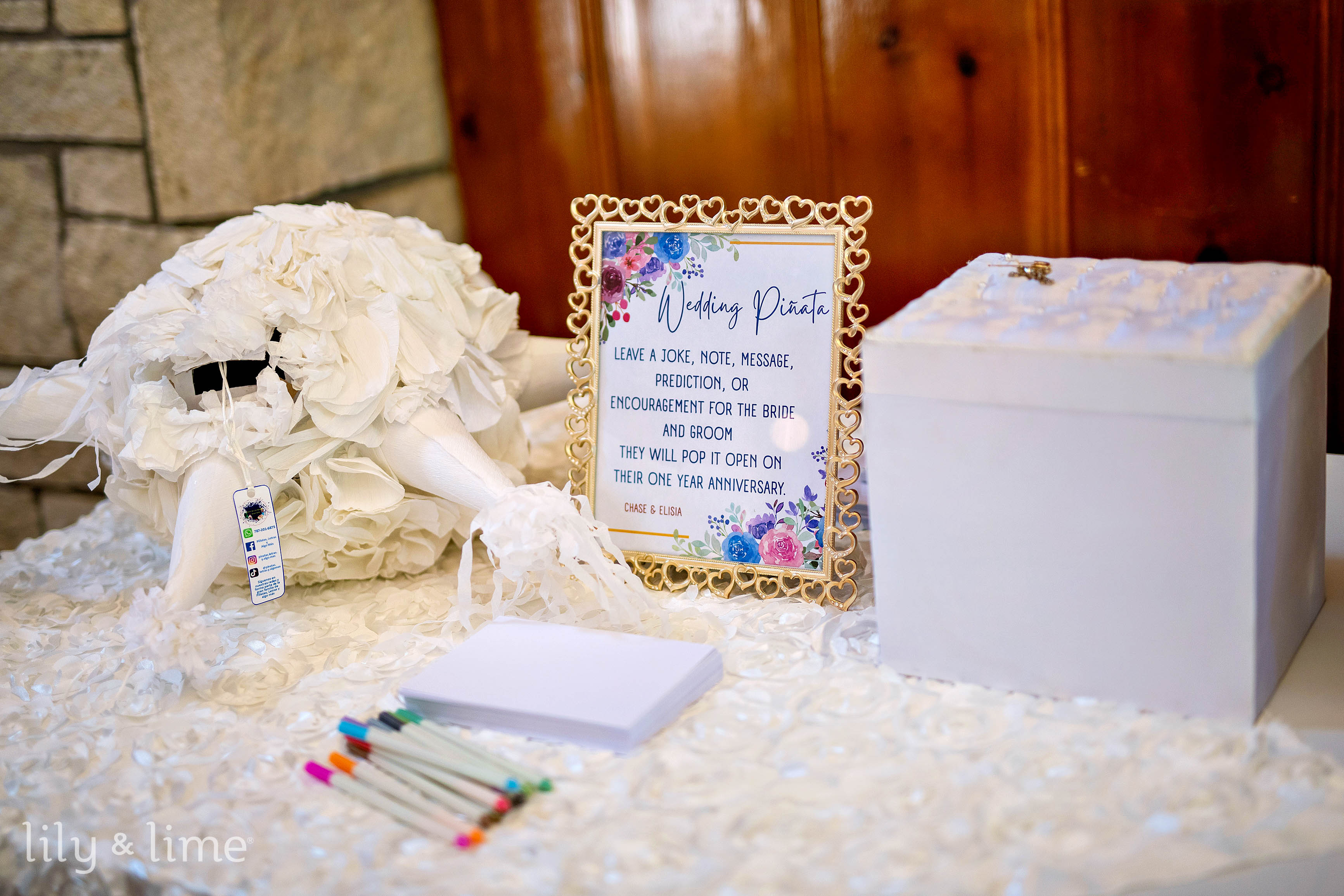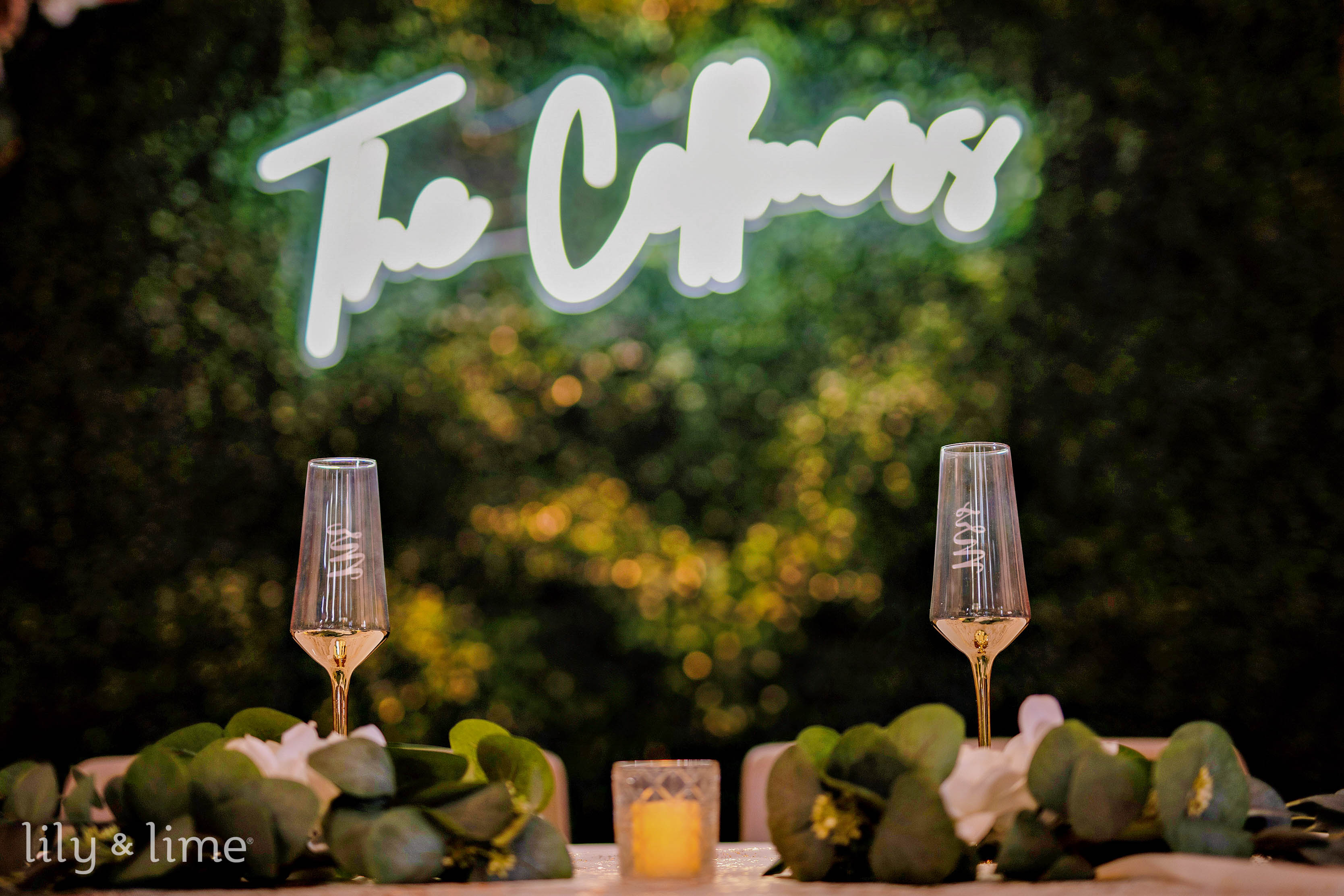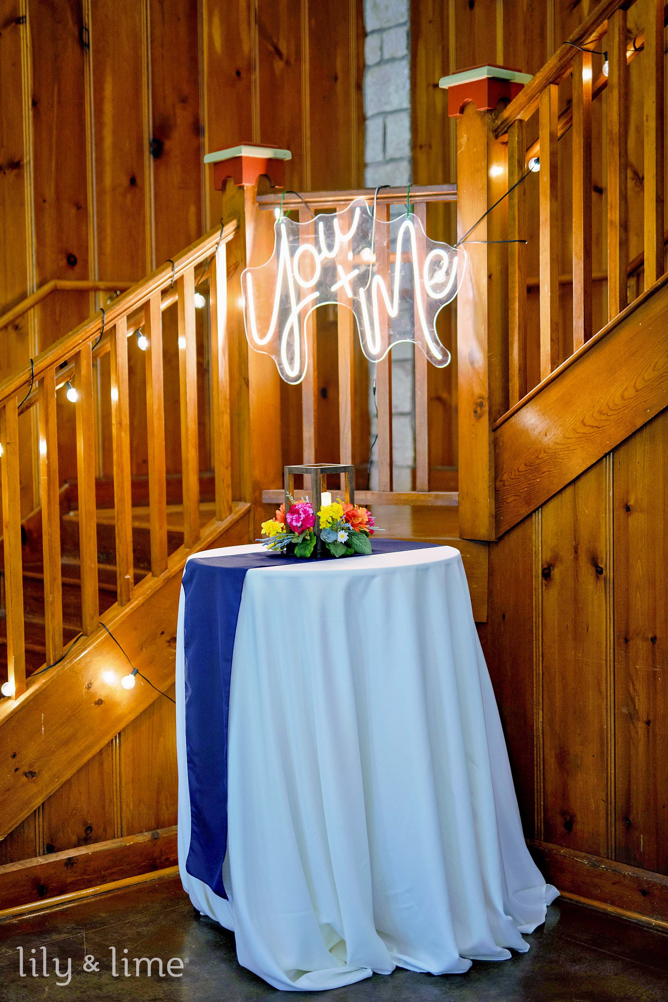 The reception at the Lodge at Ironwoods was a perfect blend of rustic charm and modern elegance. A greenery wall with a neon sign, antique mirror signs, and a memorial table added personal touches to the decor. The wedding bar and minimal floral centerpieces, paired with warm lighting, created an inviting atmosphere. The all-white wedding cake, adorned with colorful summer roses, was a centerpiece of the dessert table, which also featured pastel-colored desserts that delighted guests.