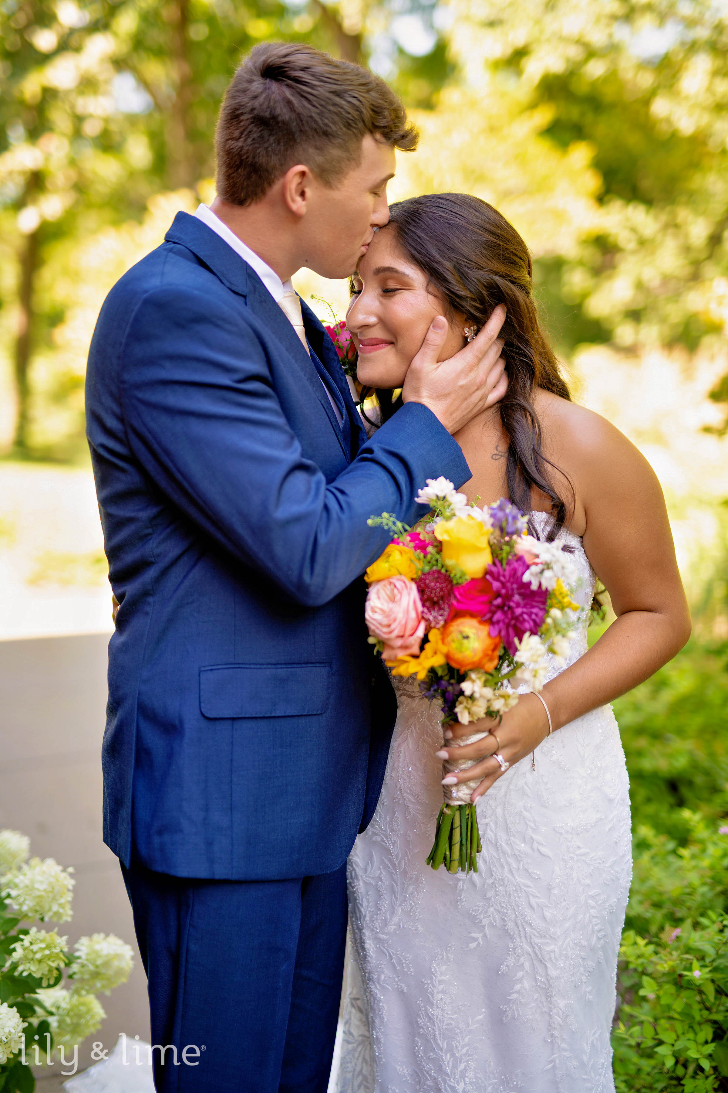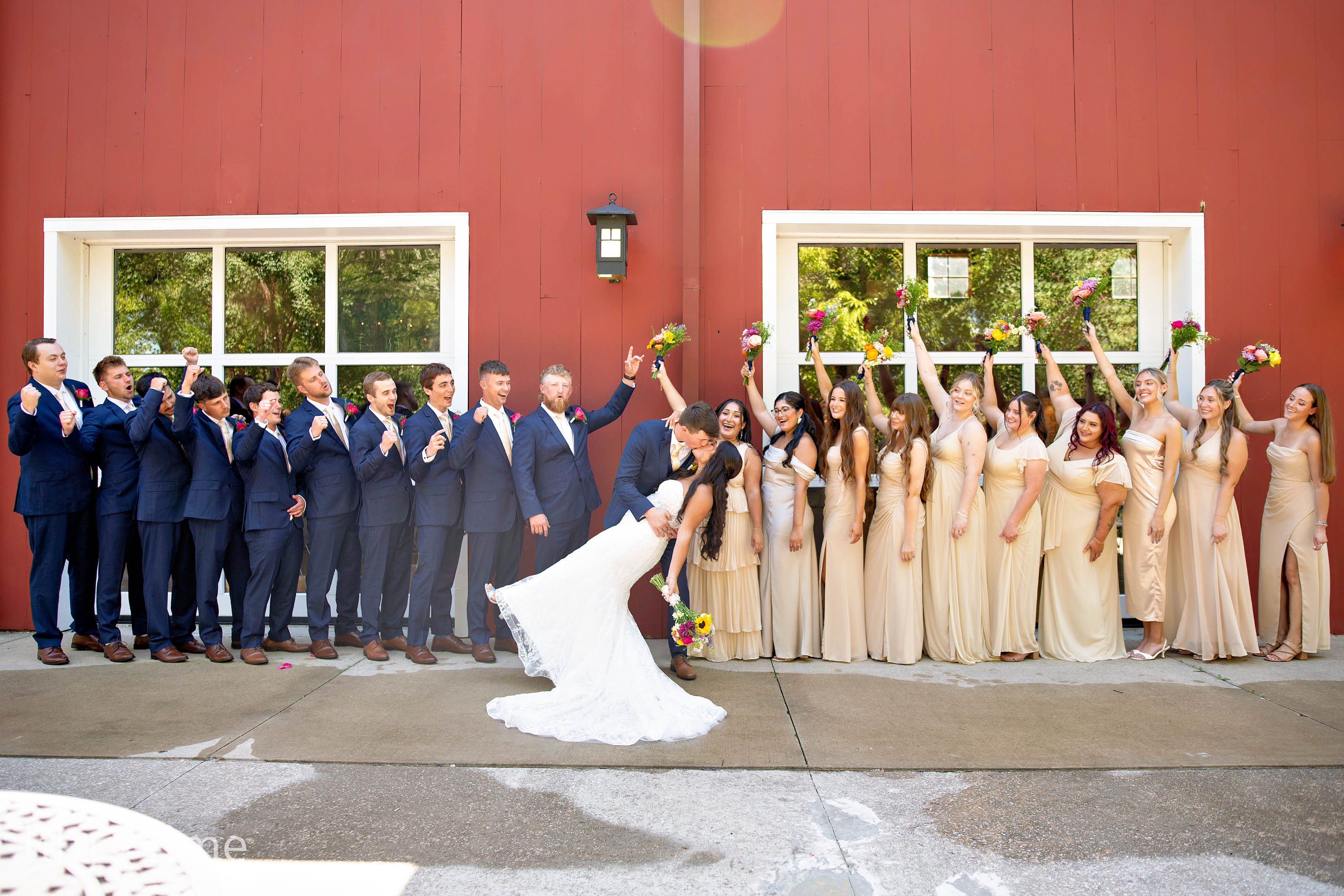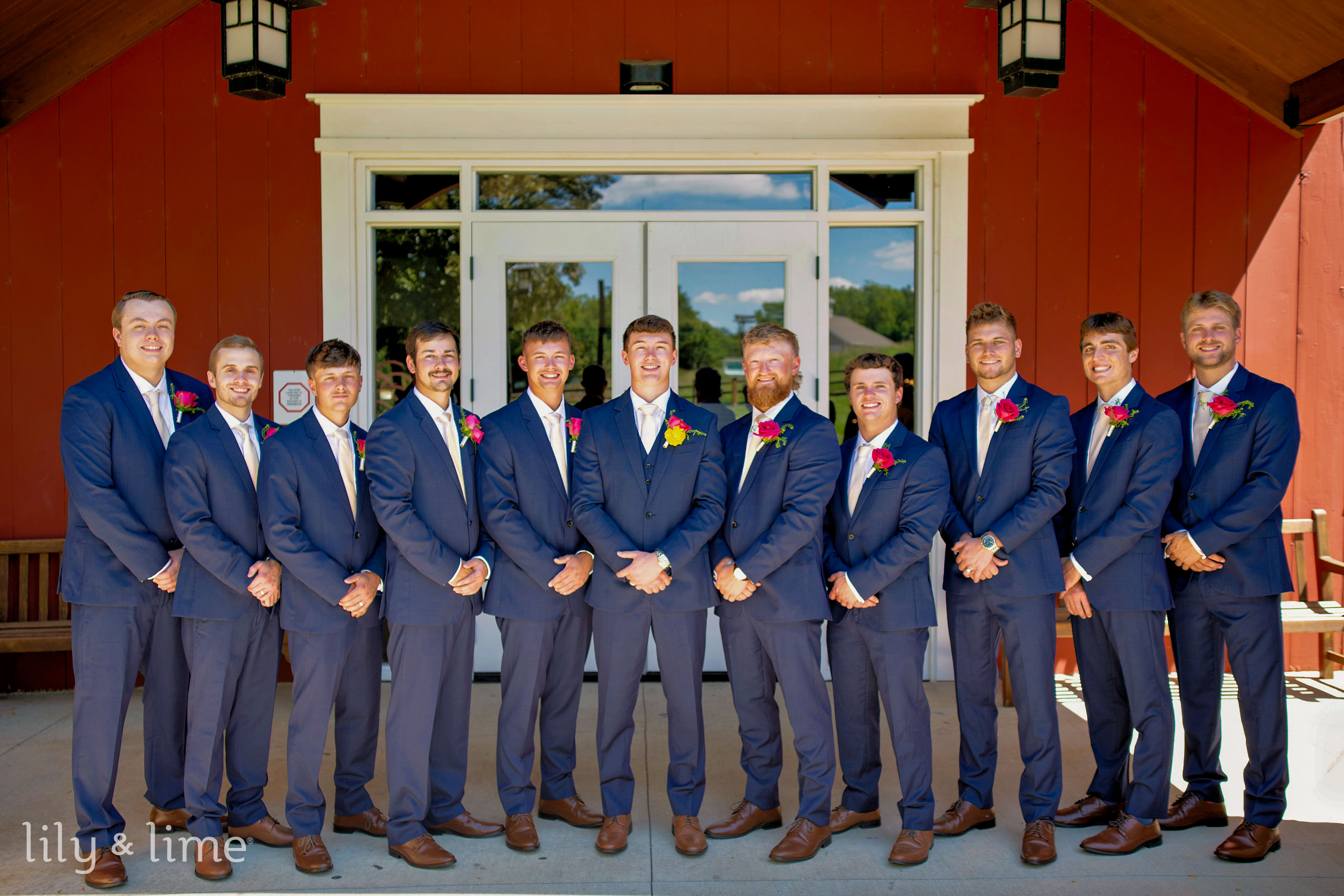 Meanwhile, Chase prepared for his big day in a royal blue three-piece suit that exuded sophistication. Paired with a crisp white shirt, shiny brown shoes, a white silk tie, and a bright summer boutonniere, he looked every bit the dashing groom. The wedding party complemented the couple beautifully, with bridesmaids in champagne dresses carrying colorful wedding bouquets and groomsmen in matching royal blue suits.