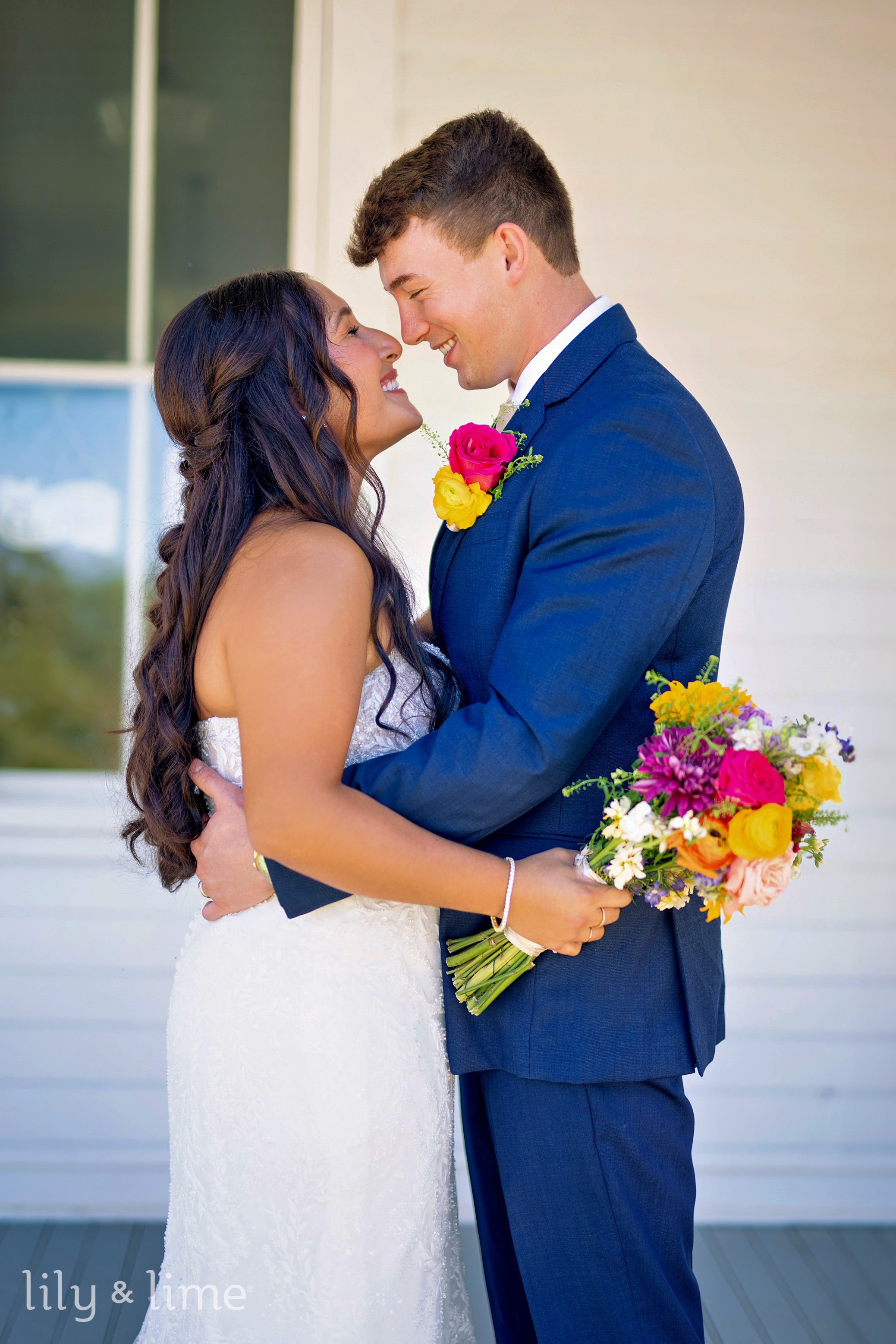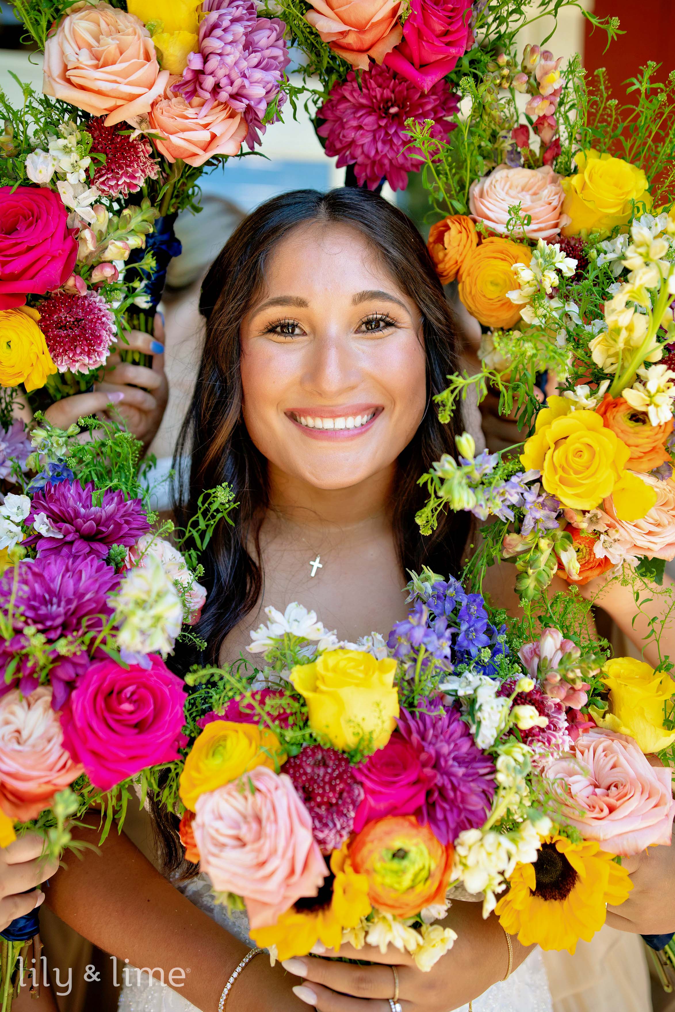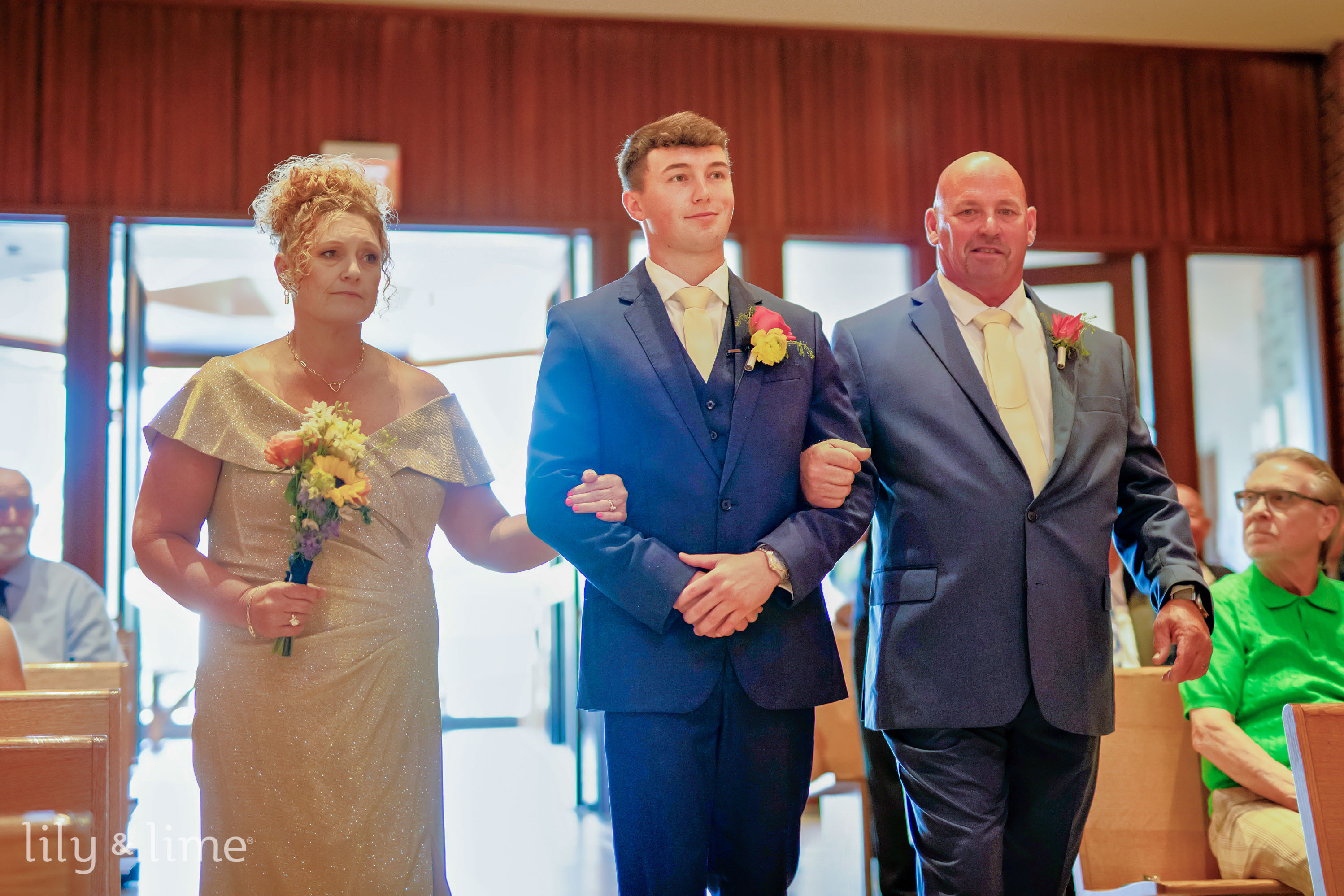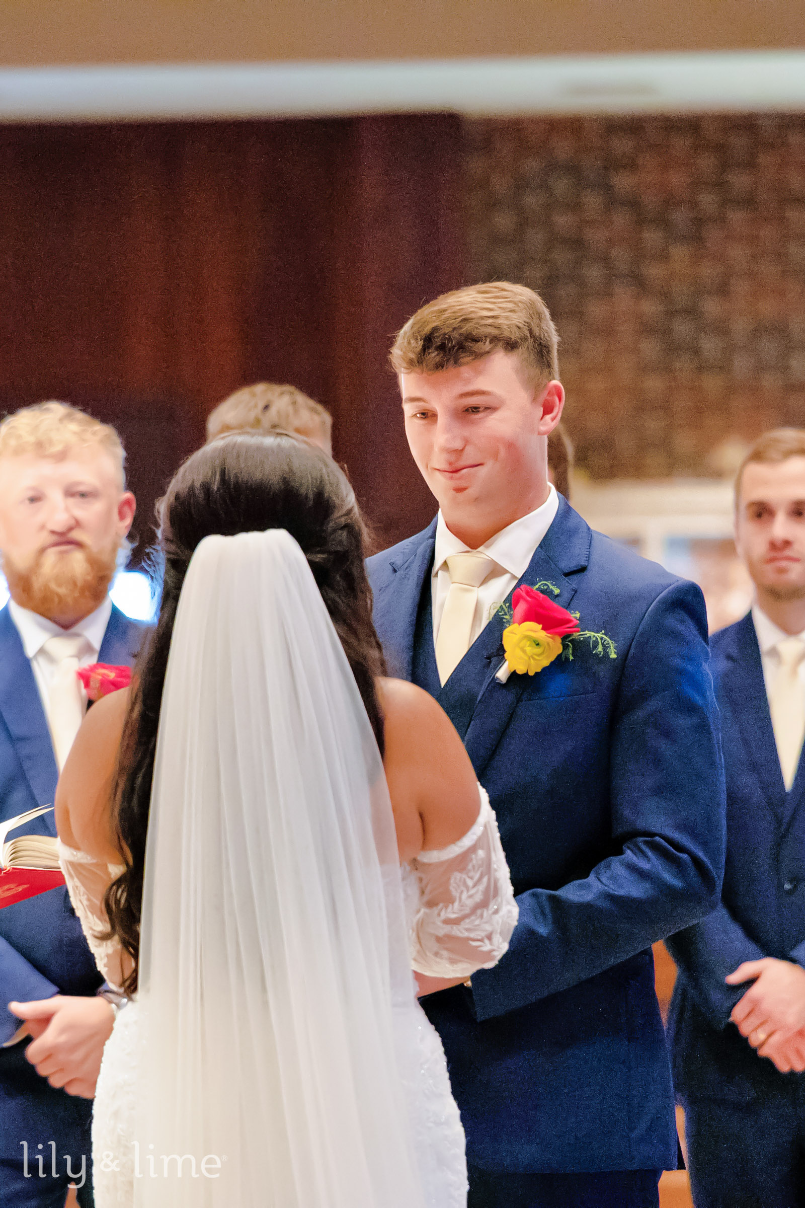 Meanwhile, Chase prepared for his big day in a royal blue three-piece suit that exuded sophistication. Paired with a crisp white shirt, shiny brown shoes, a white silk tie, and a bright summer boutonniere, he looked every bit the dashing groom. The wedding party complemented the couple beautifully, with bridesmaids in champagne dresses carrying colorful wedding bouquets and groomsmen in matching royal blue suits.