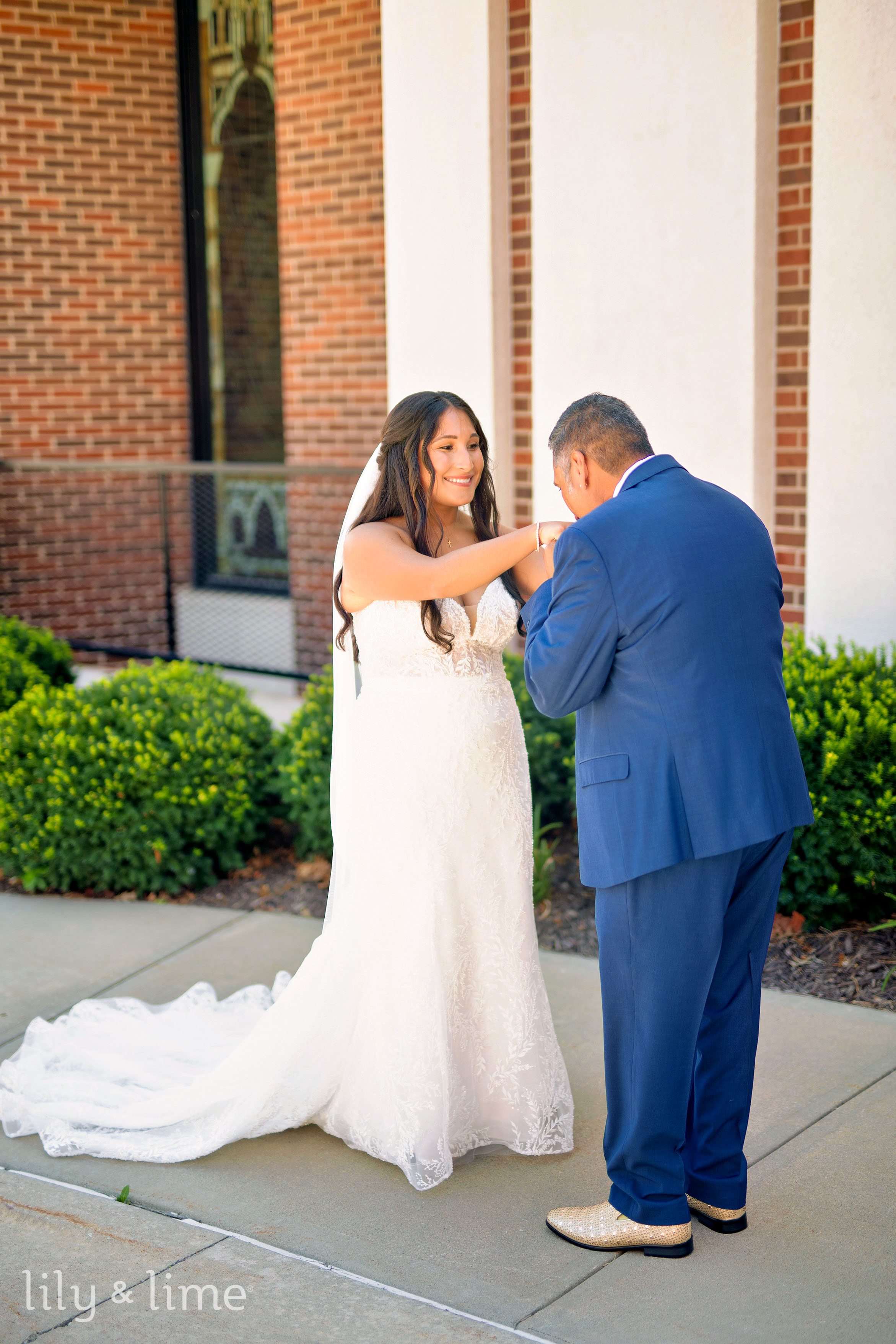 Elisia and Chase’s wedding day began with a ceremony at the stunning St. Joseph Catholic Church in Kansas City. The venue’s timeless architecture and intricate design details created an atmosphere of elegance and grandeur. The soft, natural light streaming through the large windows illuminated the space beautifully, adding a warm glow to the couple’s vows. The church’s serene ambiance and classic charm provided a perfect setting for their heartfelt ceremony, making it a truly memorable start to their special day.