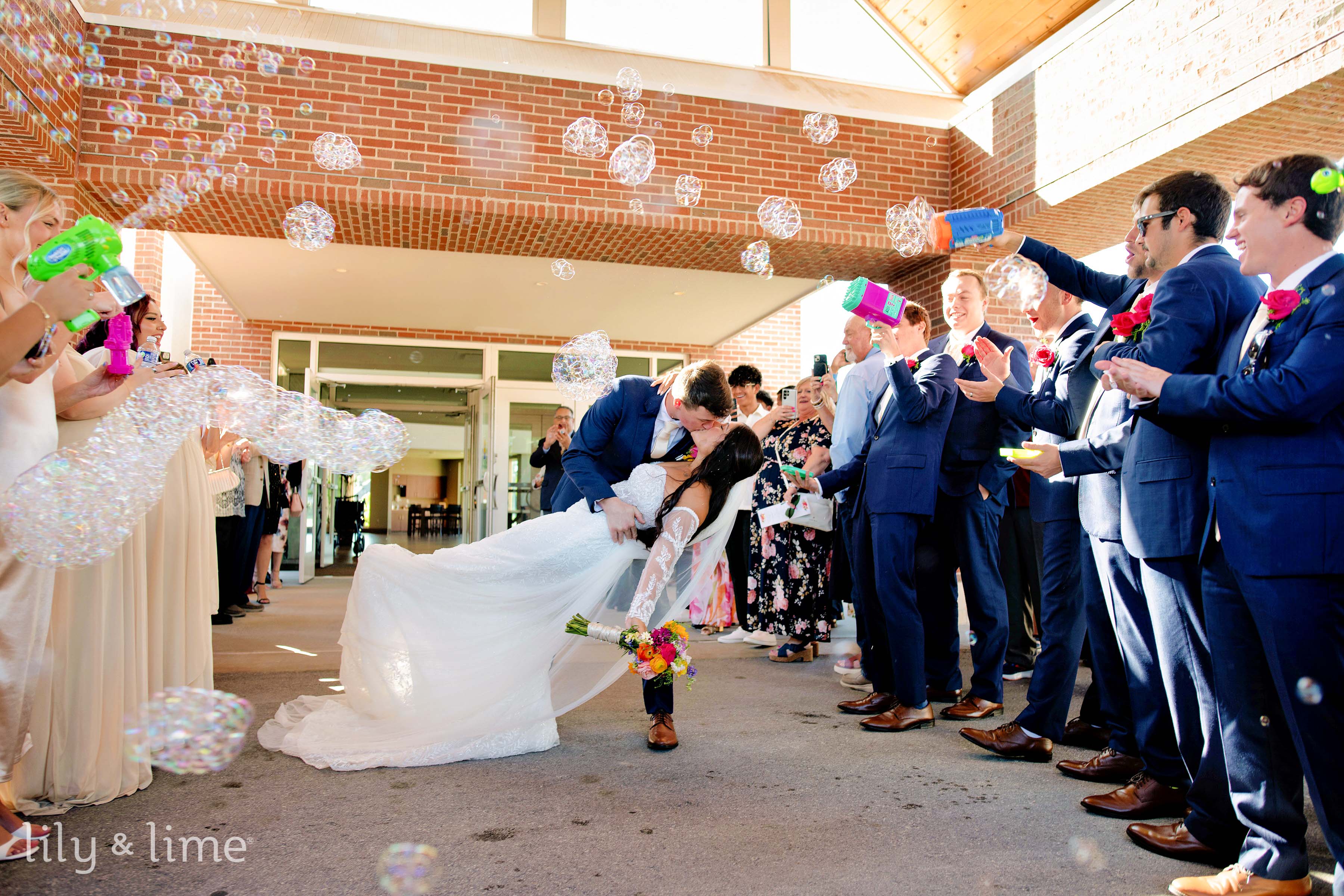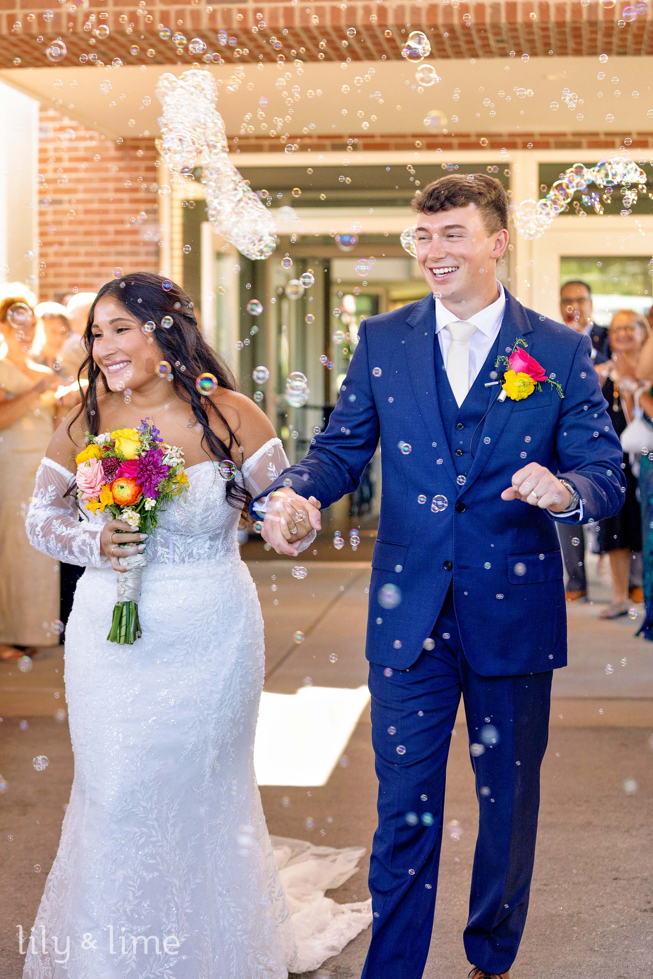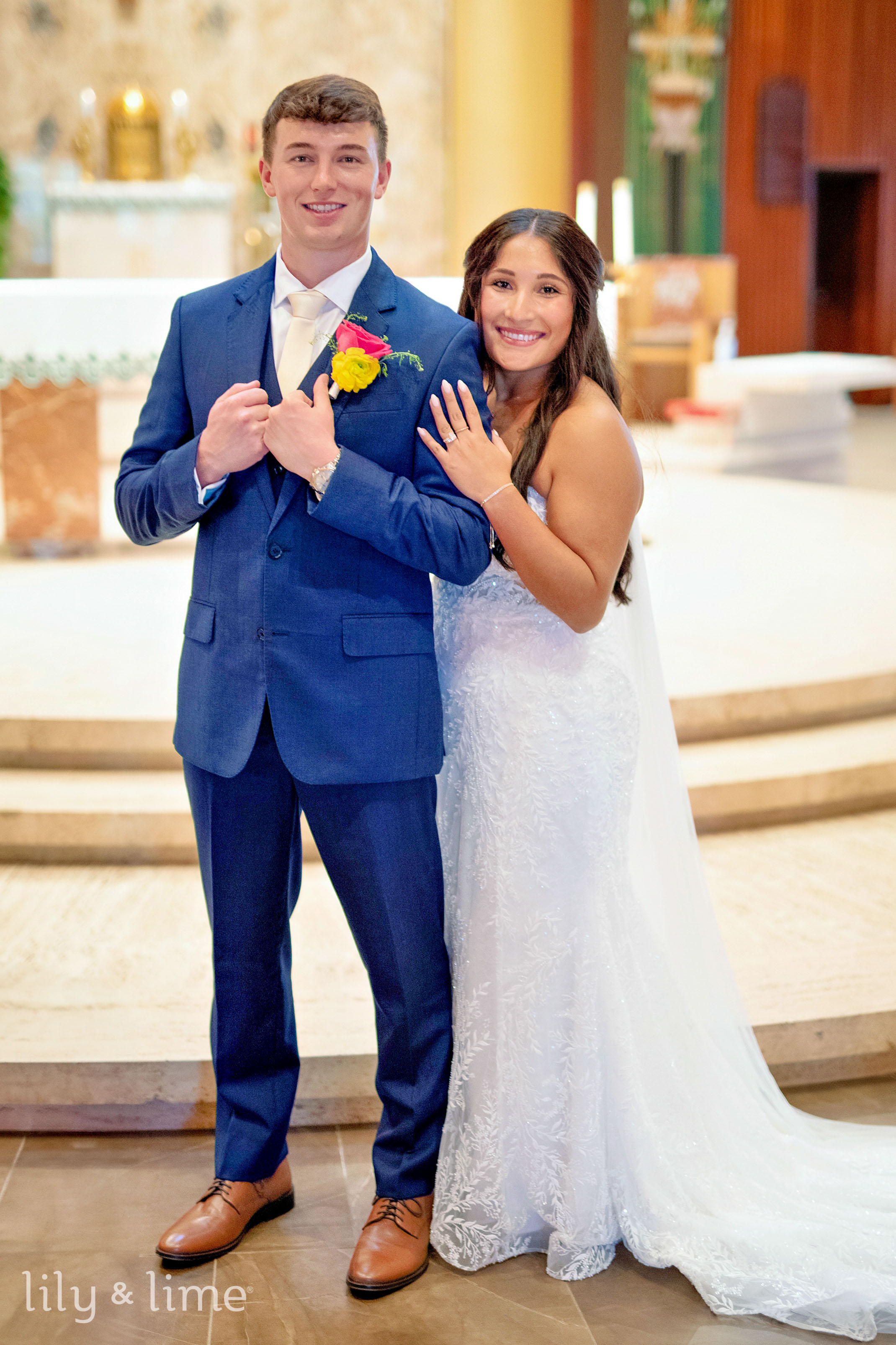 The ceremony took place in the stunning St. Joseph Catholic Church, where the decor was nothing short of breathtaking. The aisle was adorned with white flower installations and candlelit accents, creating a romantic and serene ambiance. The soft lighting added a warm glow, enhancing the beauty of the space. As Elisia and Chase exchanged vows, the emotional moments were captured in timeless photographs. The ceremony concluded with a joyful bubble send-off, as guests cheered the newlyweds into their next chapter.