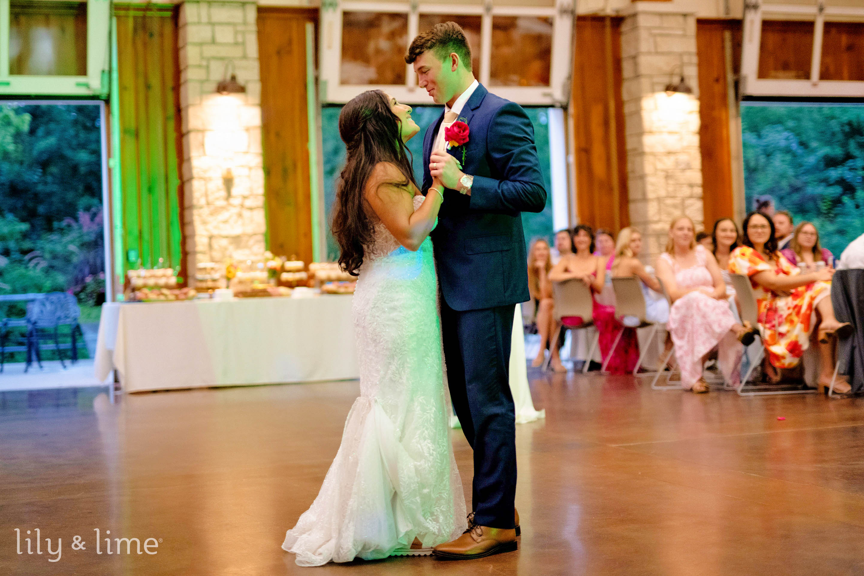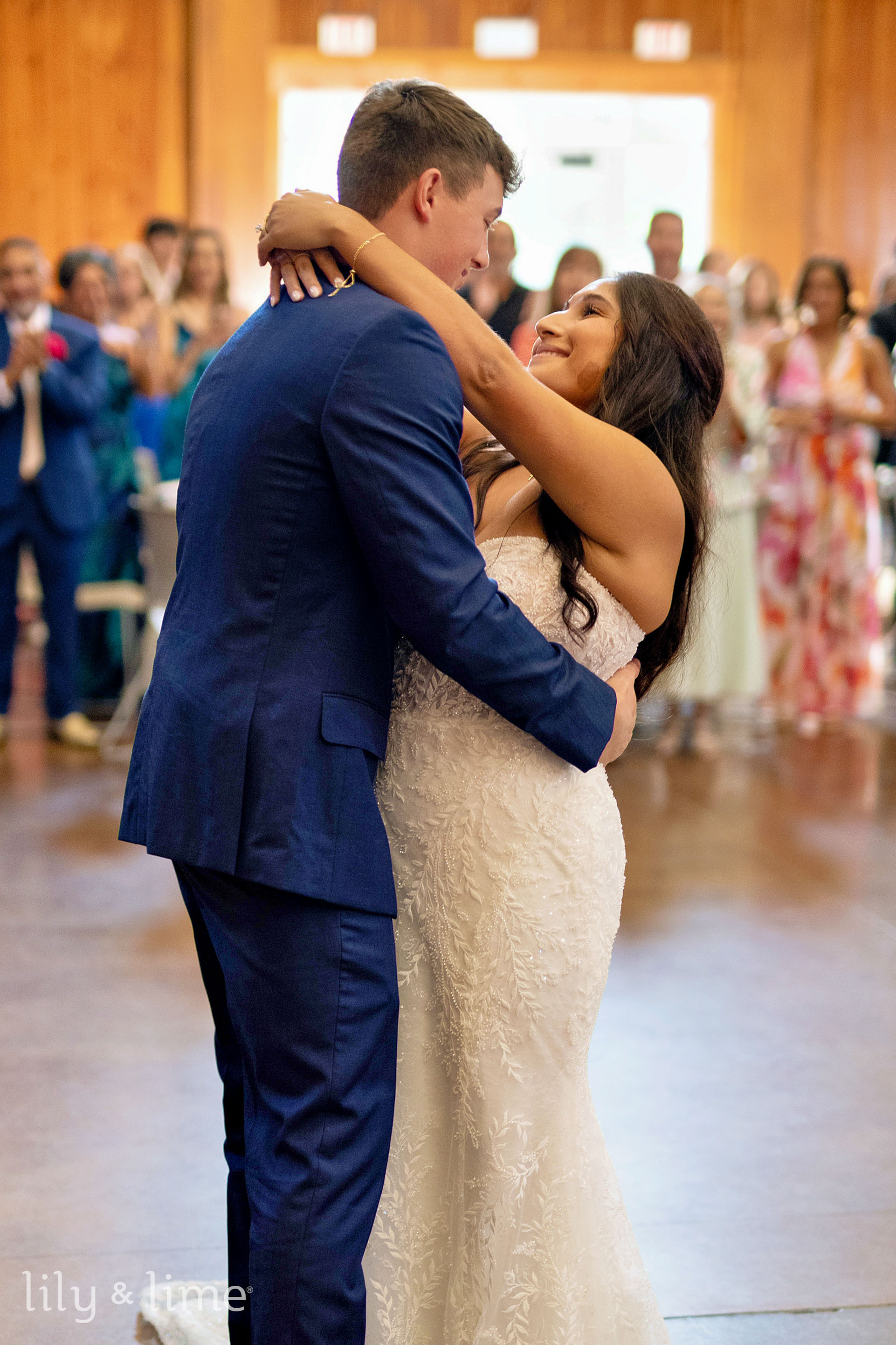 For the reception, the couple chose the Lodge at Ironwoods, a venue that perfectly blended rustic charm with modern sophistication. Surrounded by lush greenery and nestled in a tranquil setting, the Lodge offered a picturesque backdrop for their celebration. The spacious interior, with its vaulted wooden ceilings and stone accents, exuded warmth and character, while the expansive outdoor patio allowed guests to enjoy the natural beauty of the surroundings. The venue’s versatility made it ideal for their elegant decor, which featured chic candlelit centerpieces and personalized touches that reflected their love story. As the evening unfolded, the Lodge transformed into a magical space, with twinkling lights and a lively dance floor bringing the celebration to life.