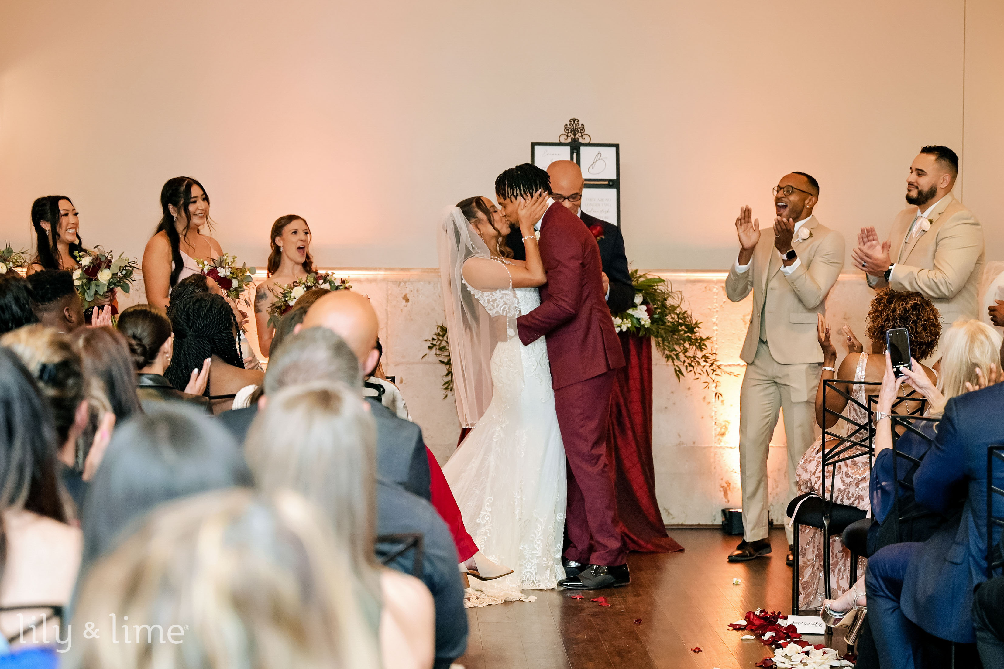 Before the ceremony, Eriann and Anders shared a private "no-look" first look. This tender moment allowed them to connect without breaking tradition and was shared with their closest friends. The ceremony itself was held in a beautiful indoor venue transformed into an intimate and romantic sanctuary. Cozy lighting illuminated the space, while floral petals lined the aisle leading to the altar. There, Eriann and Anders exchanged heartfelt vows. Their Phoenix wedding photographer captured the raw emotion of these moments, telling the story of their commitment through stunning images.