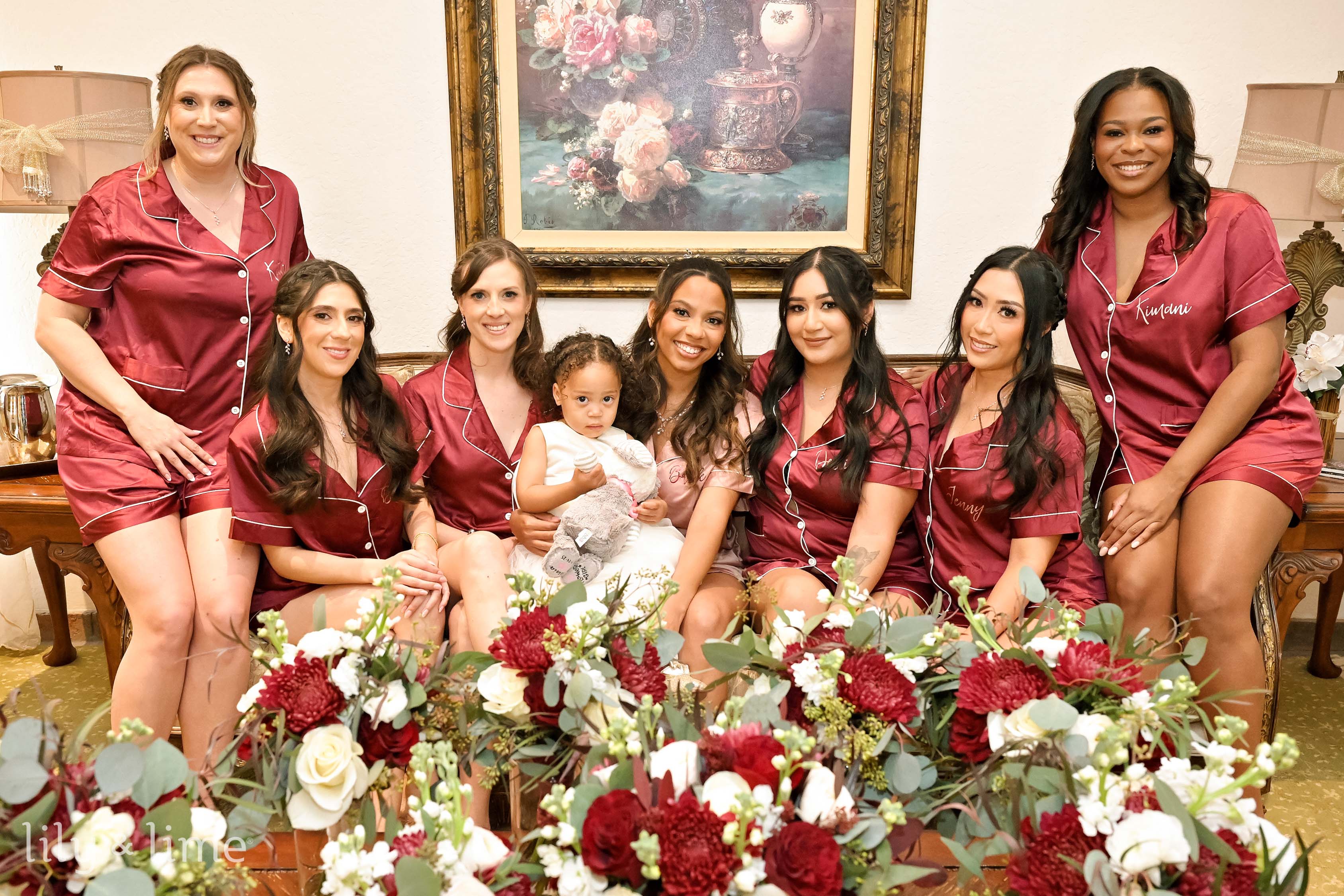 The day began with the careful capture of special details that set the romantic tone. The deep maroon bridal flowers, gleaming wedding rings, and the couple’s personal vow books stood out as meaningful elements. In her suite, Eriann and her bridesmaids shared drinks and laughter, making memories in their matching pajamas—rose pink for the bride and maroon for her party. Meanwhile, Anders and his groomsmen prepared for the day ahead, their camaraderie and fun-loving energy evident as they enjoyed the morning and posed for portraits.